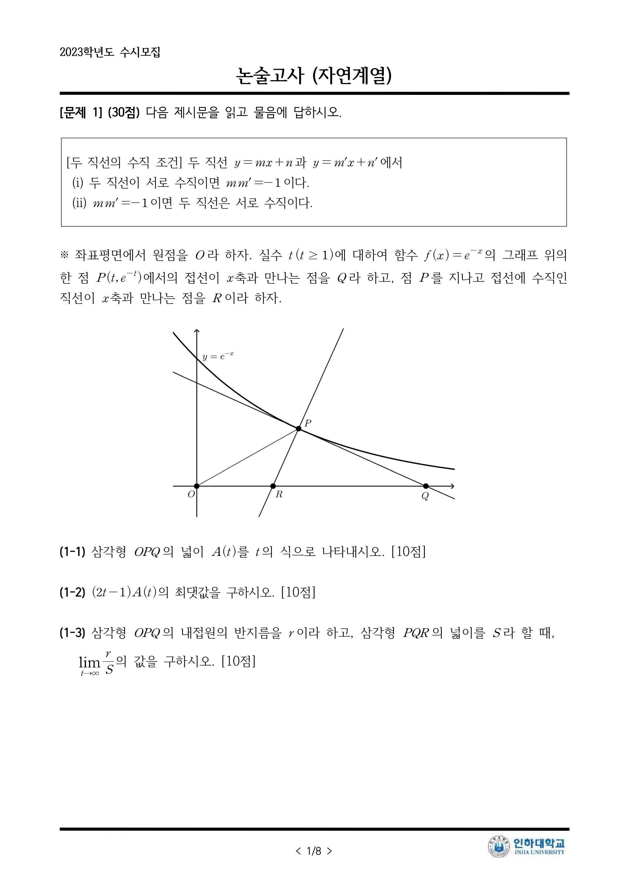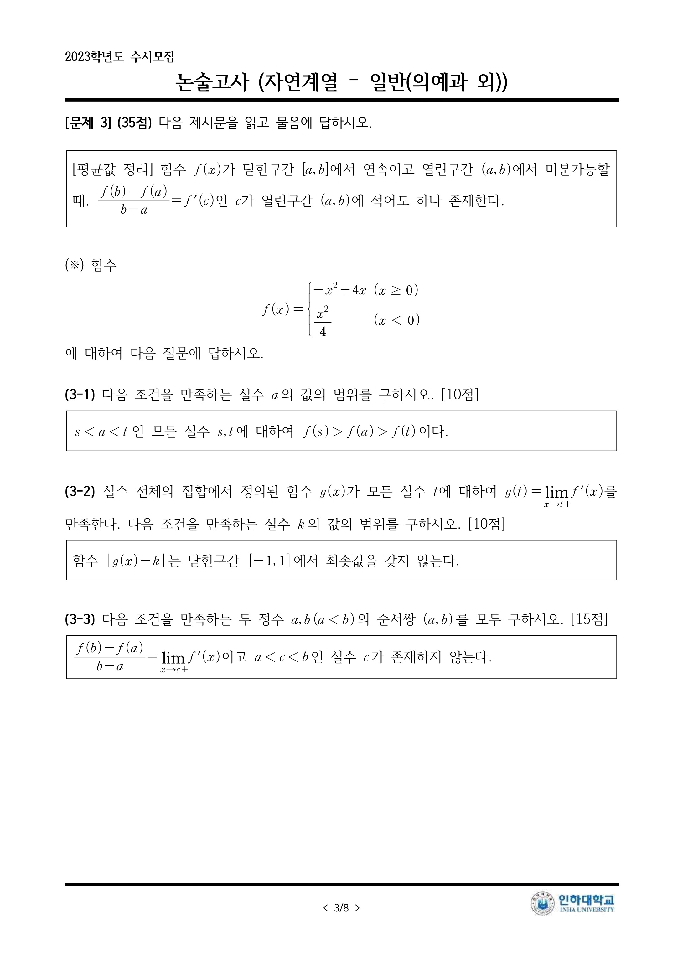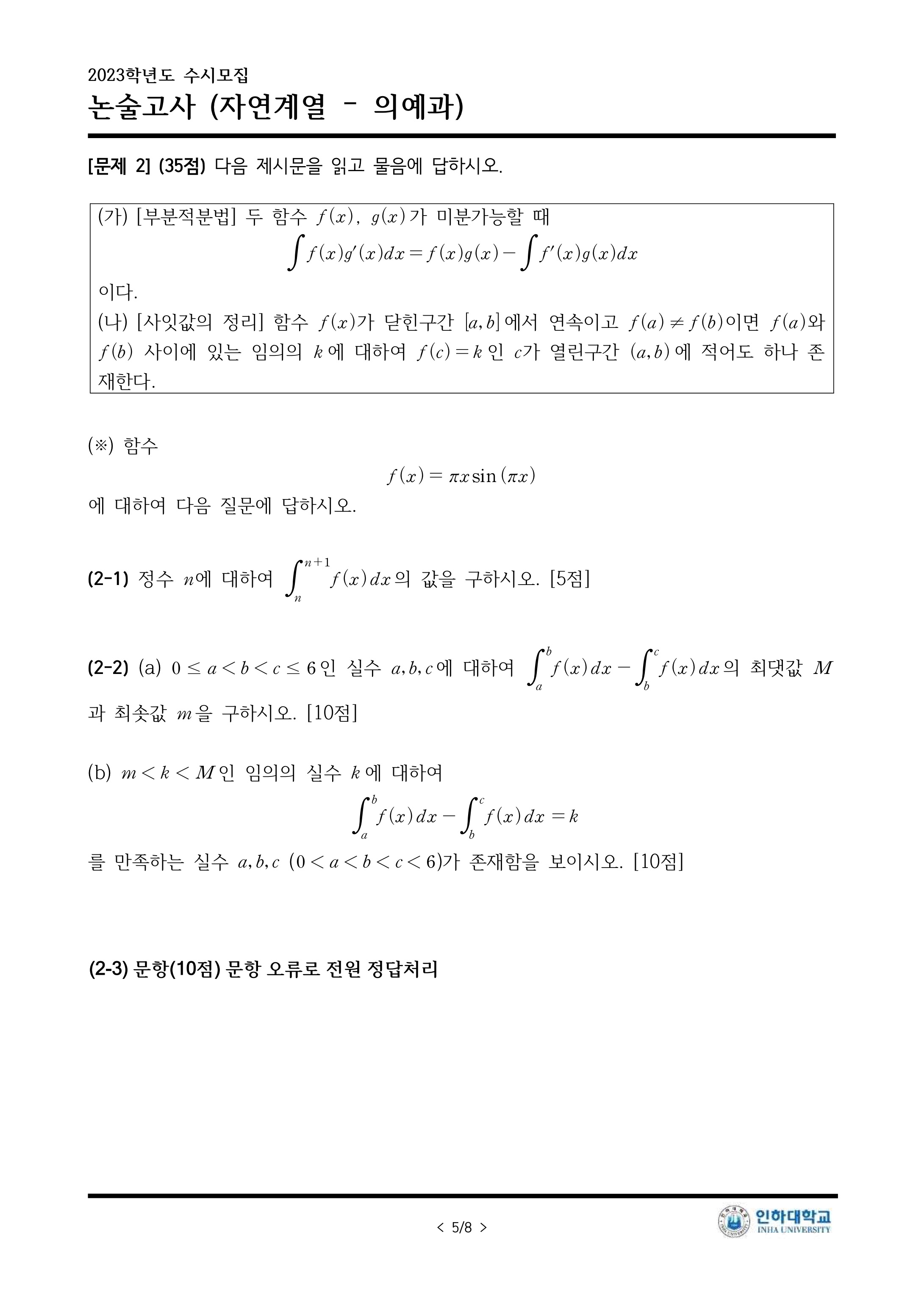 2023학년도 인하대학교 논술고사 문제지 (자연계열 - 오후) (자연-오후) 2023학년도 인하대학교 논술고사 문제지.pdf0.16MB2023학년도 인하대학교 논술우수자전형 의예과 문항 2-3 오류 안내문