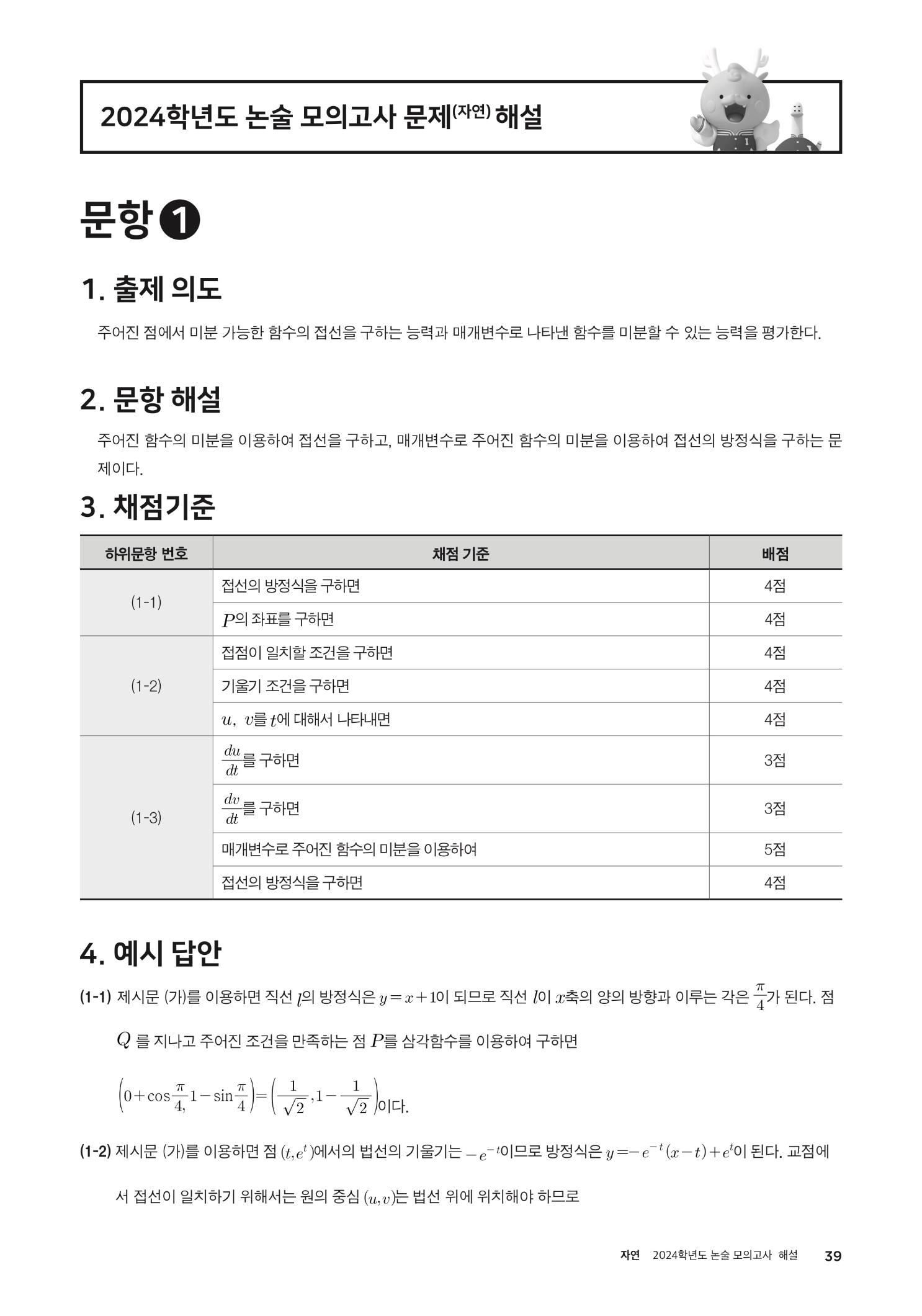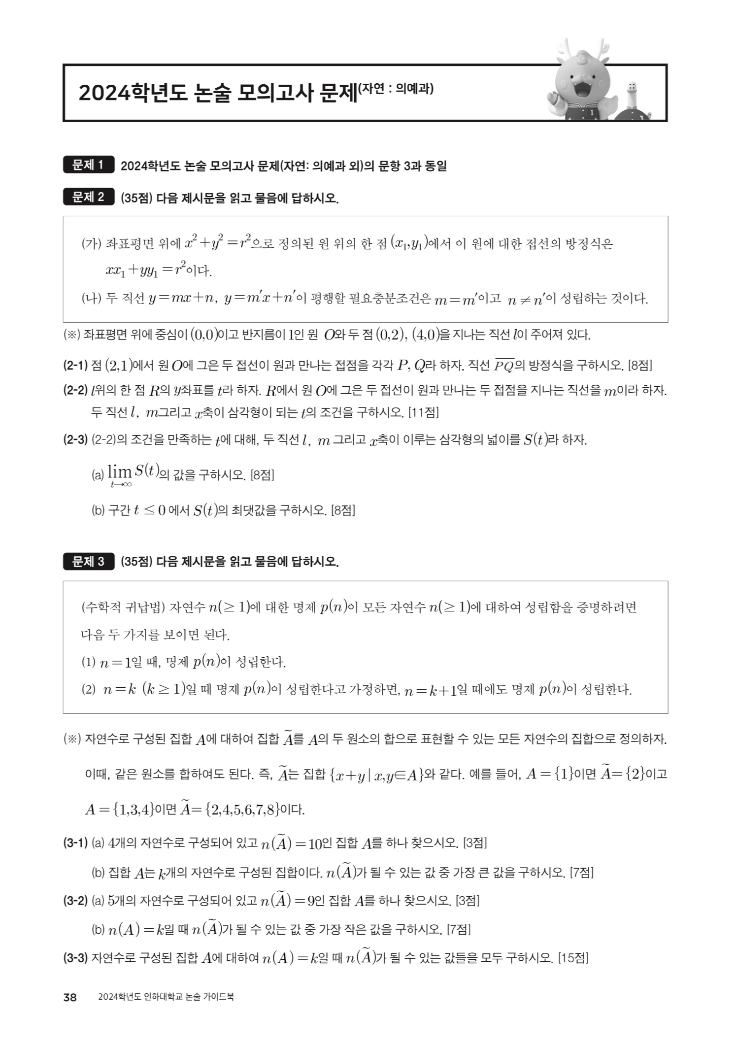 2024학년도 인하대학교 논술 모의고사 해설 (자연계열) 2024학년도 인하대학교 논술 가이드북