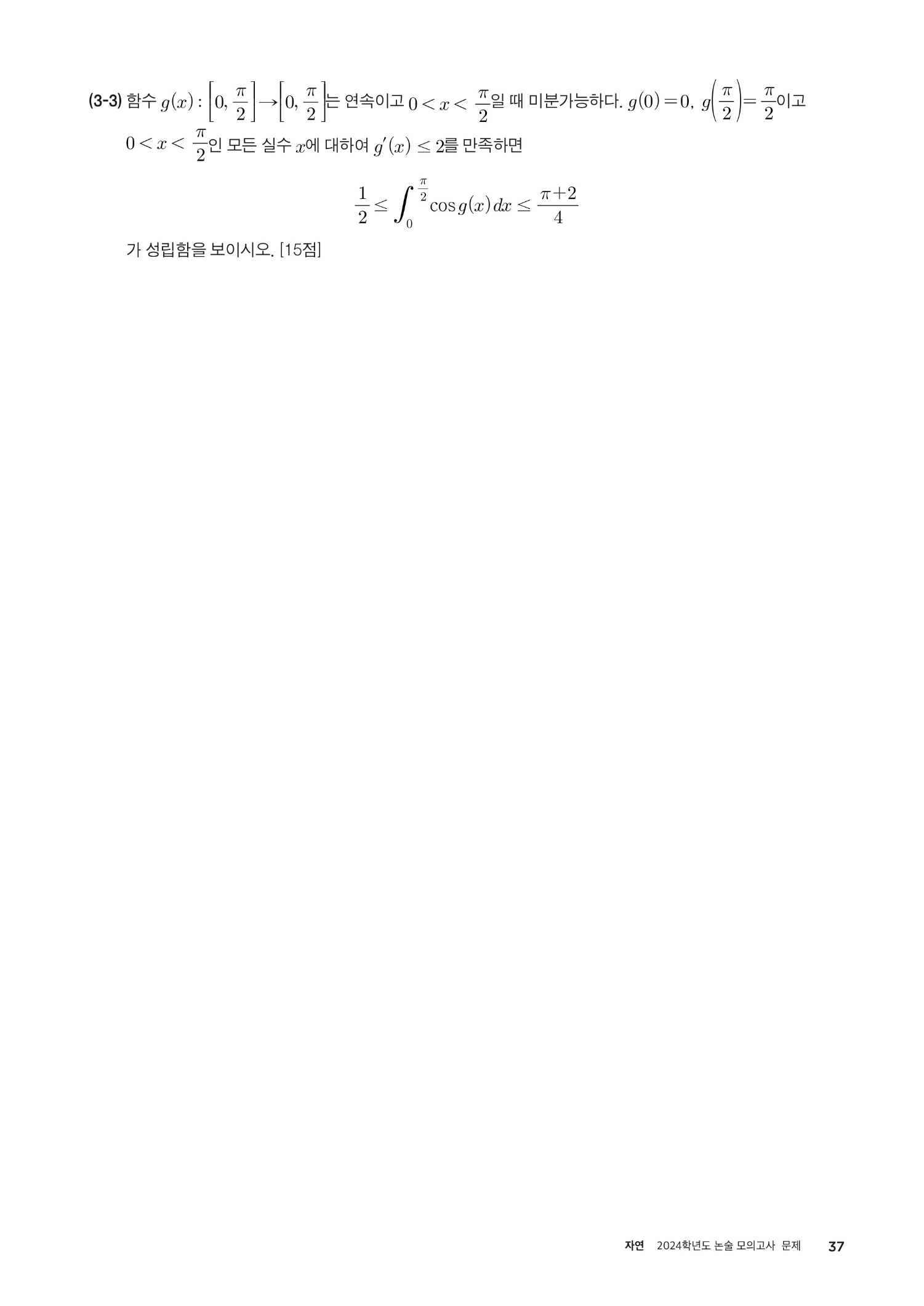 2024학년도 인하대학교 논술 모의고사 문제 (자연계열)