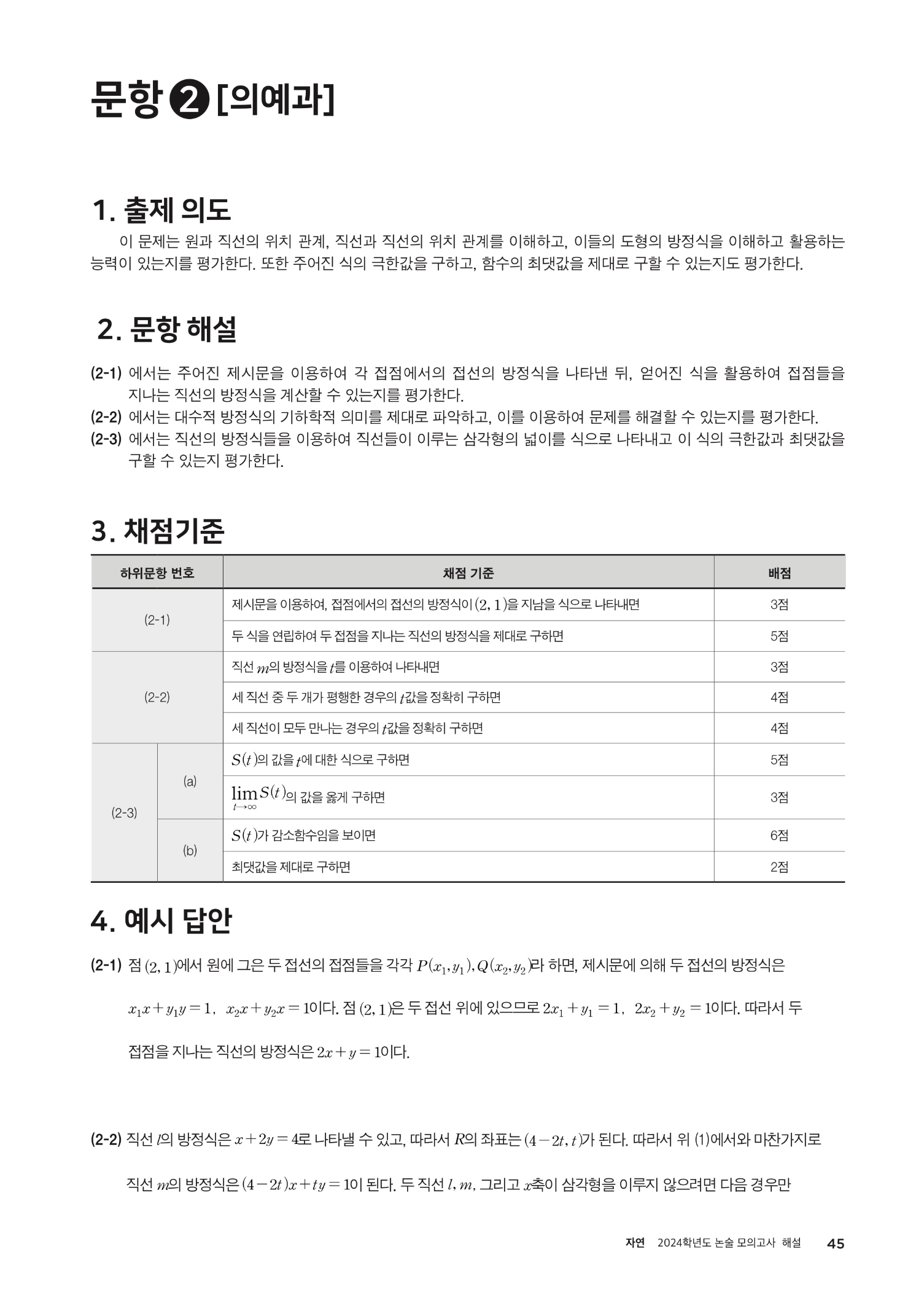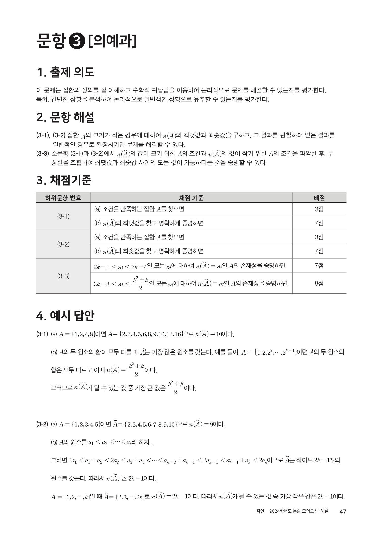 2024학년도 인하대학교 논술 모의고사 문제 (의예과) 2024학년도 인하대학교 논술 모의고사 해설 (자연계열)
