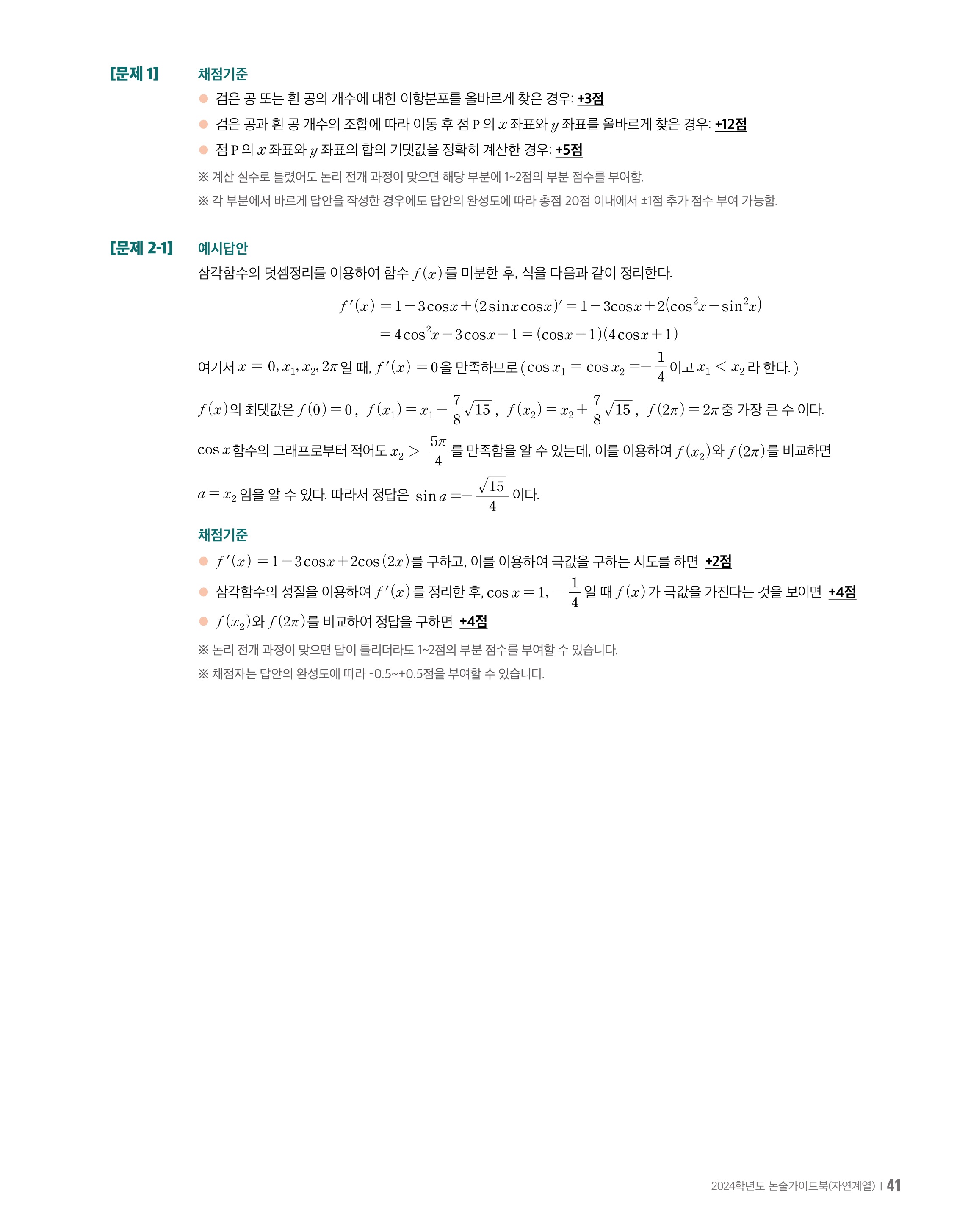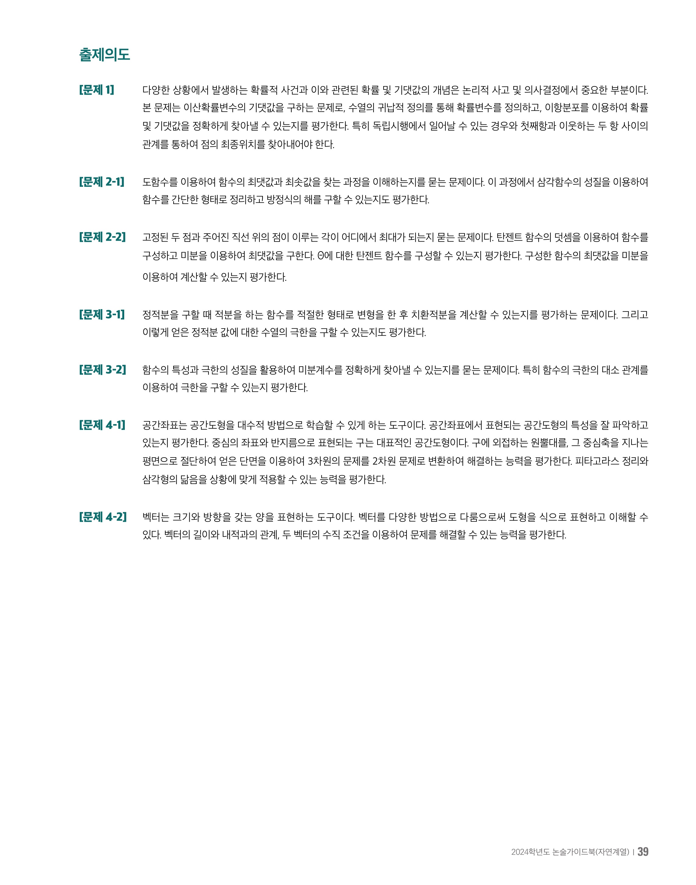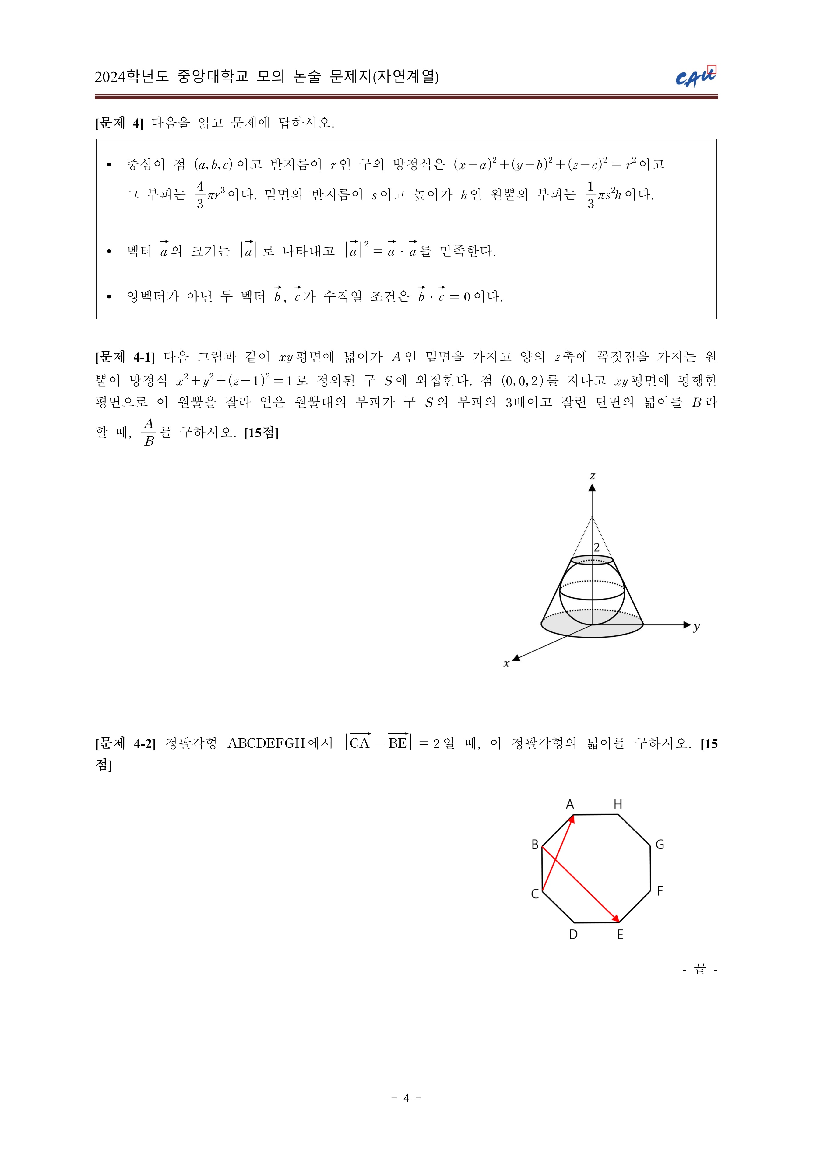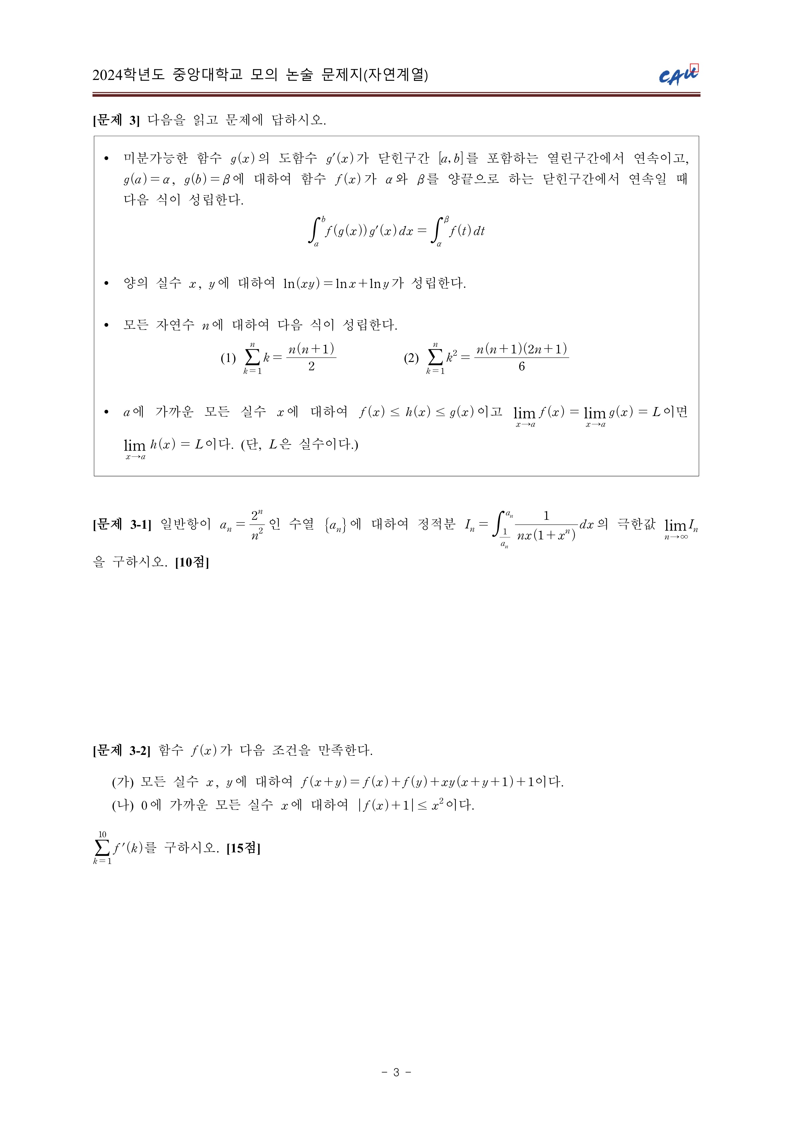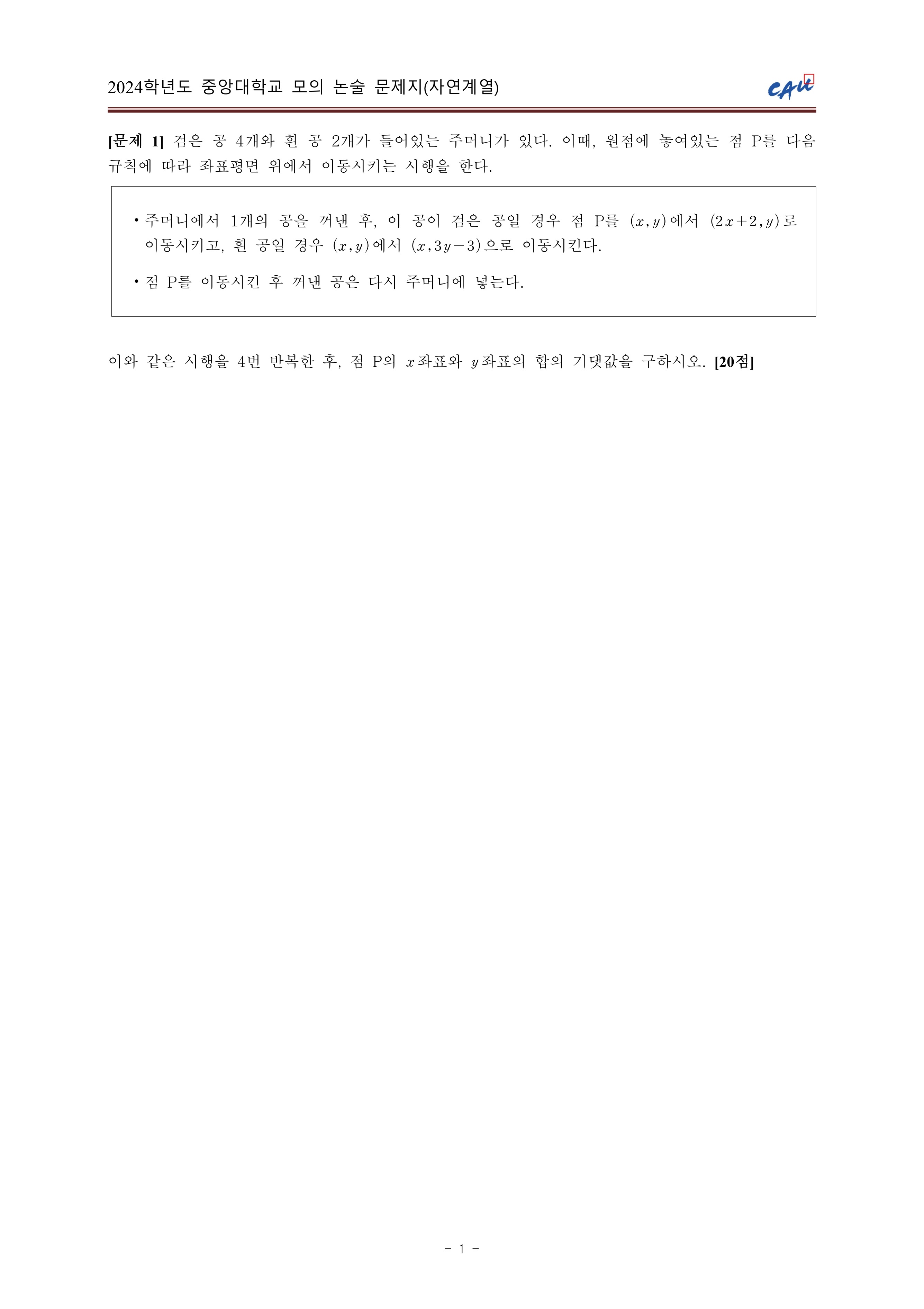 2024학년도 중앙대학교 모의논술 자연계열 문제지 2024학년도 중앙대학교 모의논술 자연계열 해설