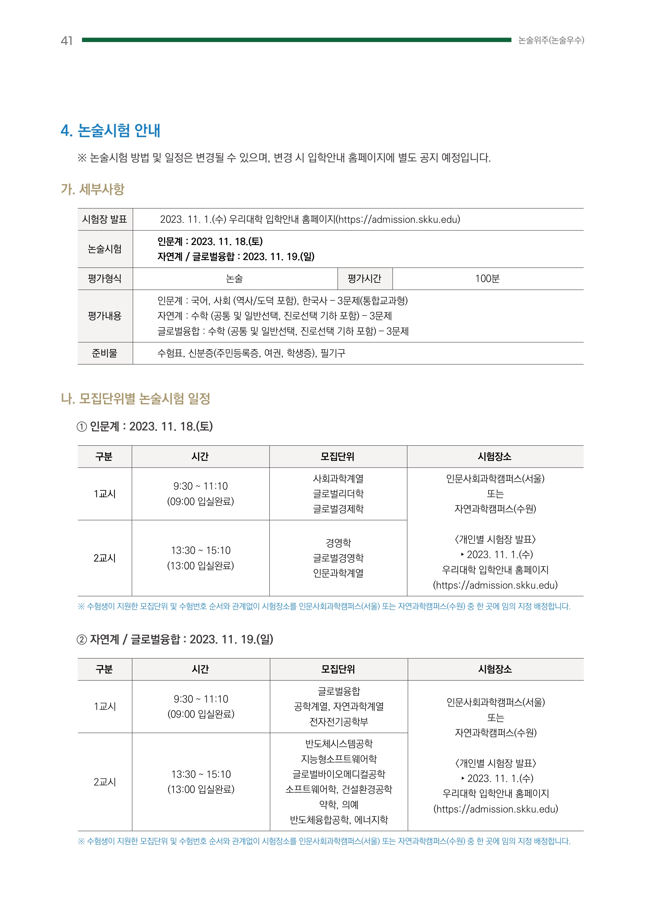 2024학년도 성균관대학교 논술위주전형 선발방법 2024학년도 성균관대학교 논술위주전형 논술시험 안내