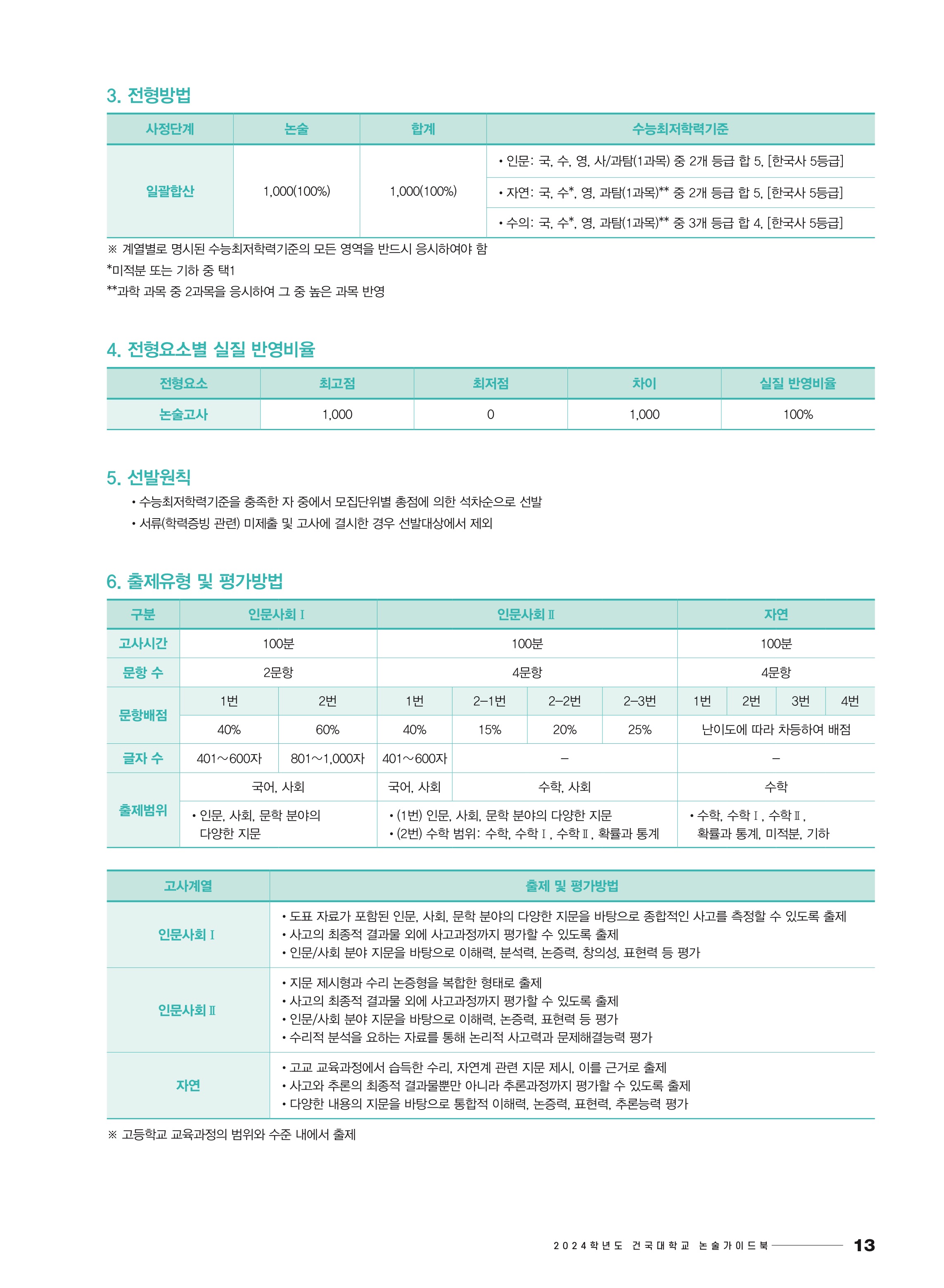 2024학년도 건국대학교 KU논술우수자전형 전형일정 2024학년도 건국대학교 논술고사 분석 및 지원전략
