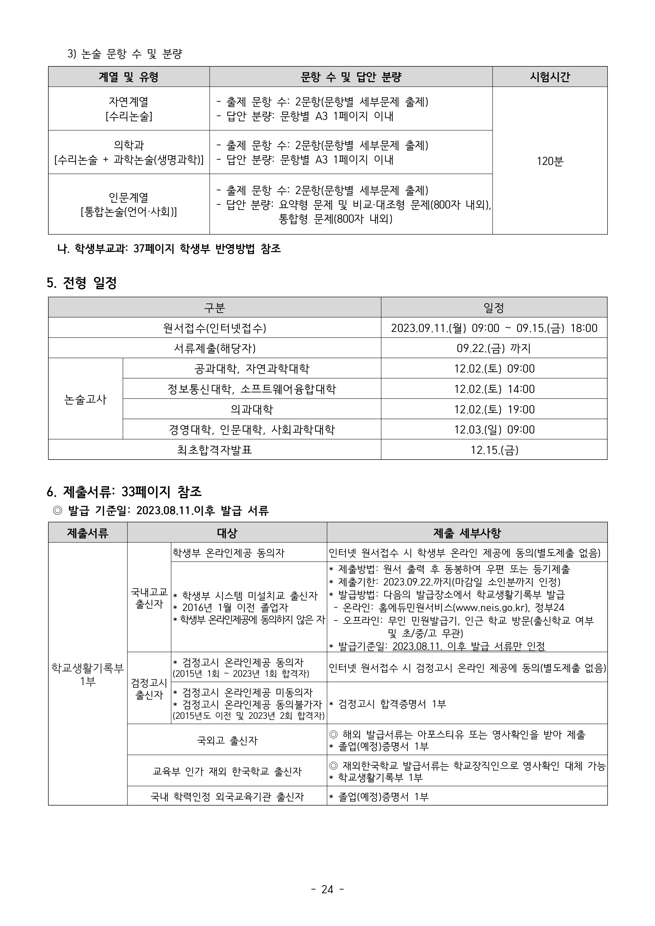 2024학년도 아주대학교 논술우수자전형 평가방법 2024학년도 아주대학교 논술우수자전형 전형일정