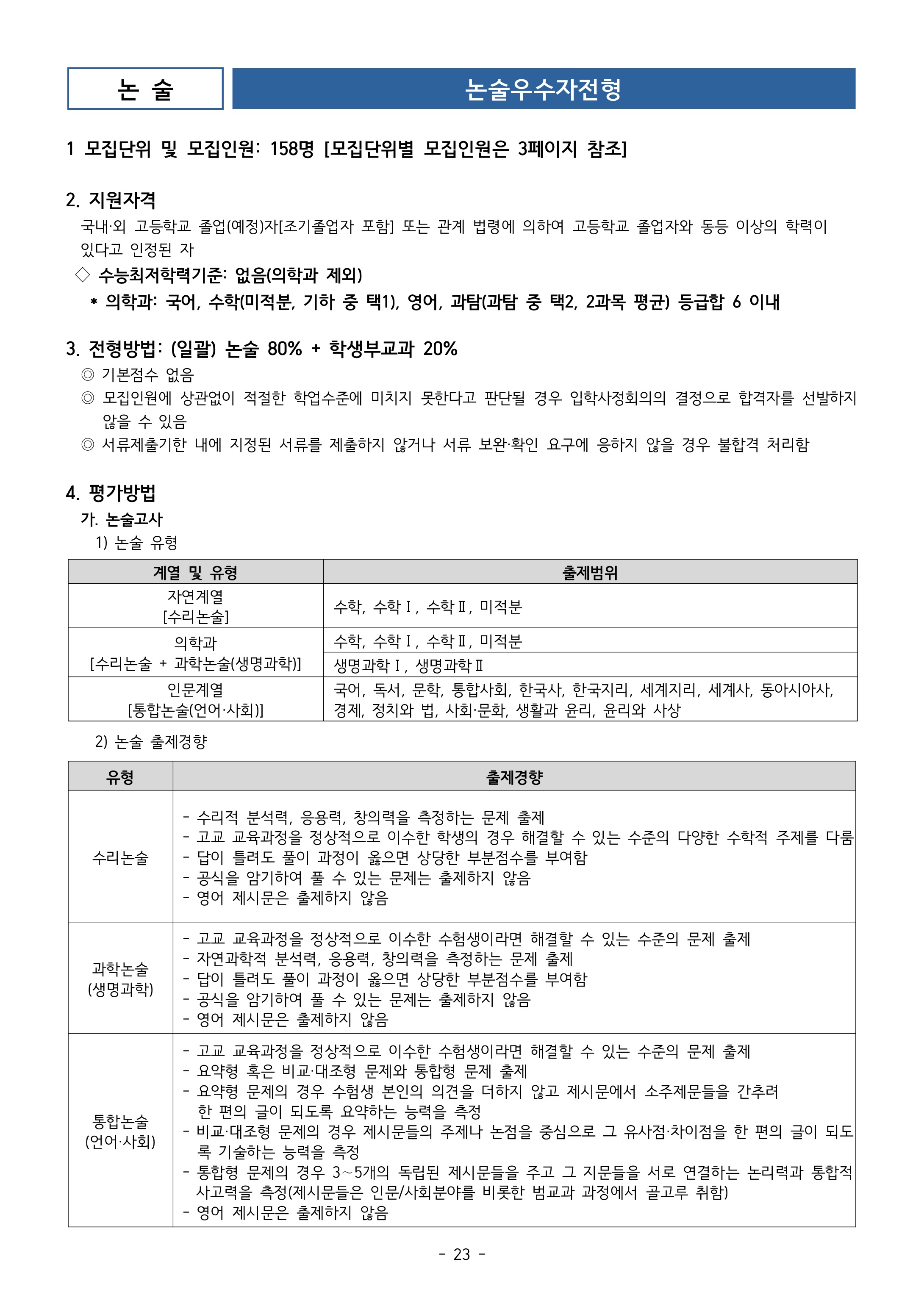 2024학년도 아주대학교 논술 전형입시 정보/논술 2023. 8. 24. 10:36