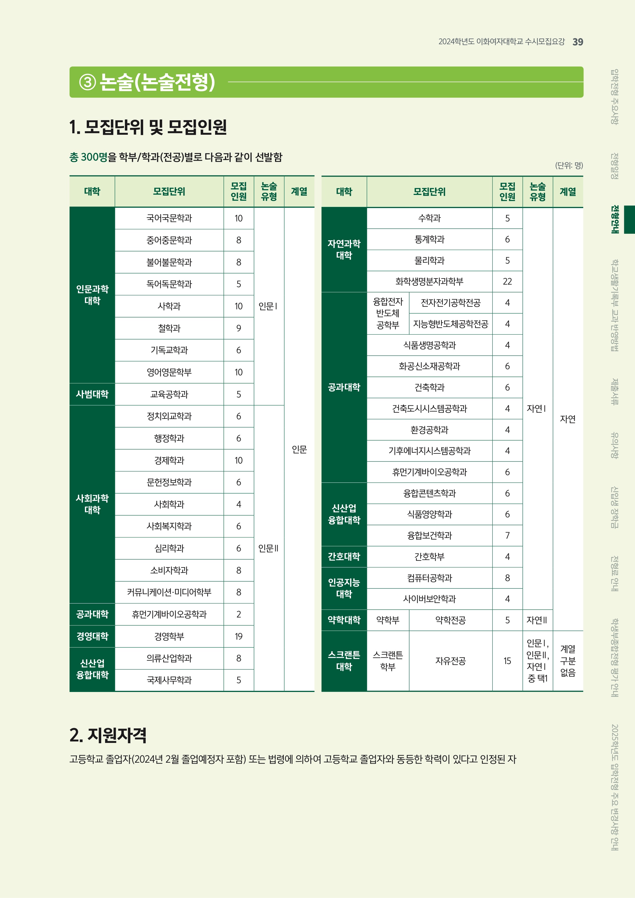 2024학년도 이화여자대학교 논술전형 모집단위 및 모집인원 2024학년도 이화여자대학교 논술전형 전형방법 및 전형요소
