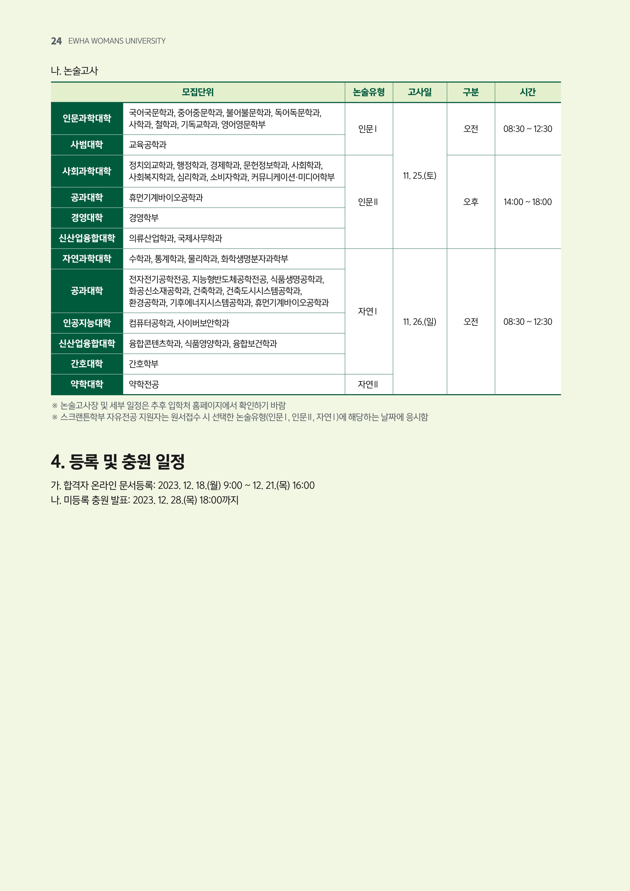2024학년도 이화여자대학교 논술전형 전형일정 2024학년도 이화여자대학교 논술전형 모집단위 및 모집인원