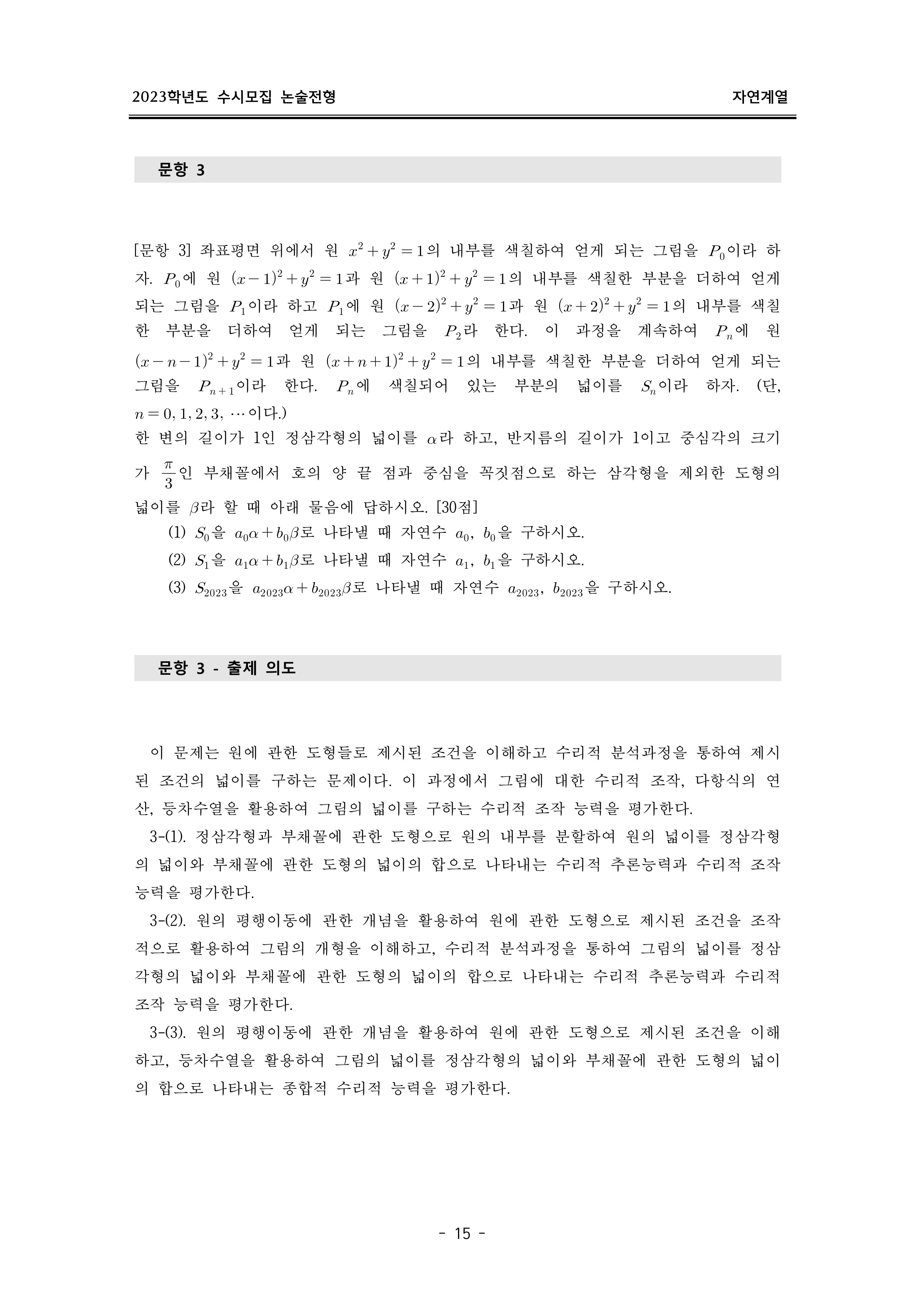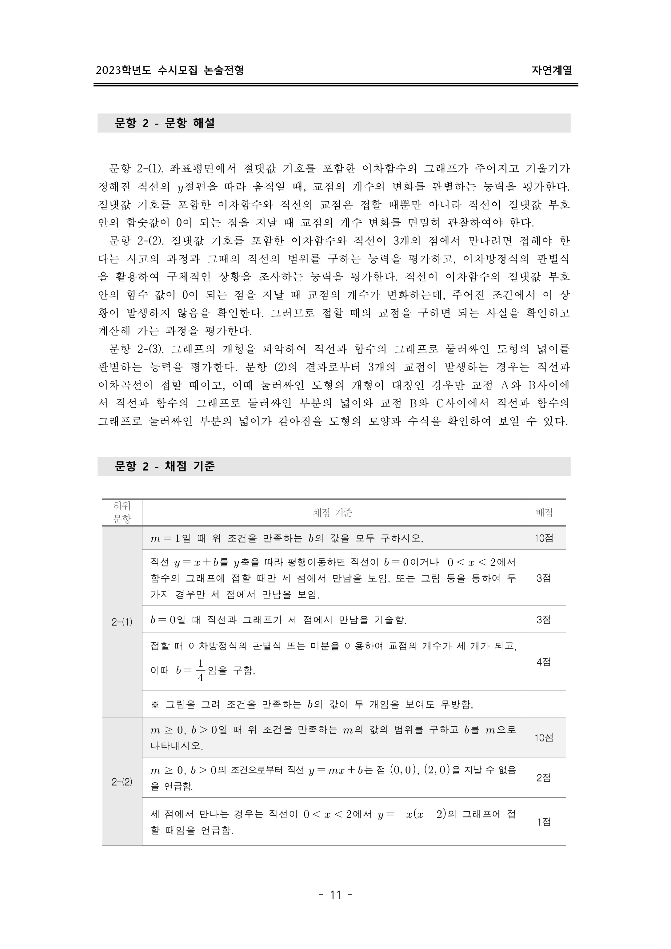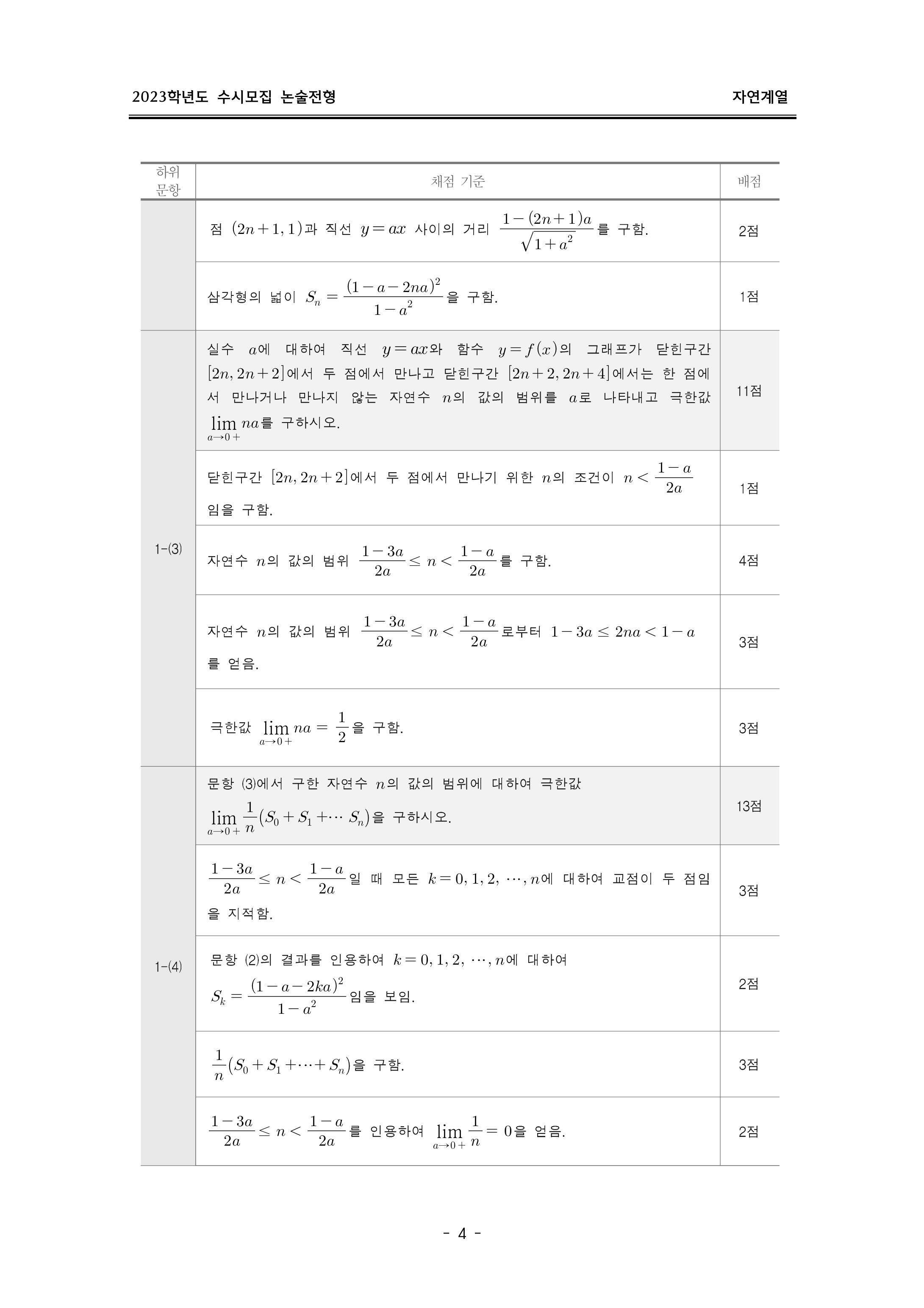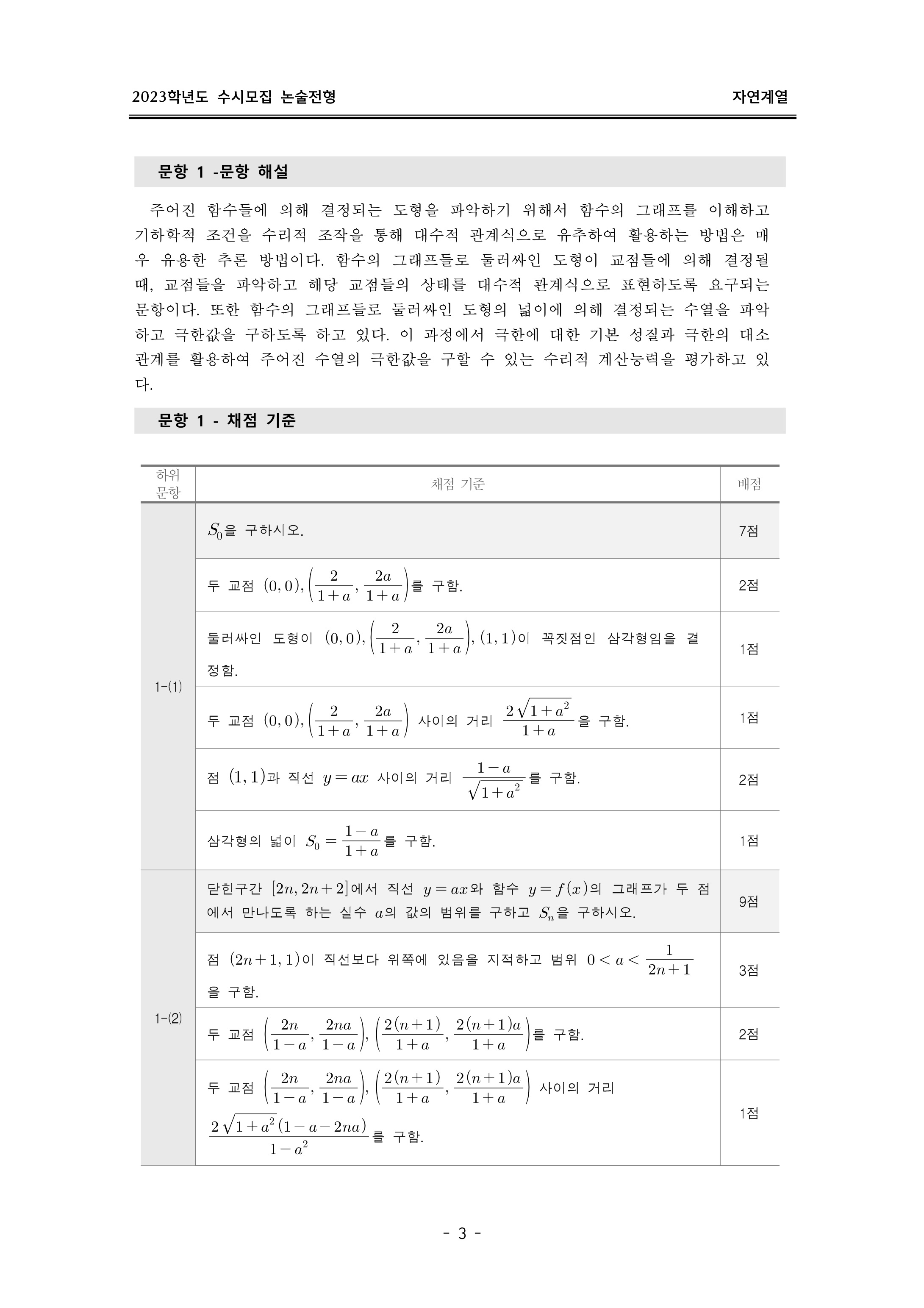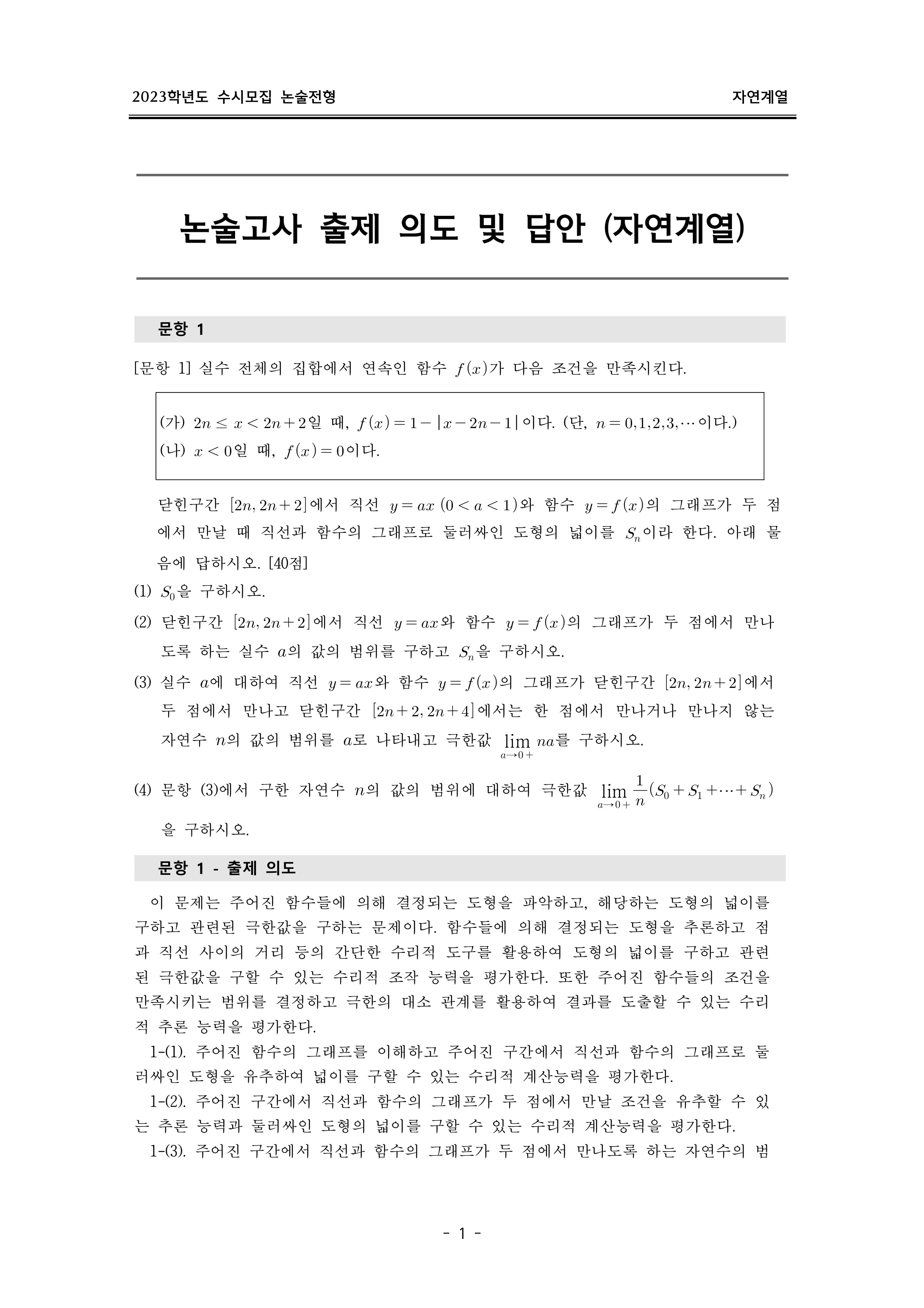 2023학년도 이화여자대학교 논술고사 출제 의도 및 답안 (자연계열)