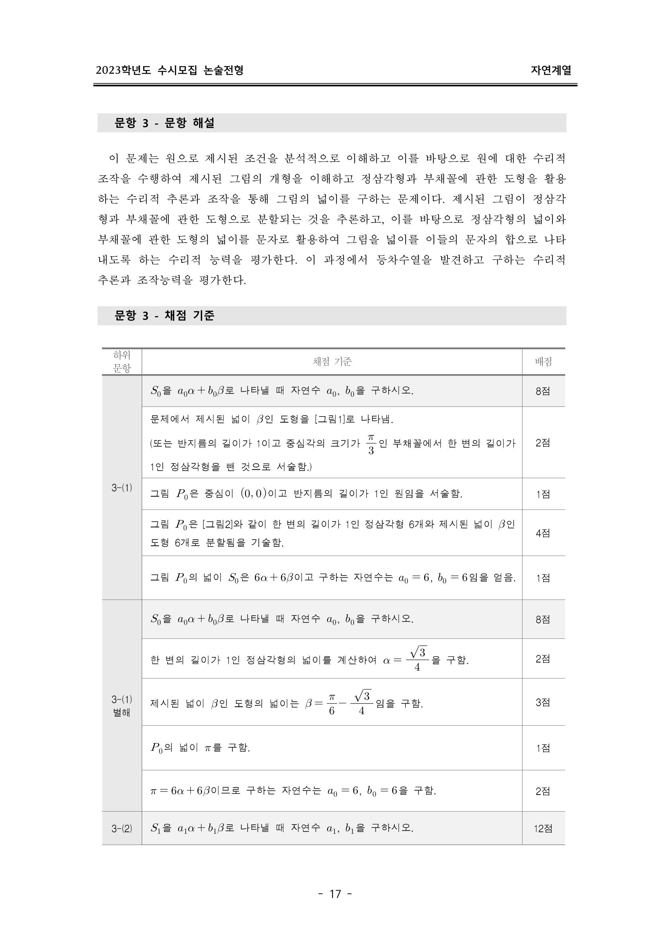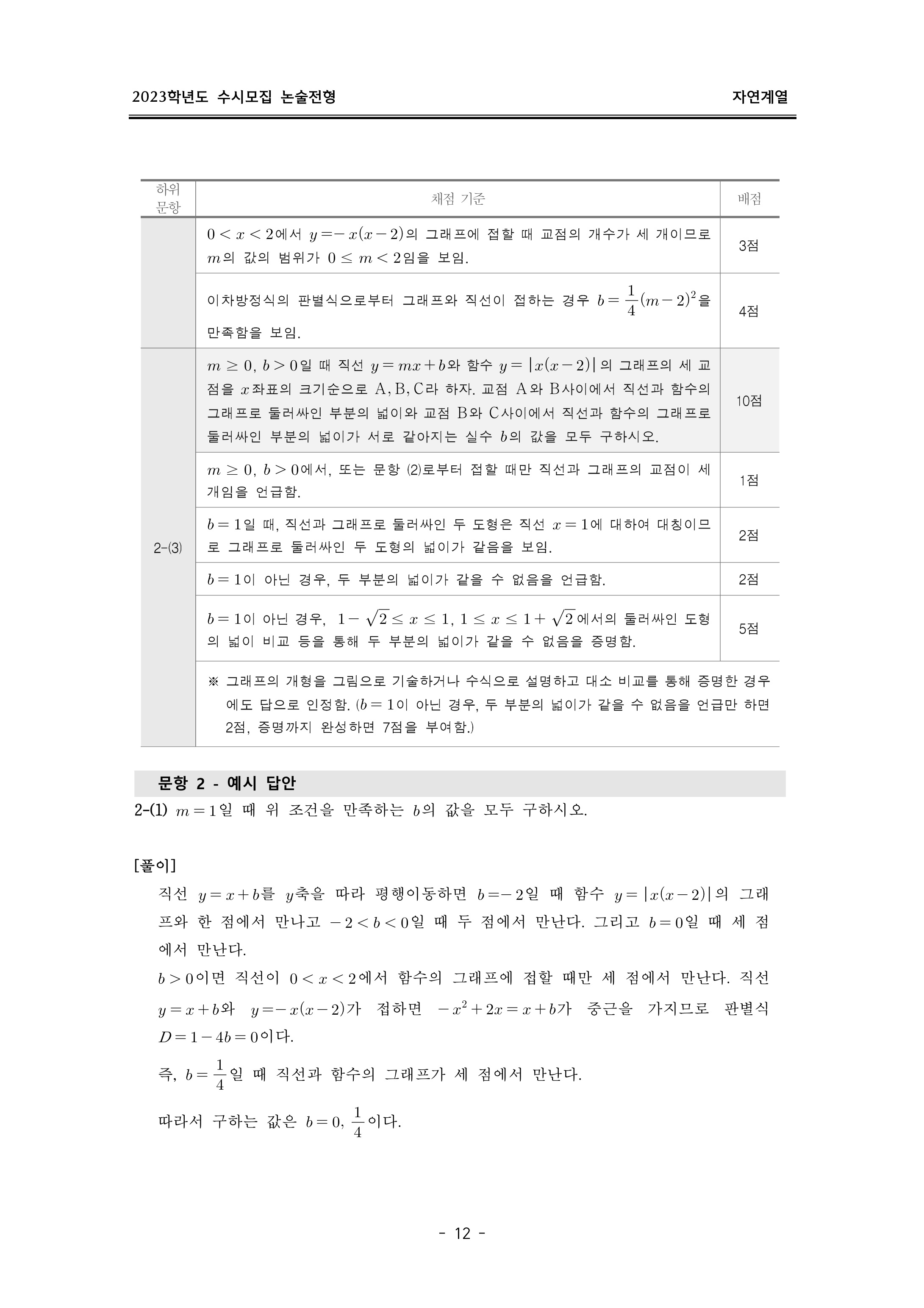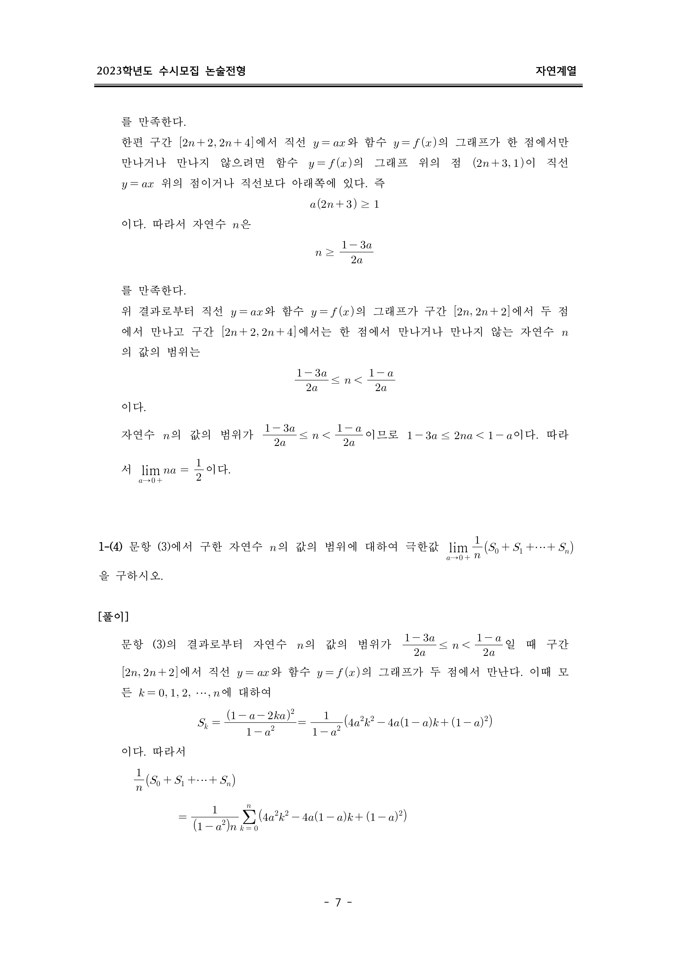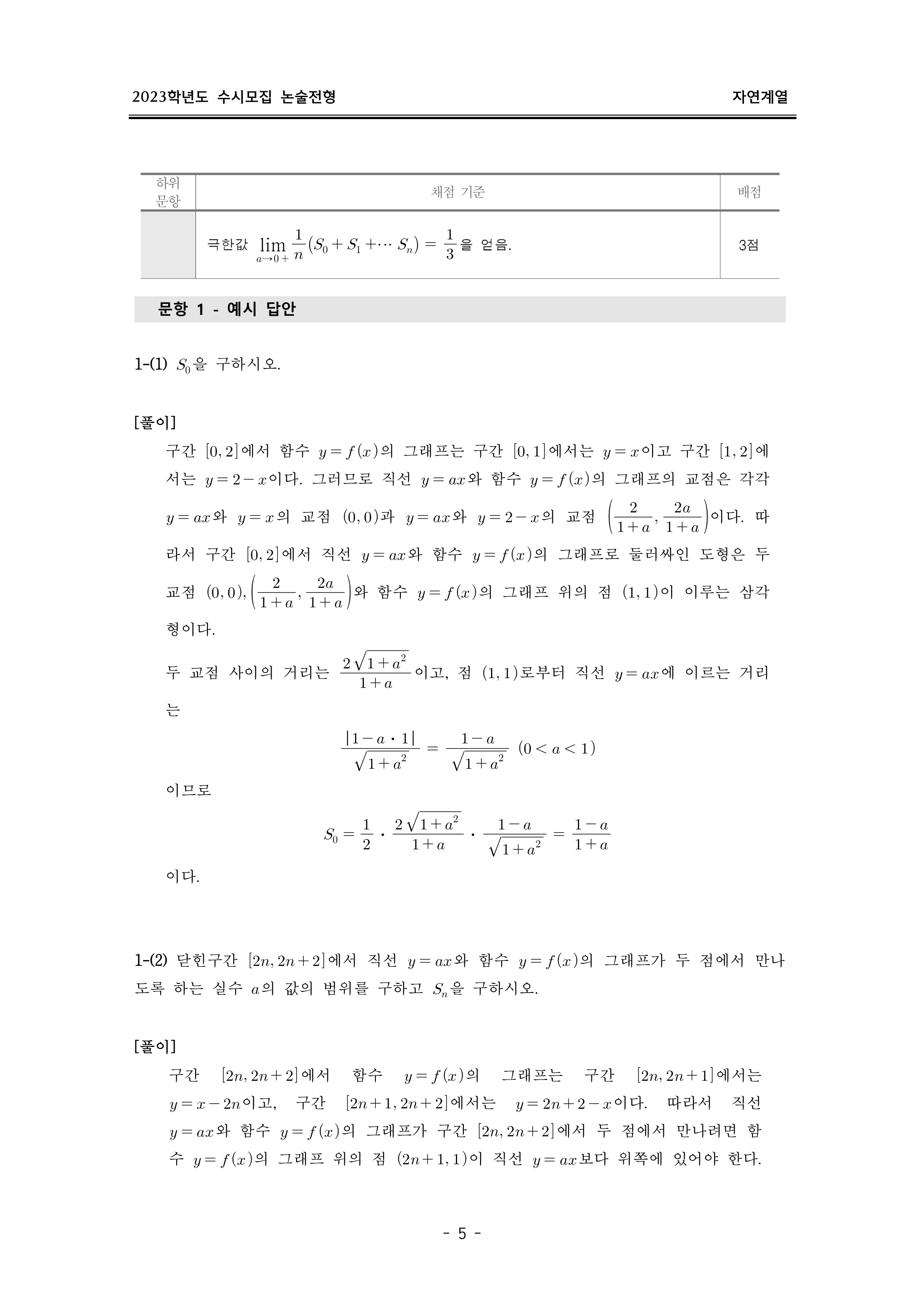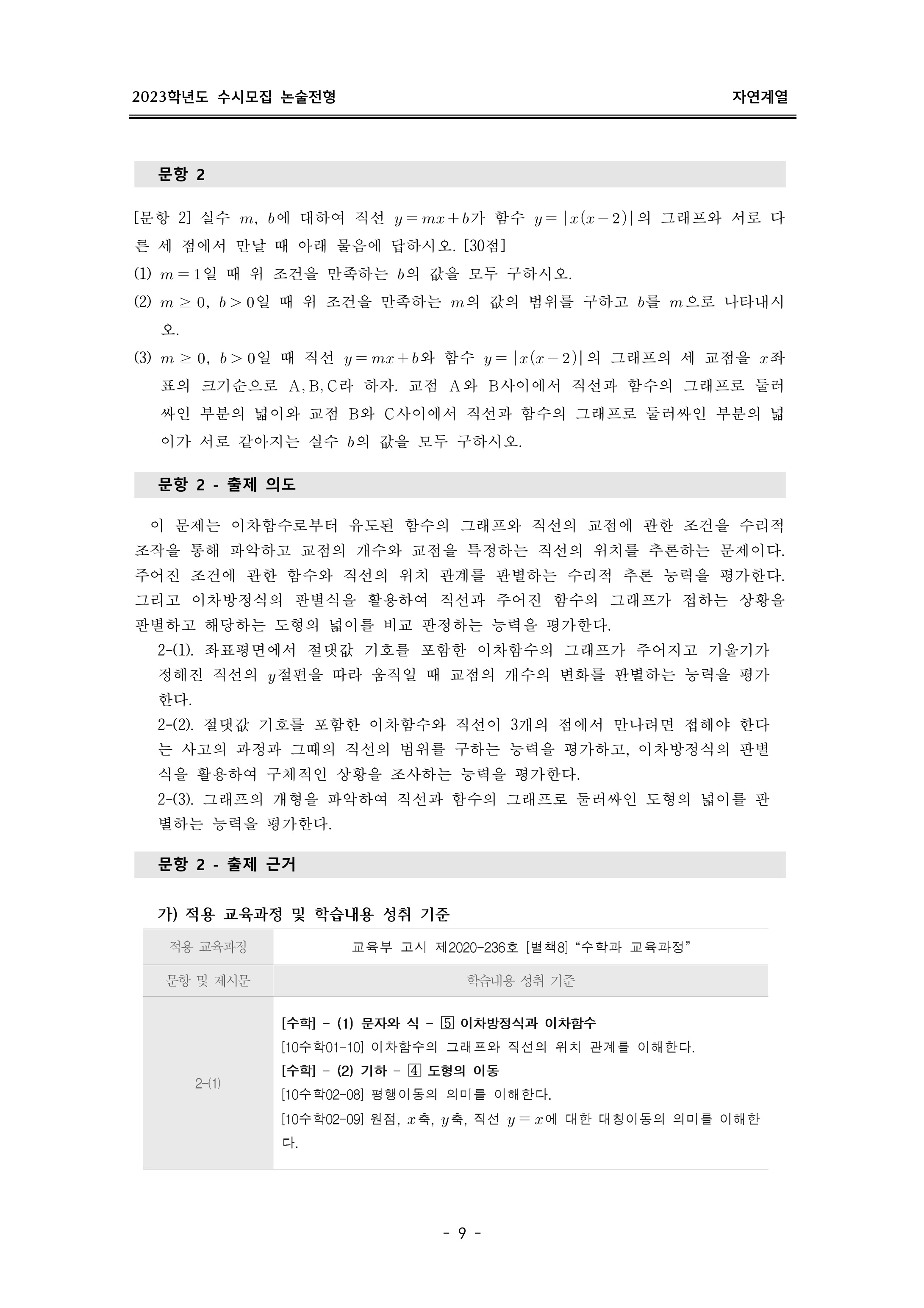 2023학년도 이화여자대학교 논술고사 출제 의도 및 답안 (자연계열)