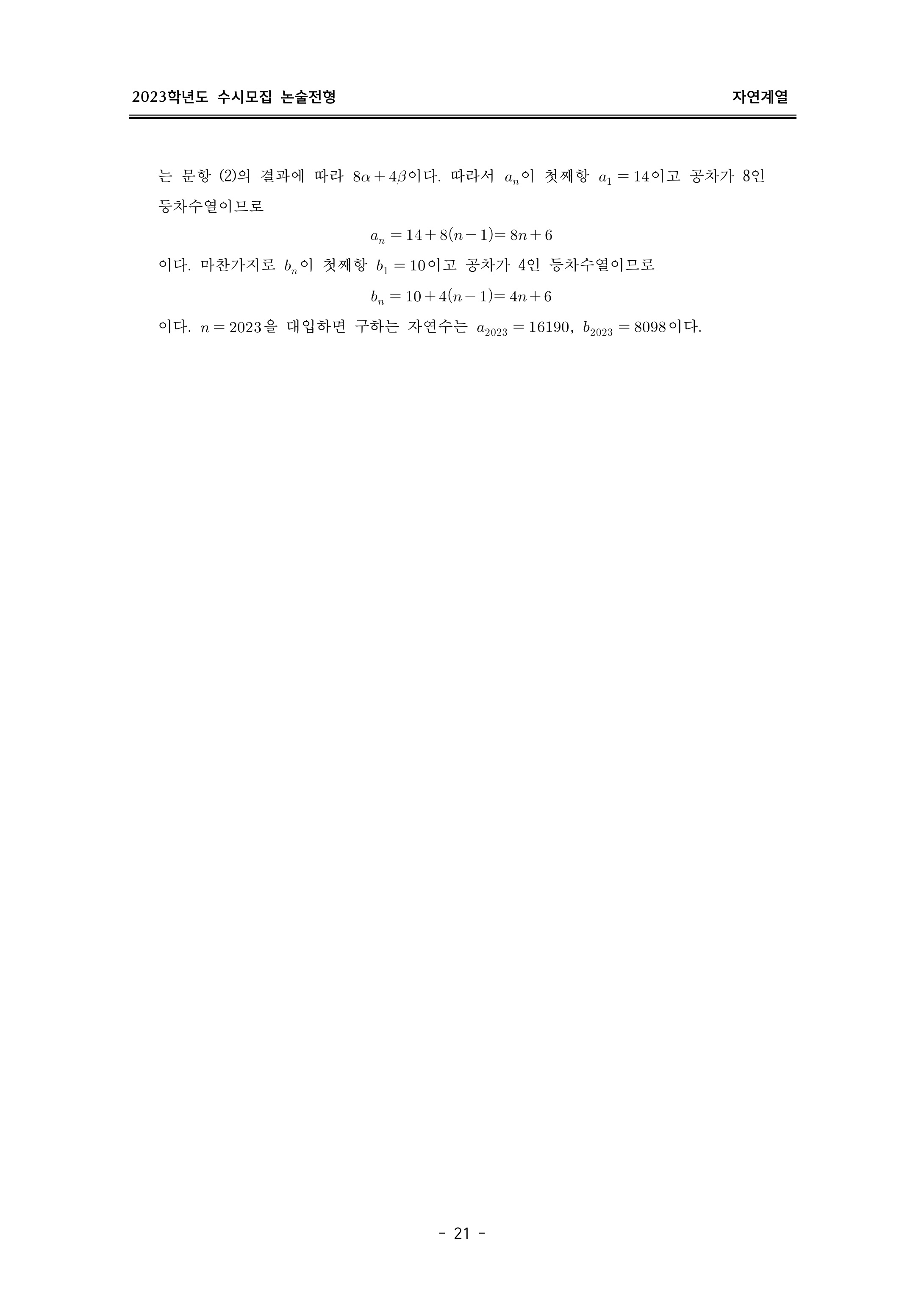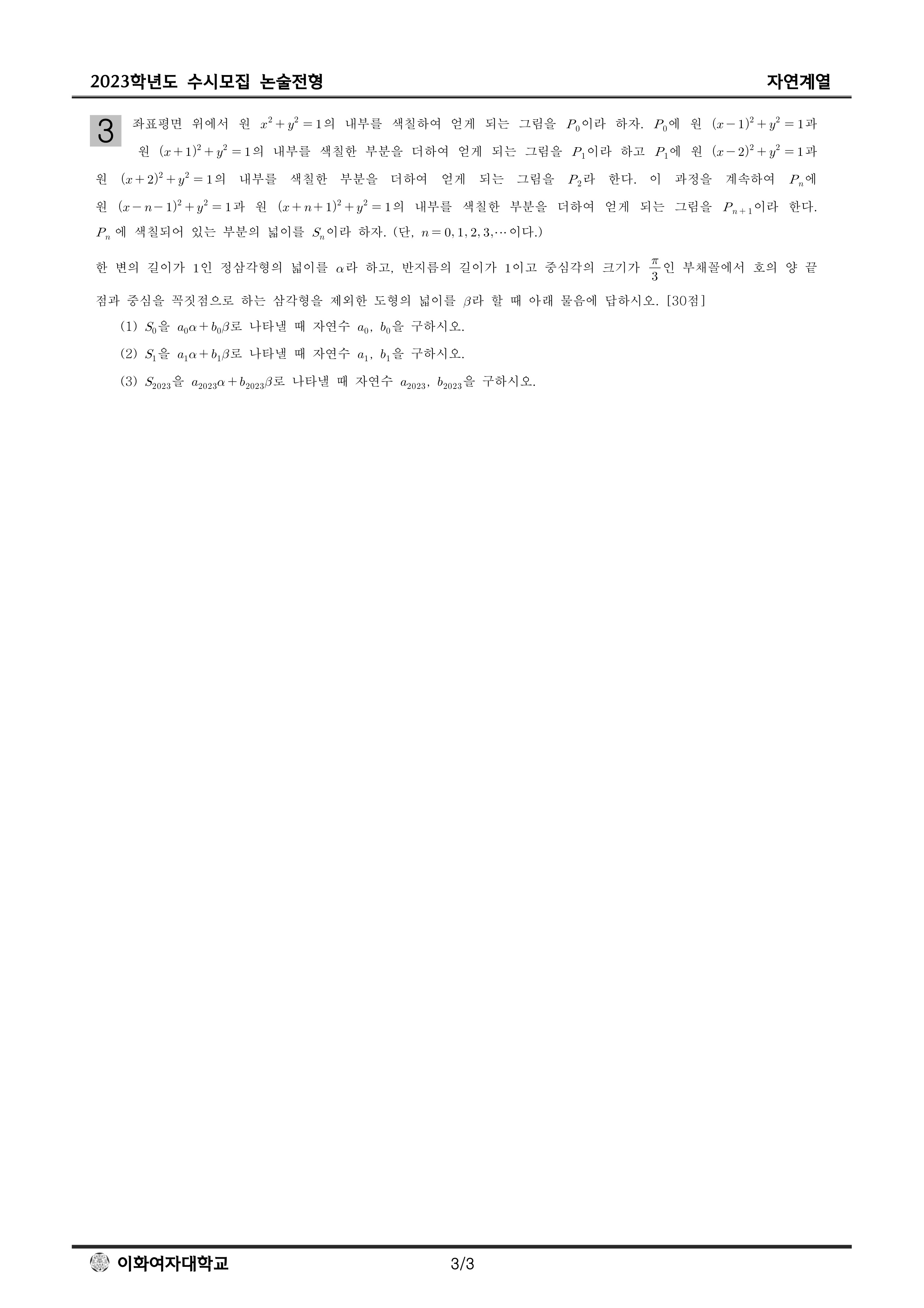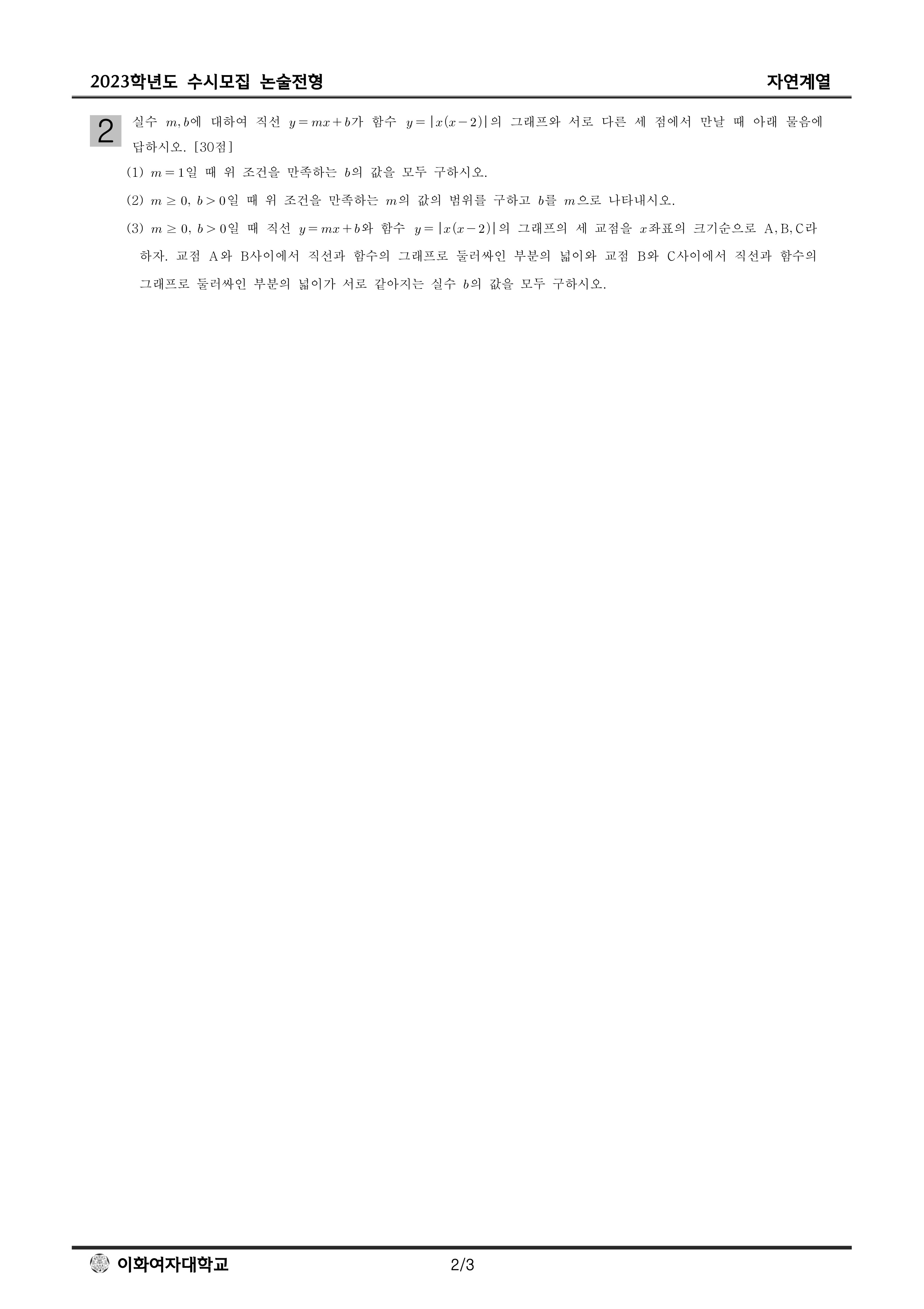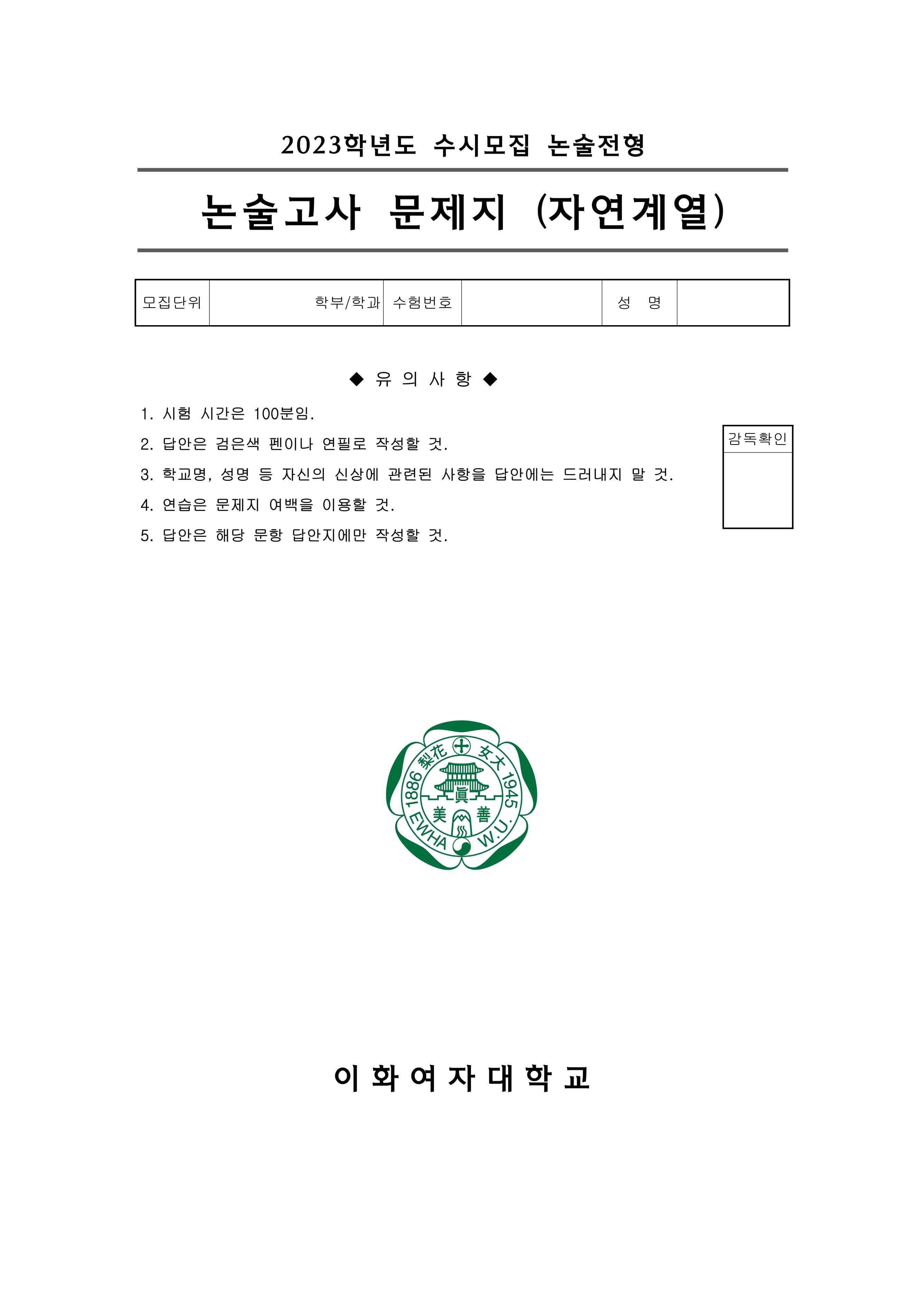 2023학년도 이화여자대학교 논술고사 문제지 (자연계열)