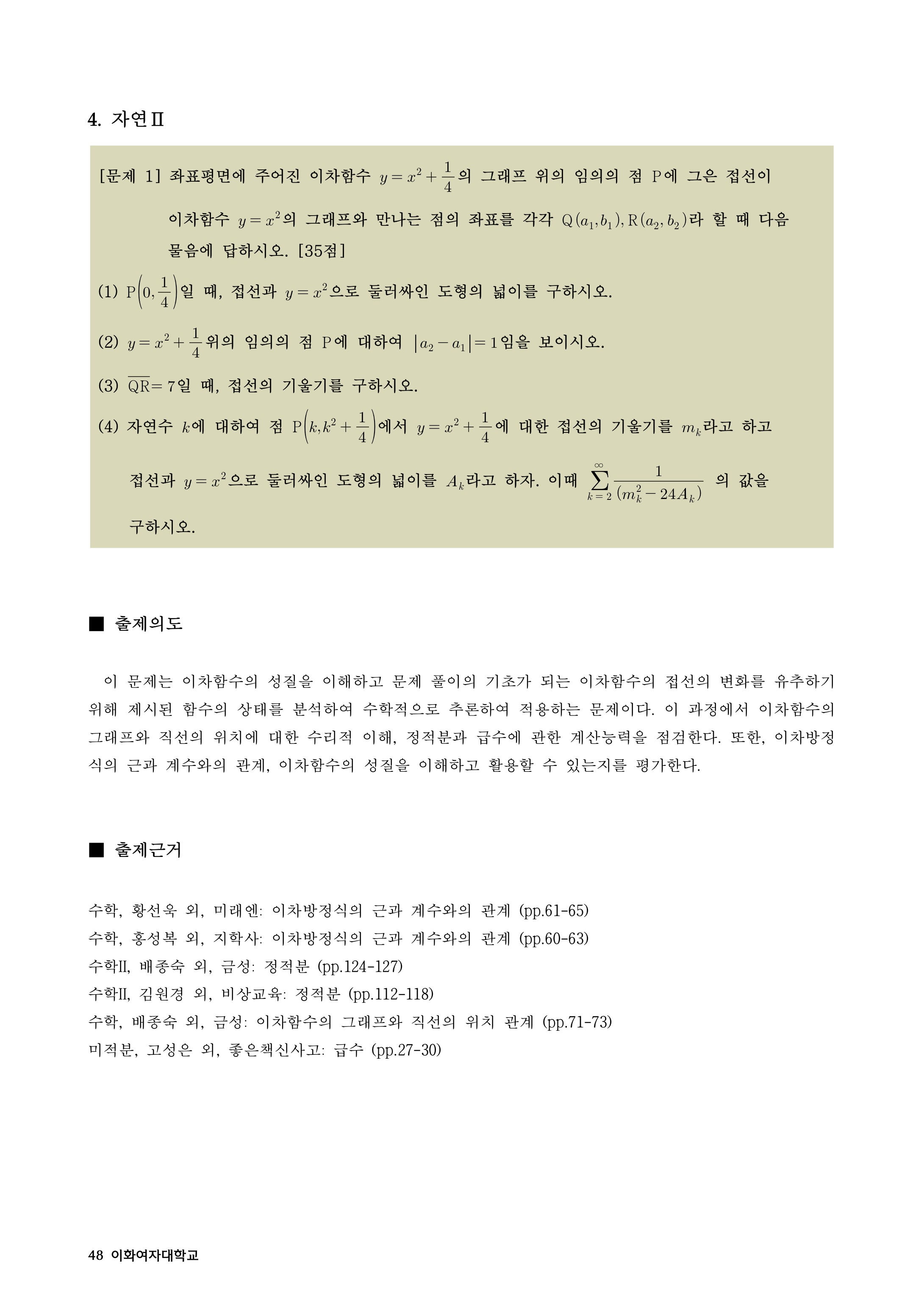 2024학년도 이화여자대학교 모의논술고사 출제의도 및 특징 2024학년도 이화여자대학교 모의논술고사 해설 (자연Ⅰ)