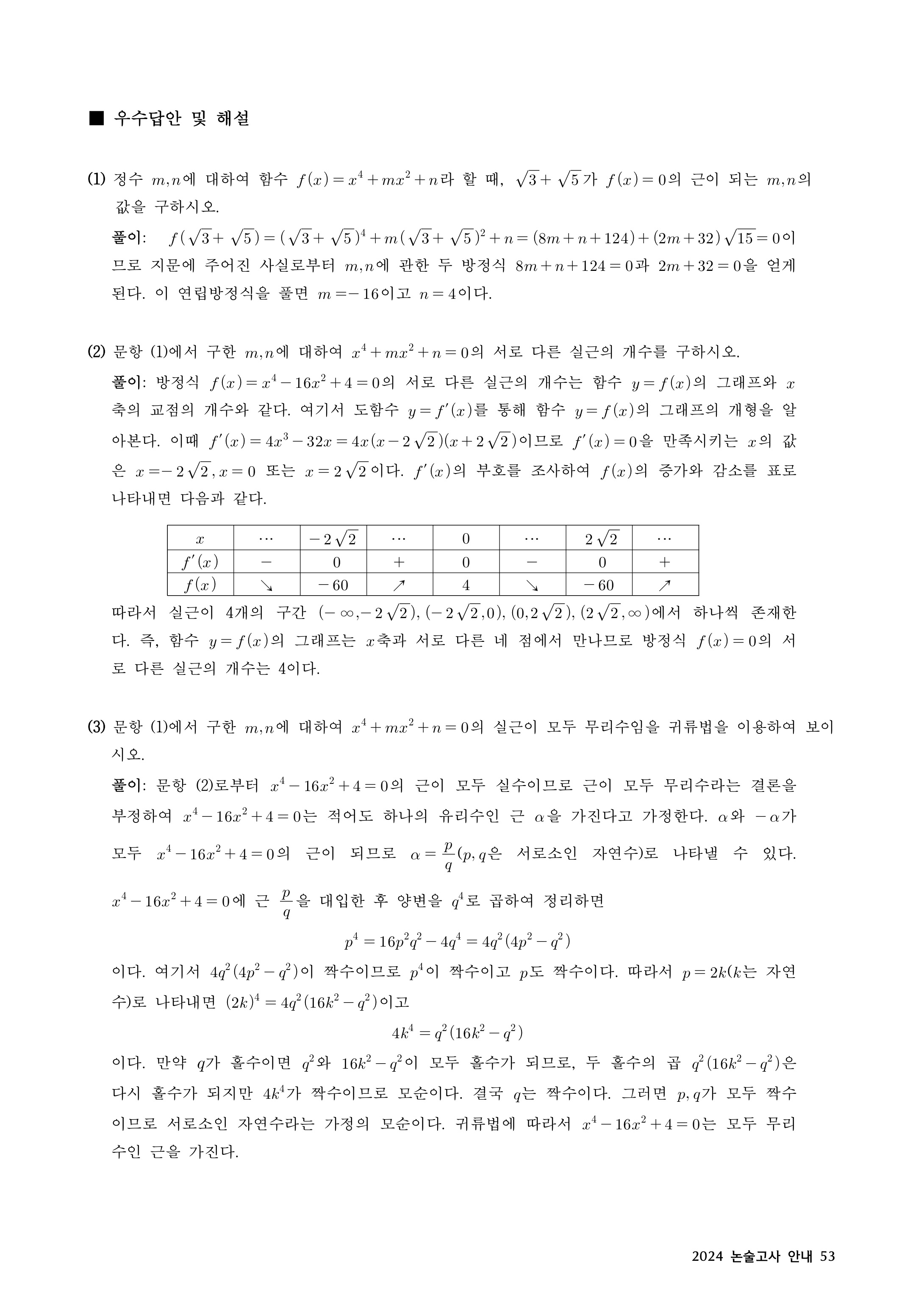 2024학년도 이화여자대학교 모의논술고사 해설 (자연Ⅰ)
