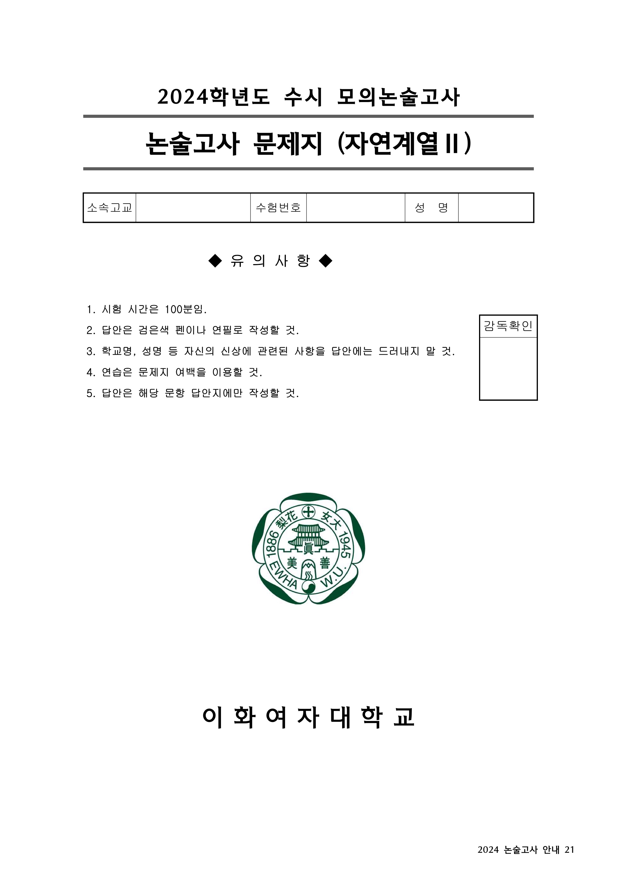 2024학년도 이화여자대학교 모의논술고사 문제지 (자연계열Ⅱ)