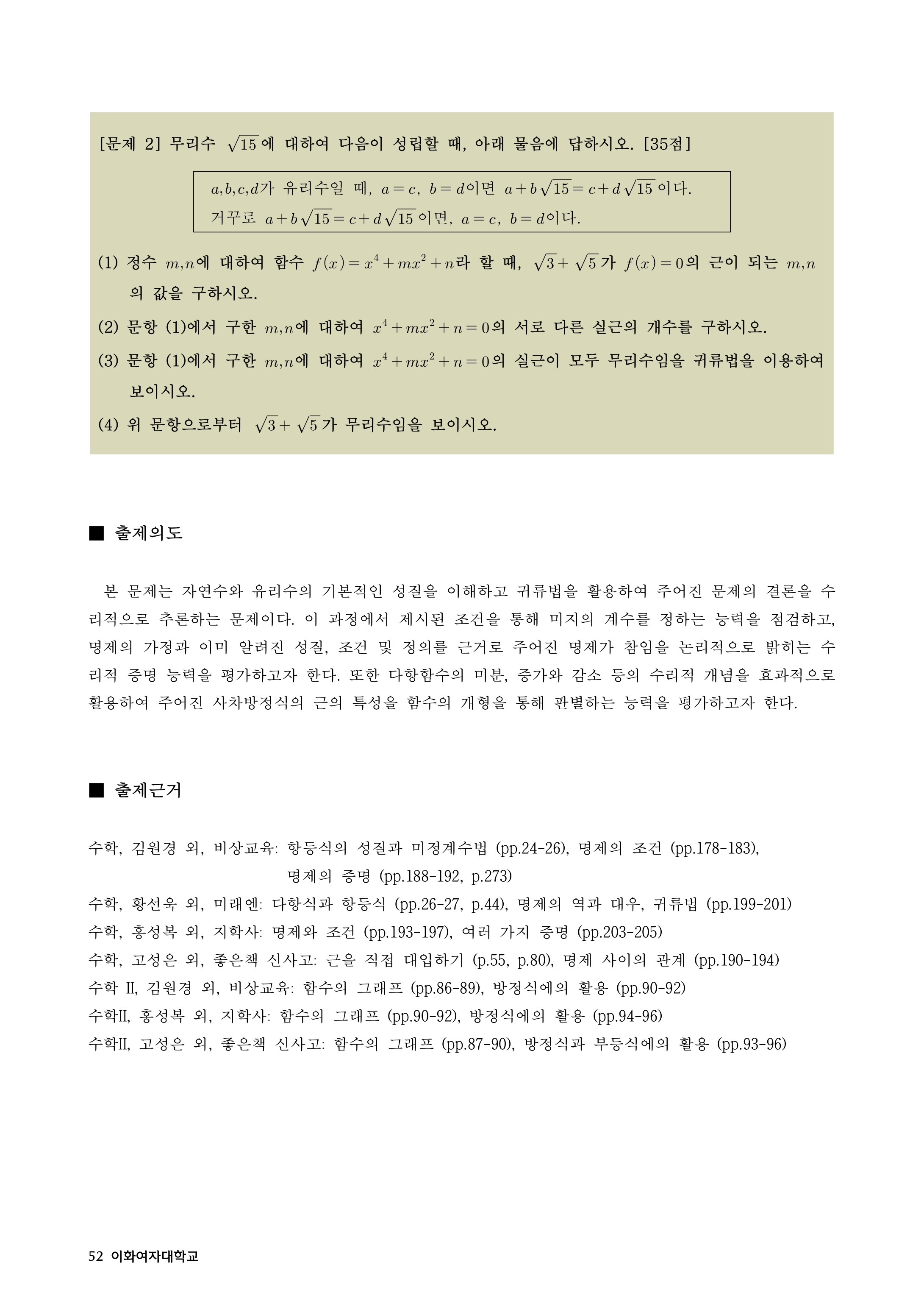 2024학년도 이화여자대학교 모의논술고사 문제지 (자연계열Ⅱ) 2024학년도 이화여자대학교 모의논술고사 출제의도 및 특징