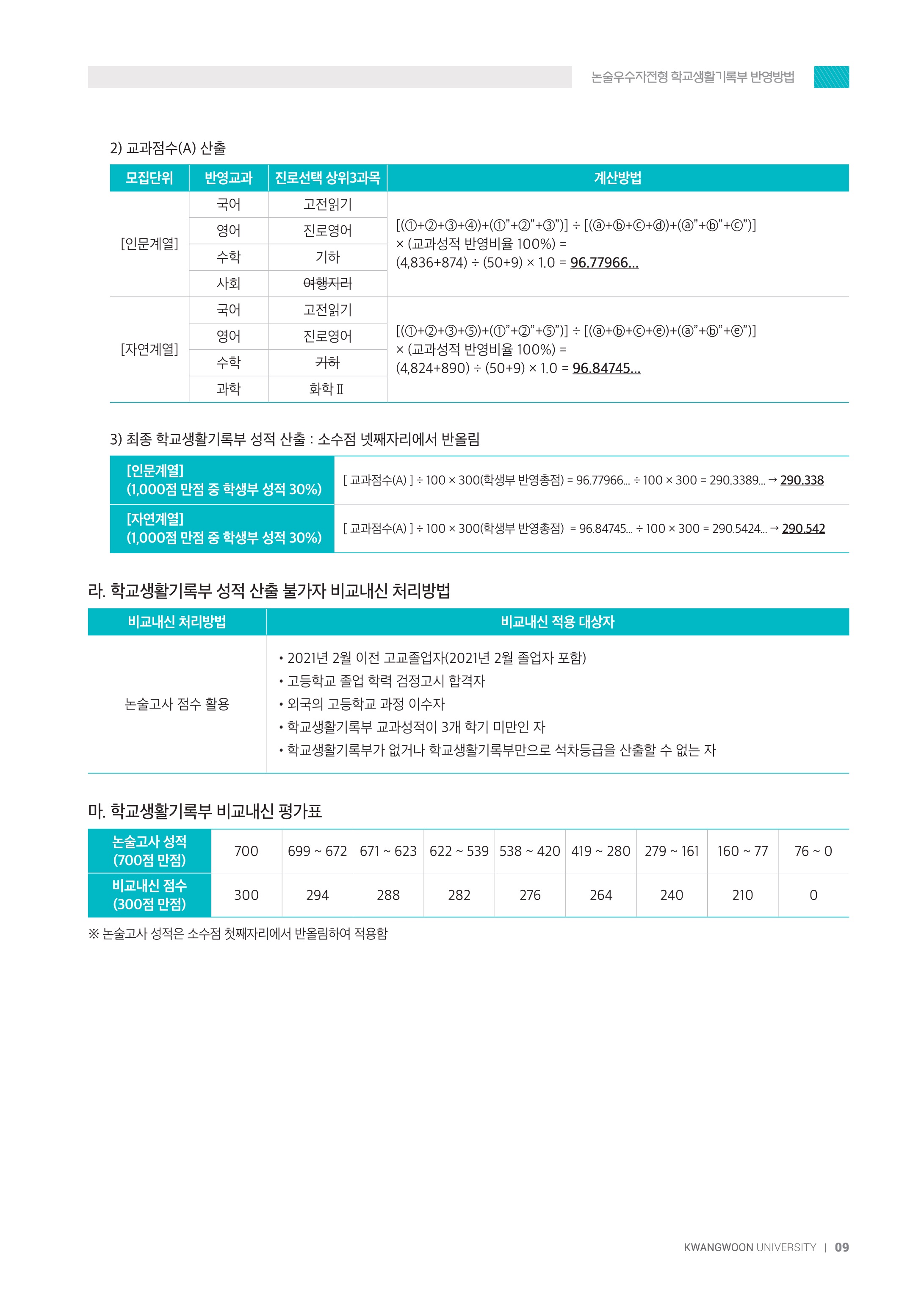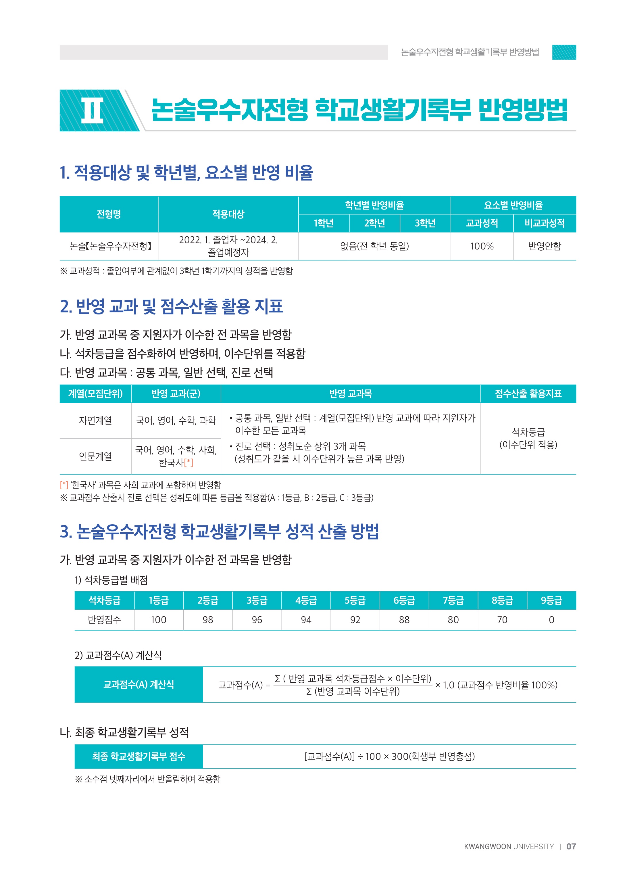 2024학년도 광운대학교 논술우수자전형 학교생활기록부 반영방법 2024학년도 광운대학교 논술우수자전형 전형 유의사항