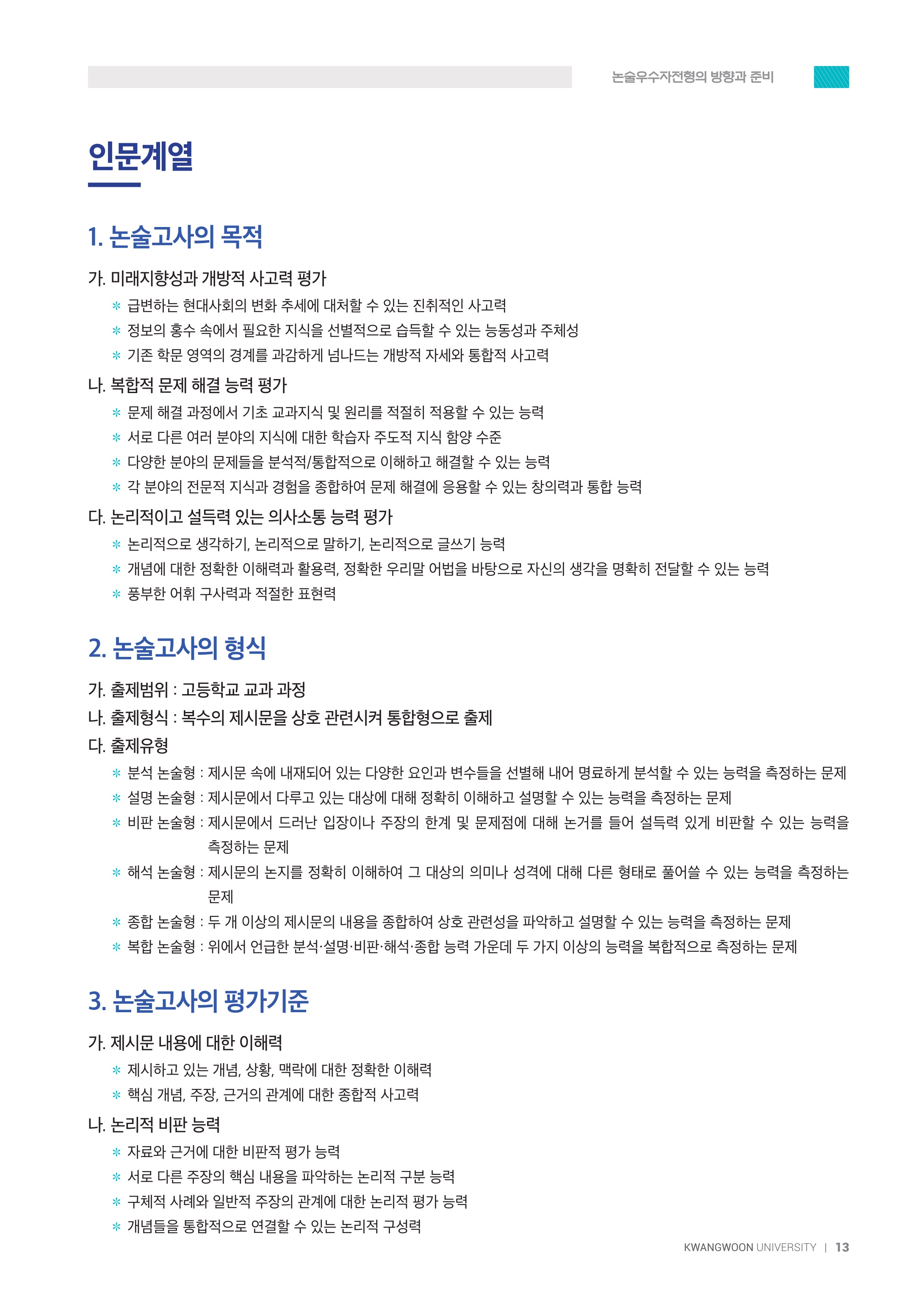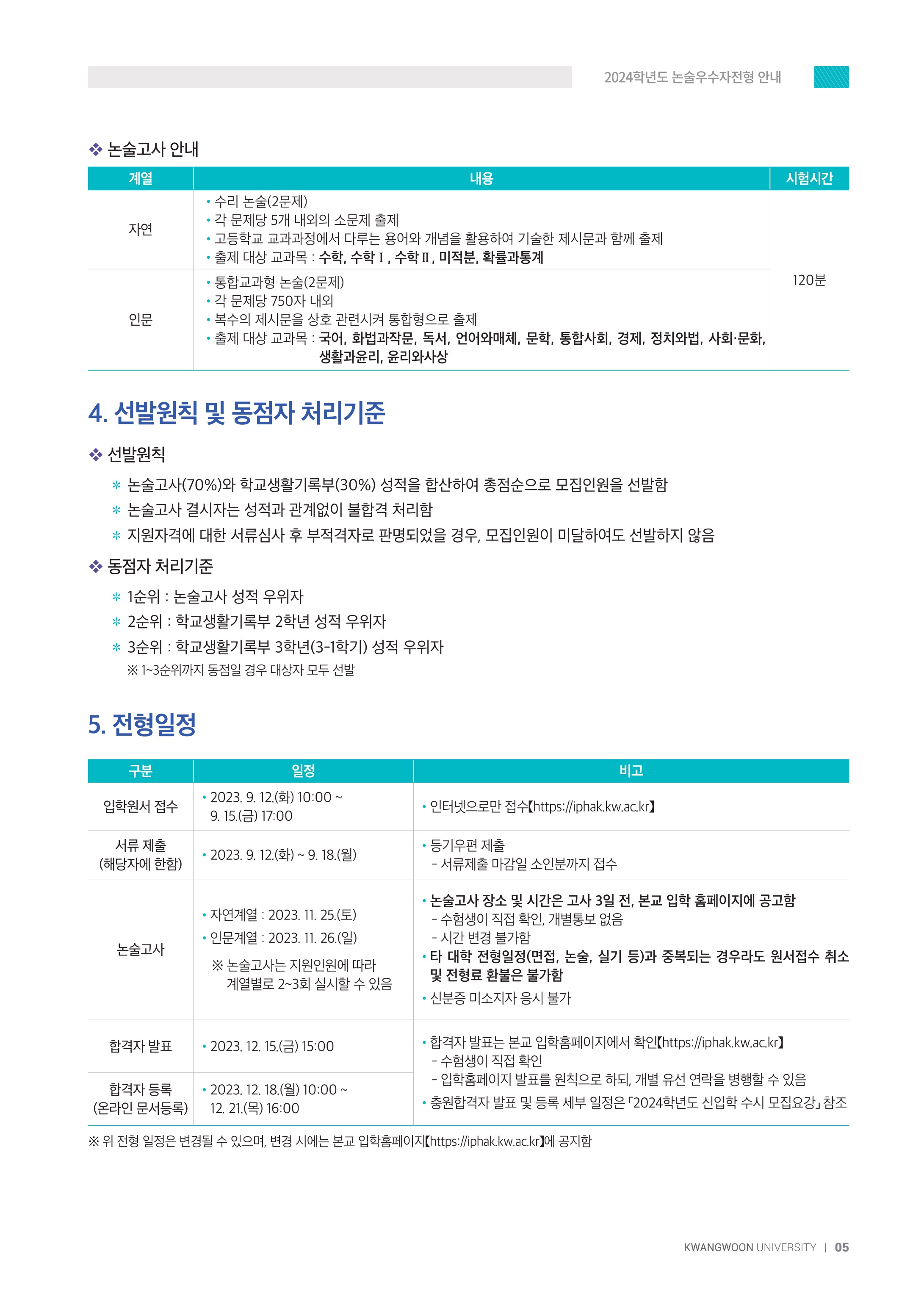 2024학년도 광운대학교 논술우수자전형 전형 유의사항 2024학년도 광운대학교 논술우수자전형의 방향과 준비