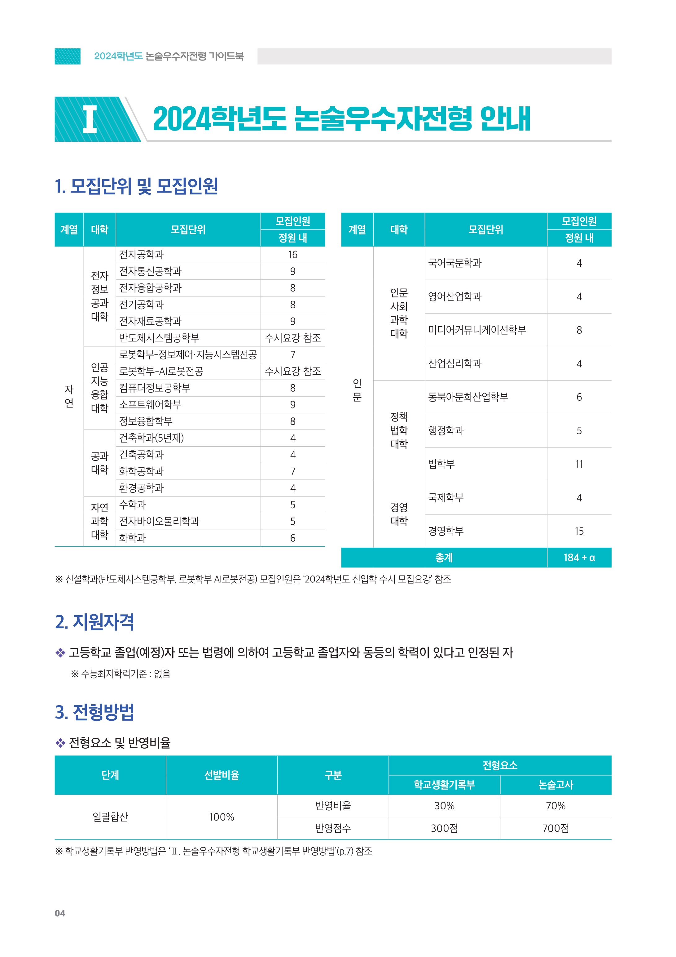 2024학년도 광운대학교 논술우수자전형 모집단위 및 모집인원 2024학년도 광운대학교 논술우수자전형 논술고사 안내