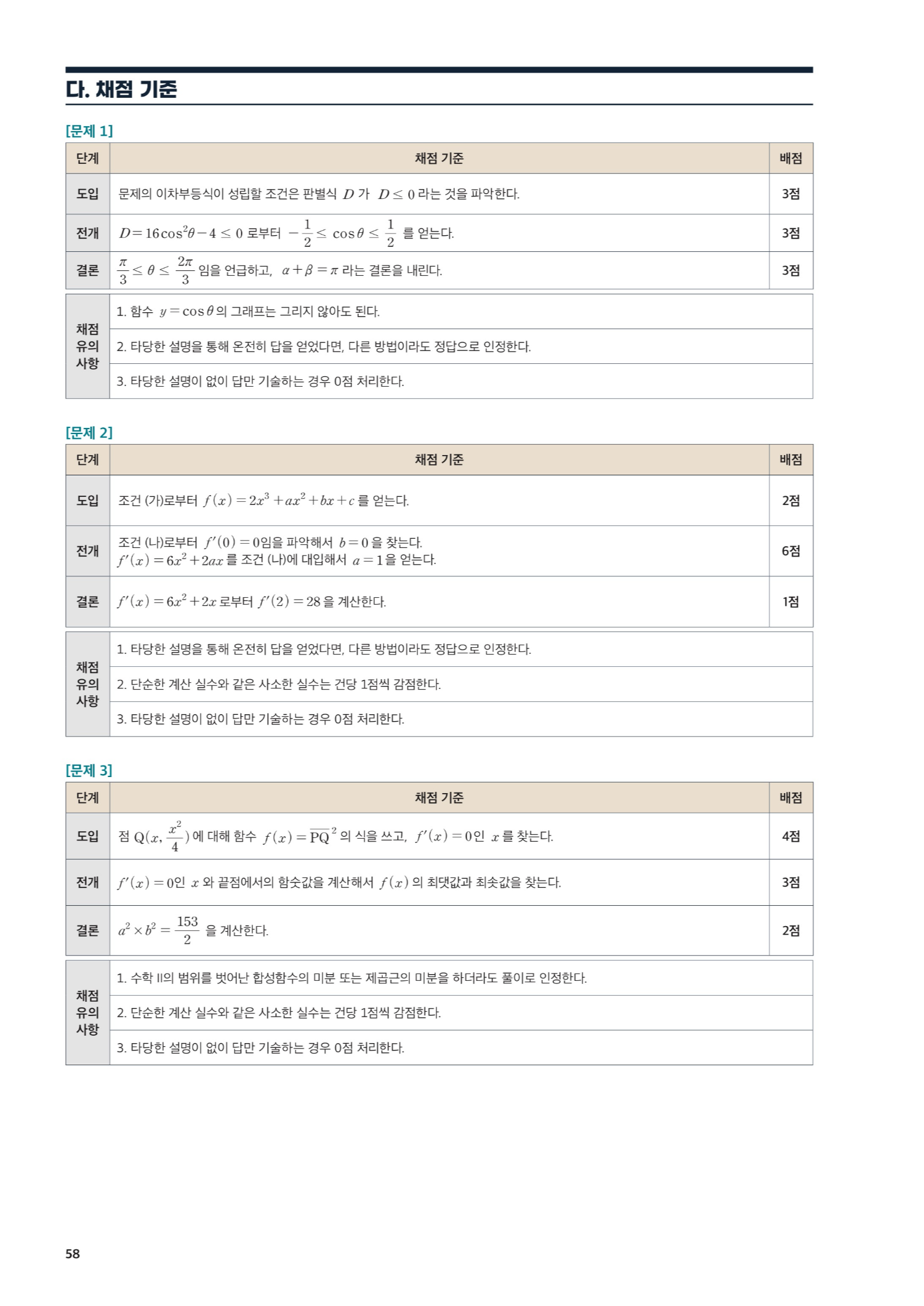 2023학년도 한국외국어대학교 논술전형 채점 기준 (자연계) 2024학년도 한국외국어대학교 논술가이드북