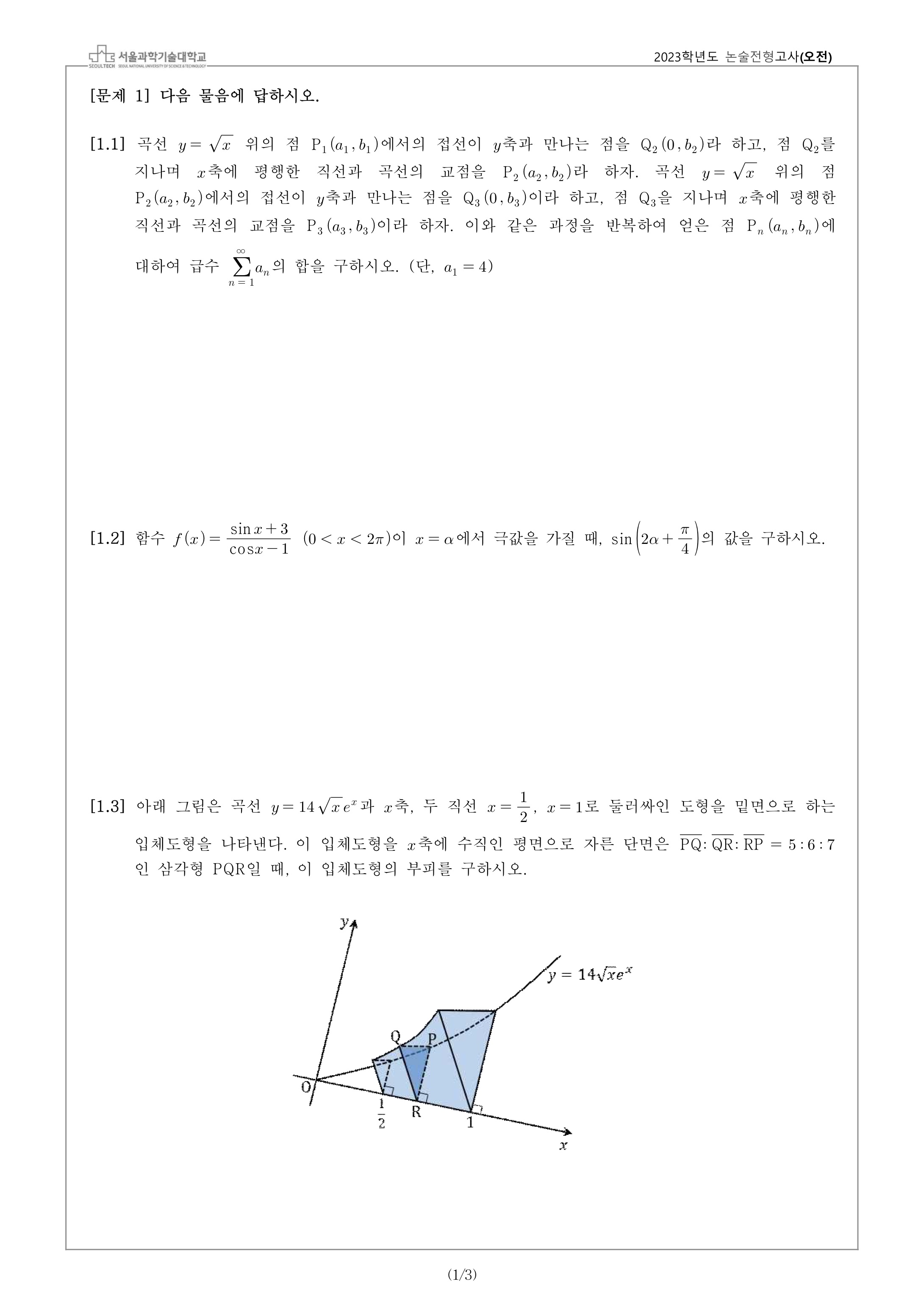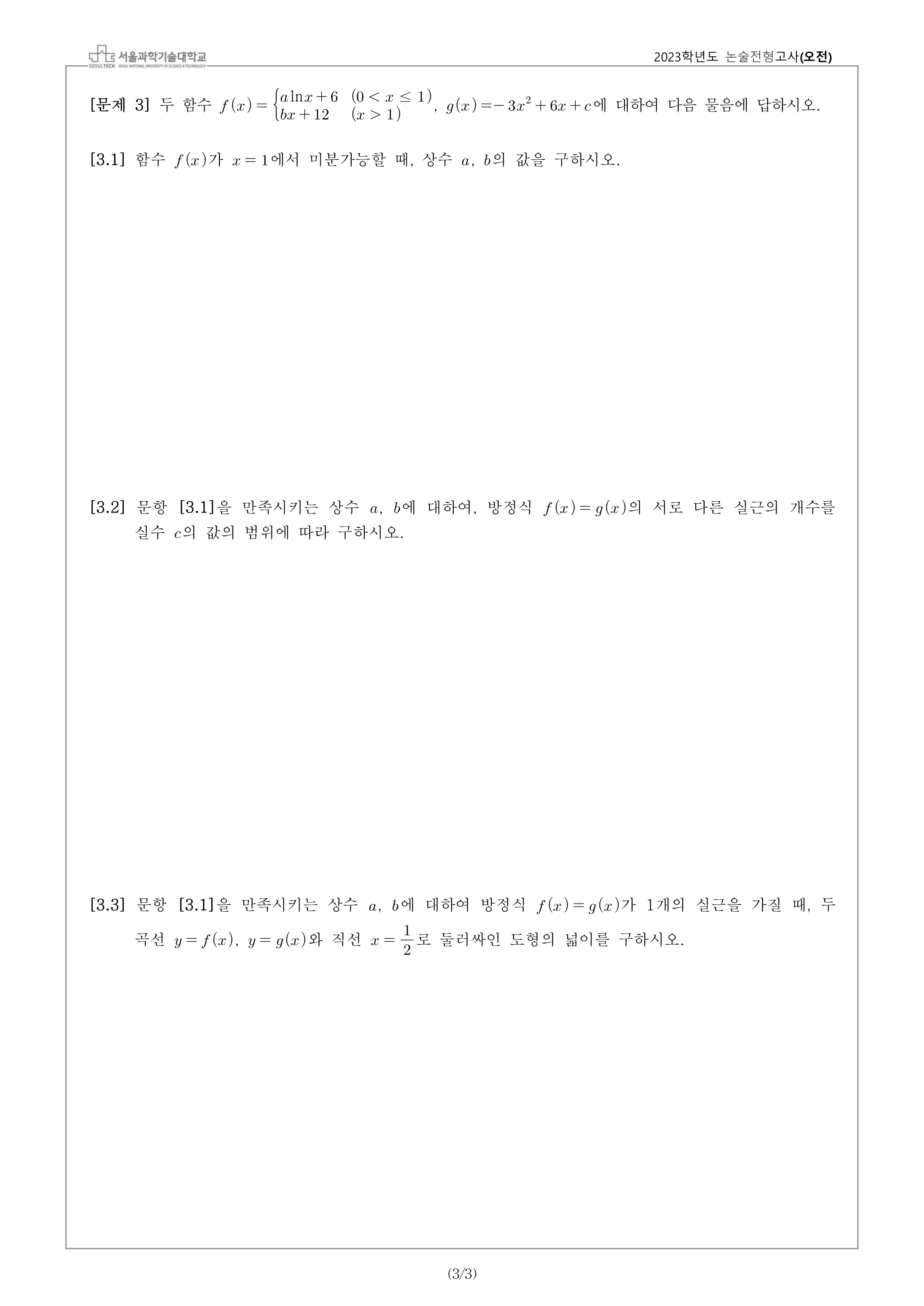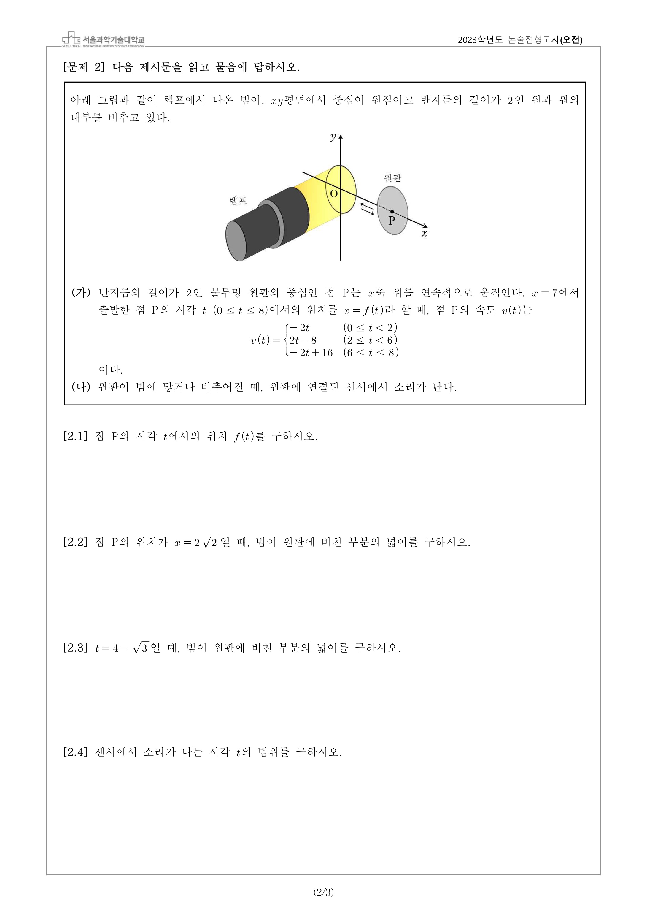 2023학년도 서울과학기술대학교 수시모집 논술전형고사 문제지 - 오전