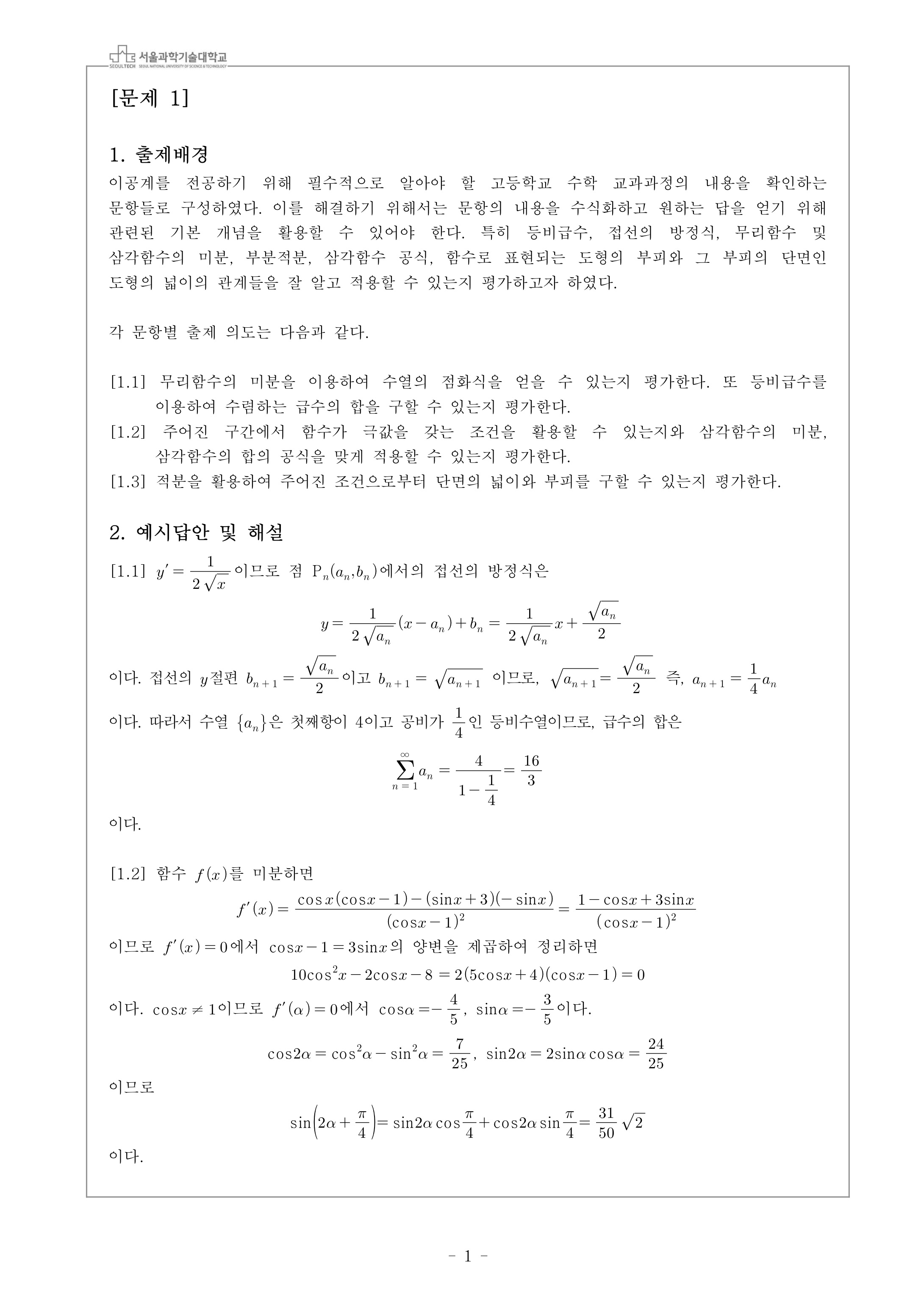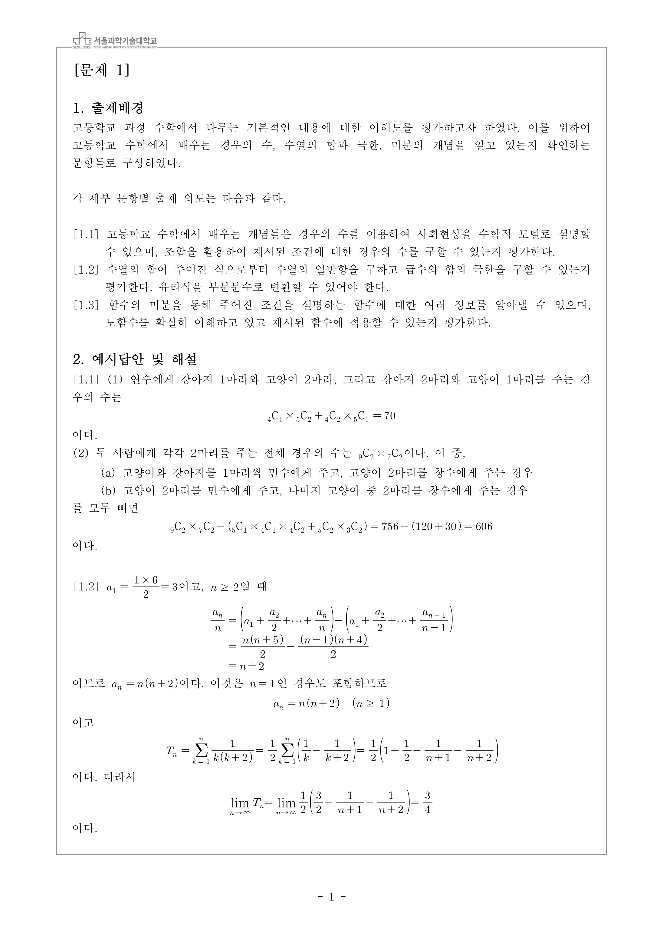 2023학년도 서울과학기술대학교 수시모집 논술전형고사 출제배경 및 해설 - 오전