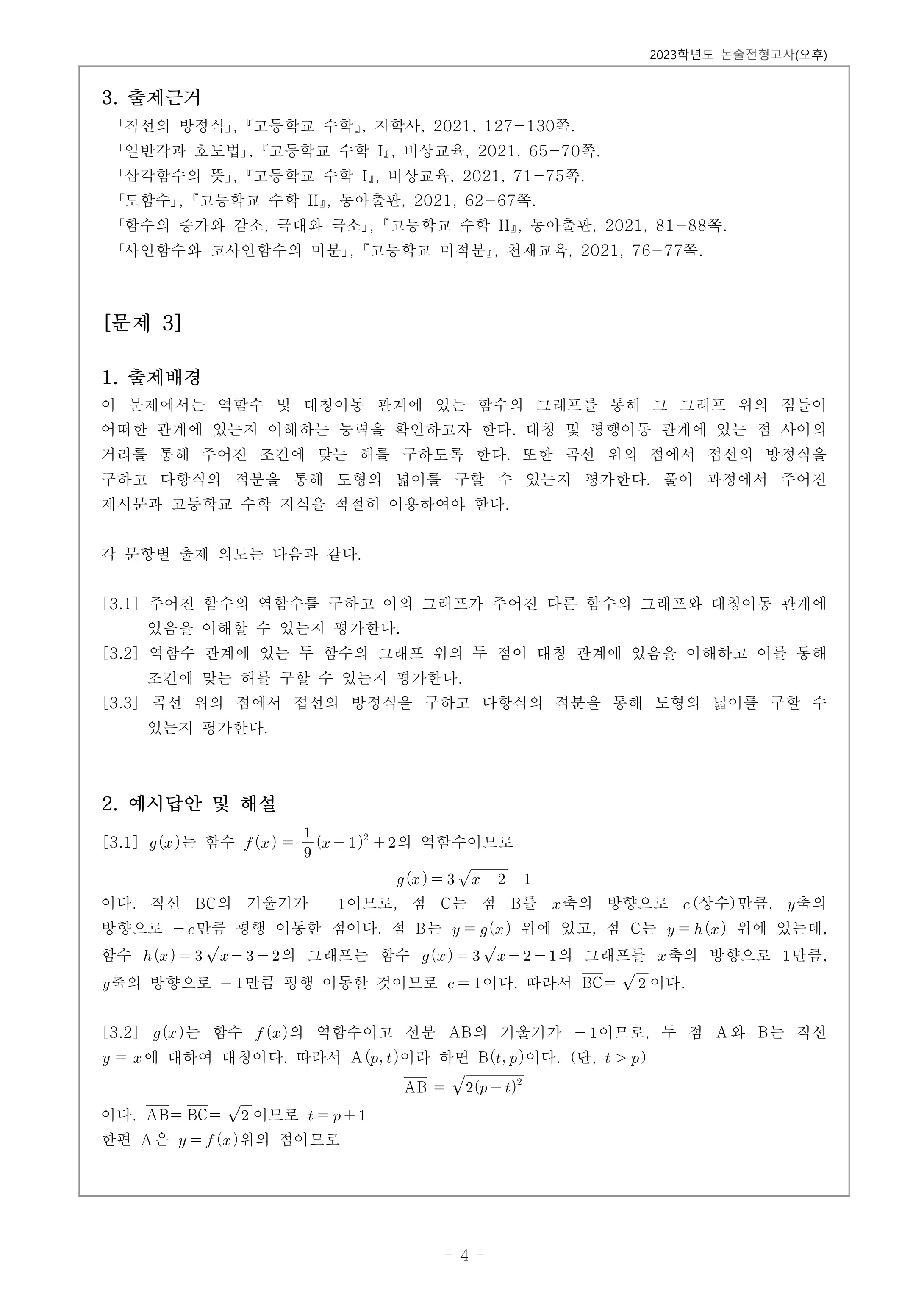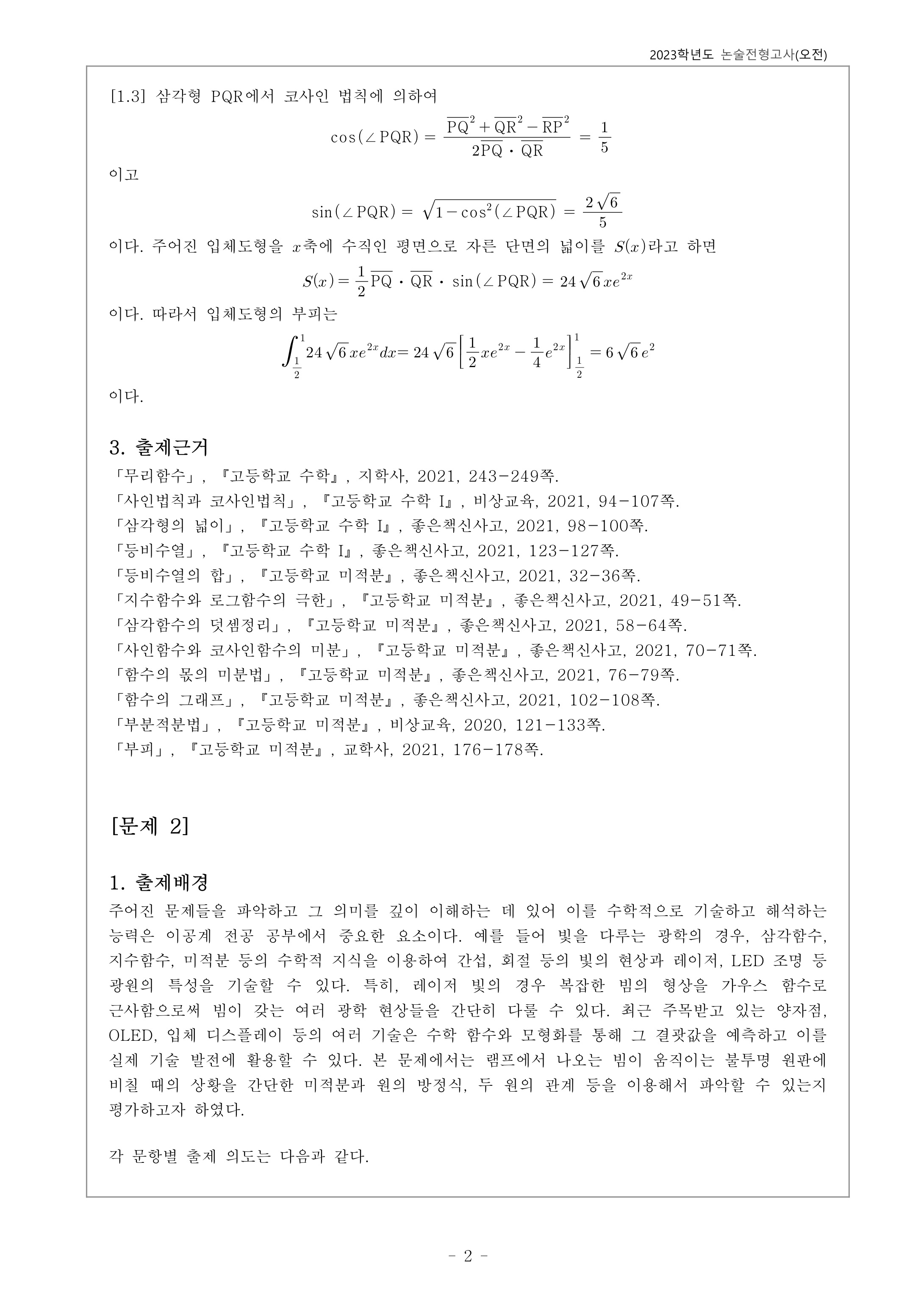2023학년도 서울과학기술대학교 수시모집 논술전형고사 추제배경 및 해설 - 오후