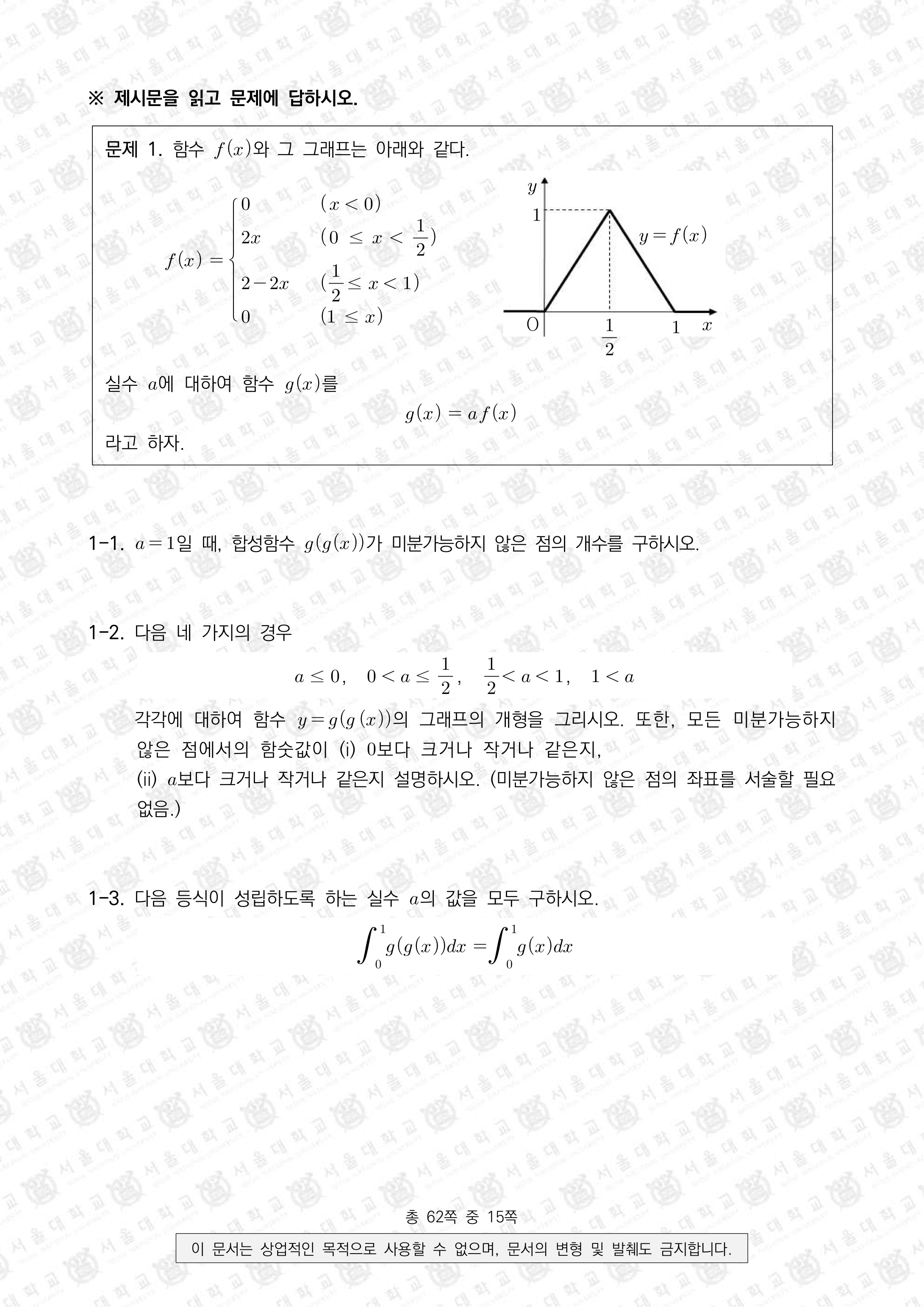 2023학년도 서울대 수시모집 일반전형 면접 및 구술고사 수학1_A 활용모집단위: