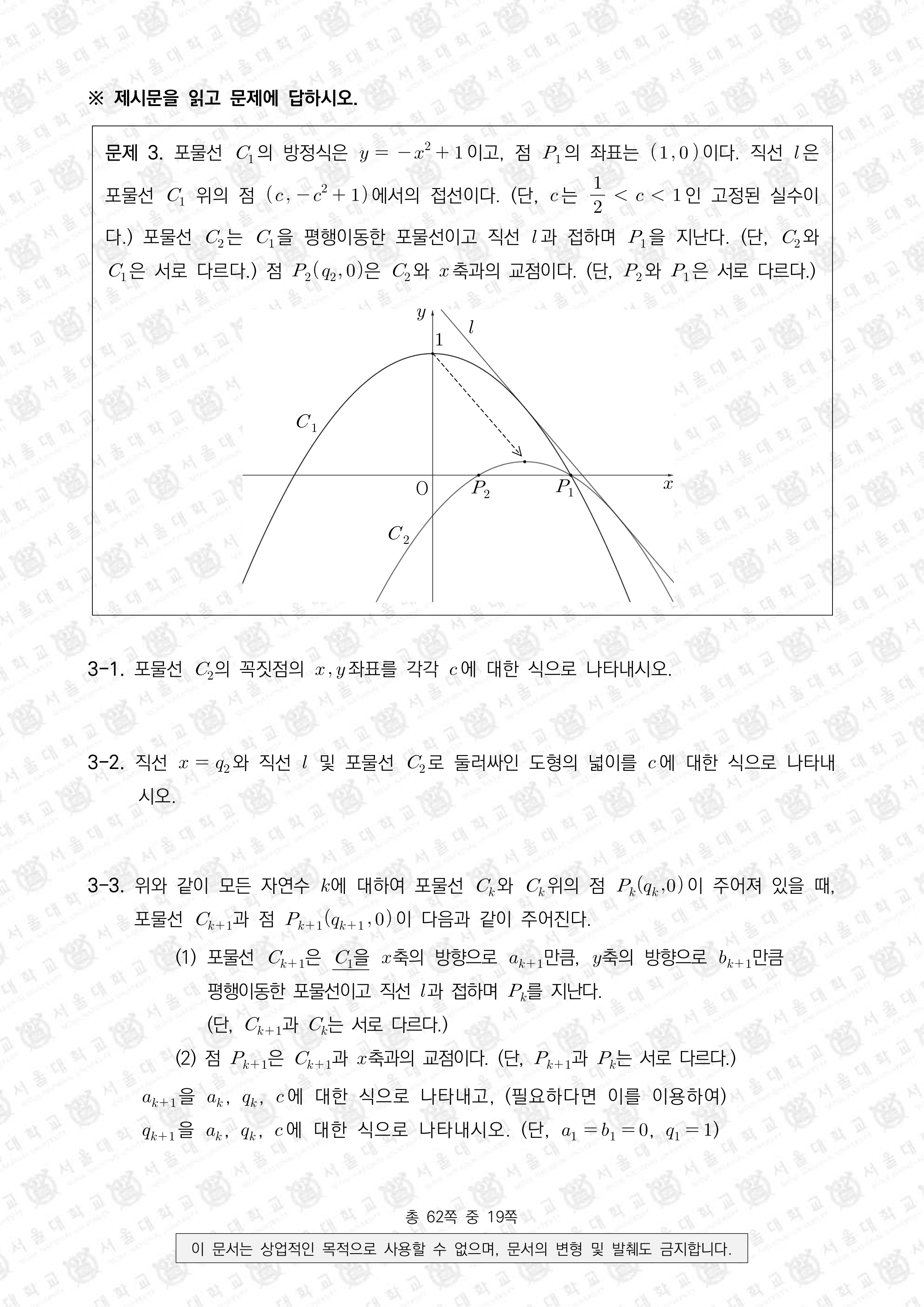 교육과정 출제 근거: 이차함수, 이차방정식, 포물선, 접선, 평행이동, 판별식, 정적분, 수열의 귀납적 정의