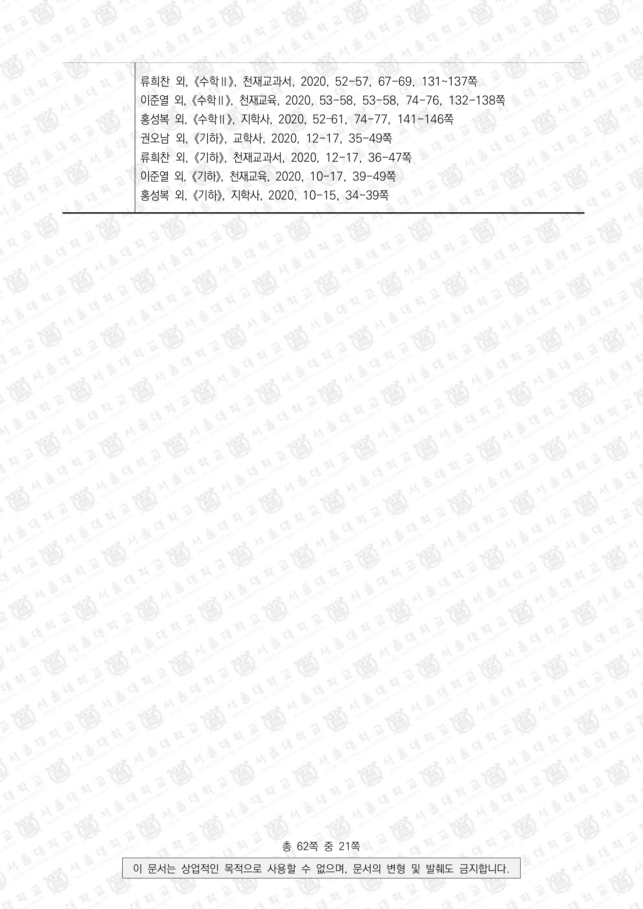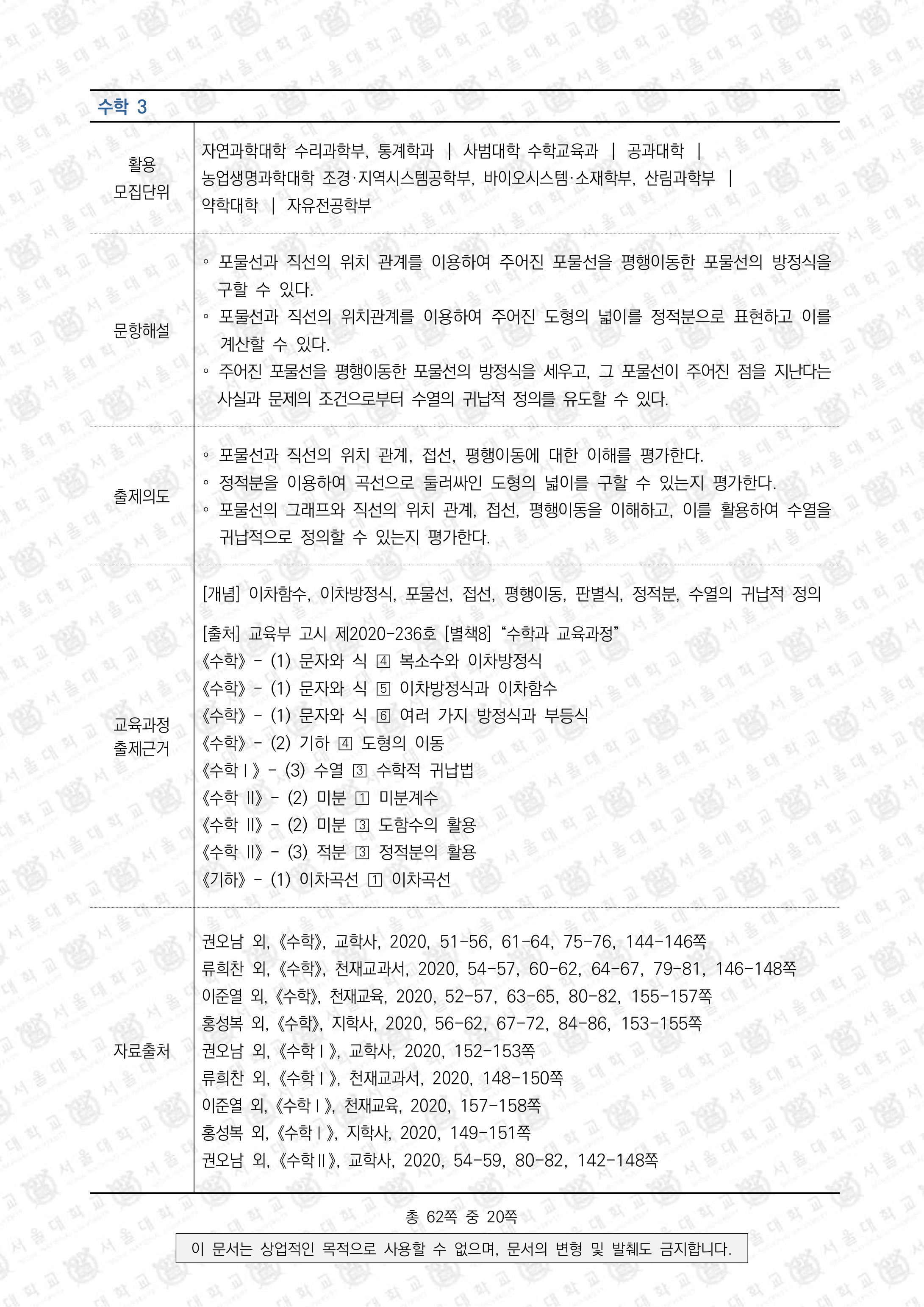 2023학년도 서울대 수시모집 일반전형 면접 및 구술고사 수학3 활용모집단위: