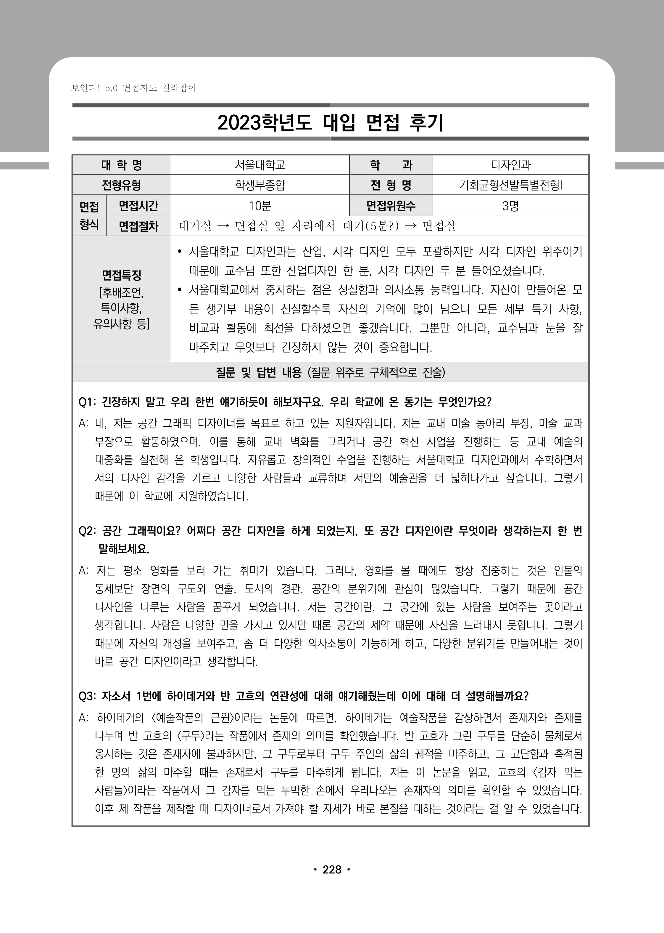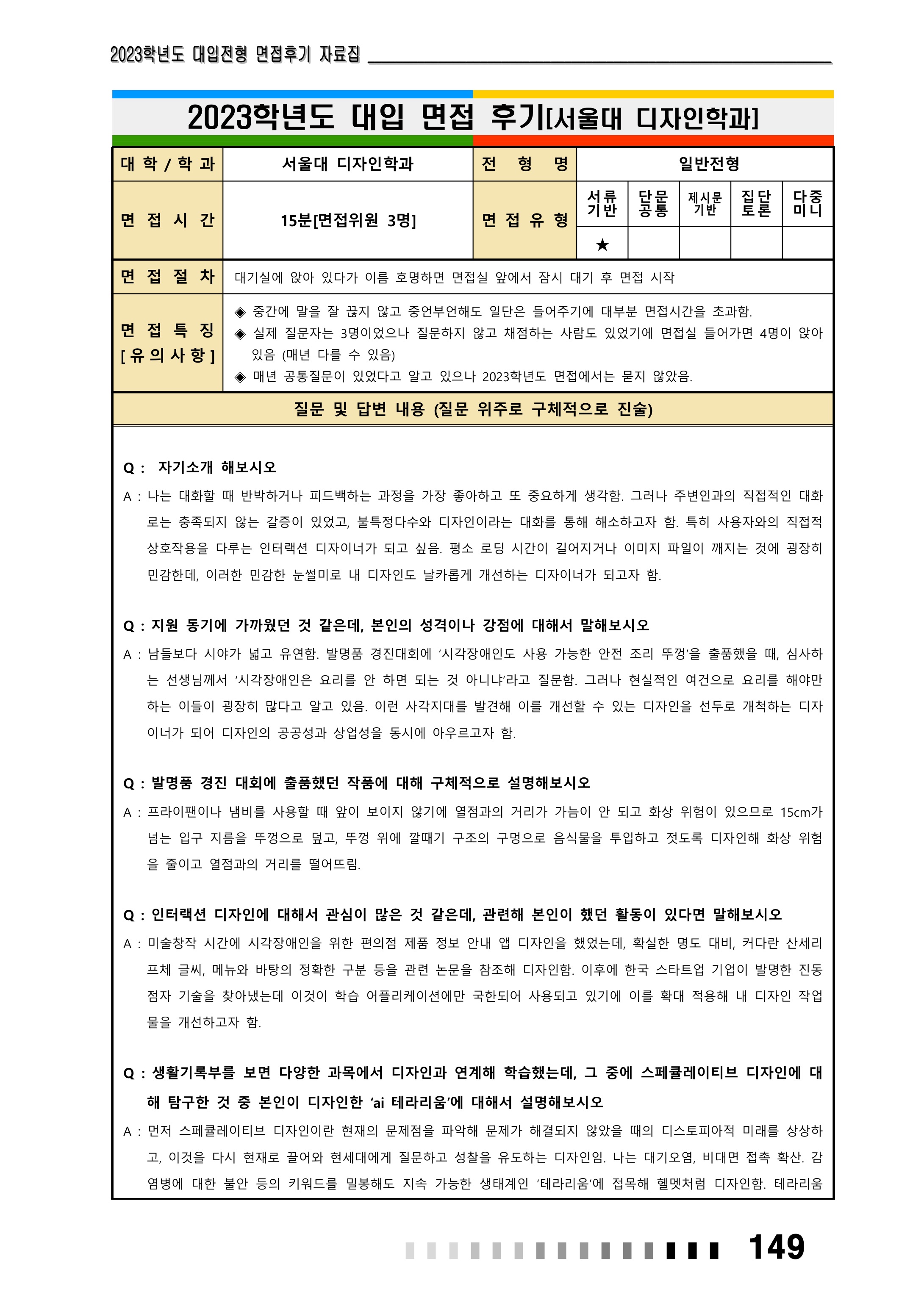 2023학년도 서울대학교 미술대학 면접 후기2 - 디자인과