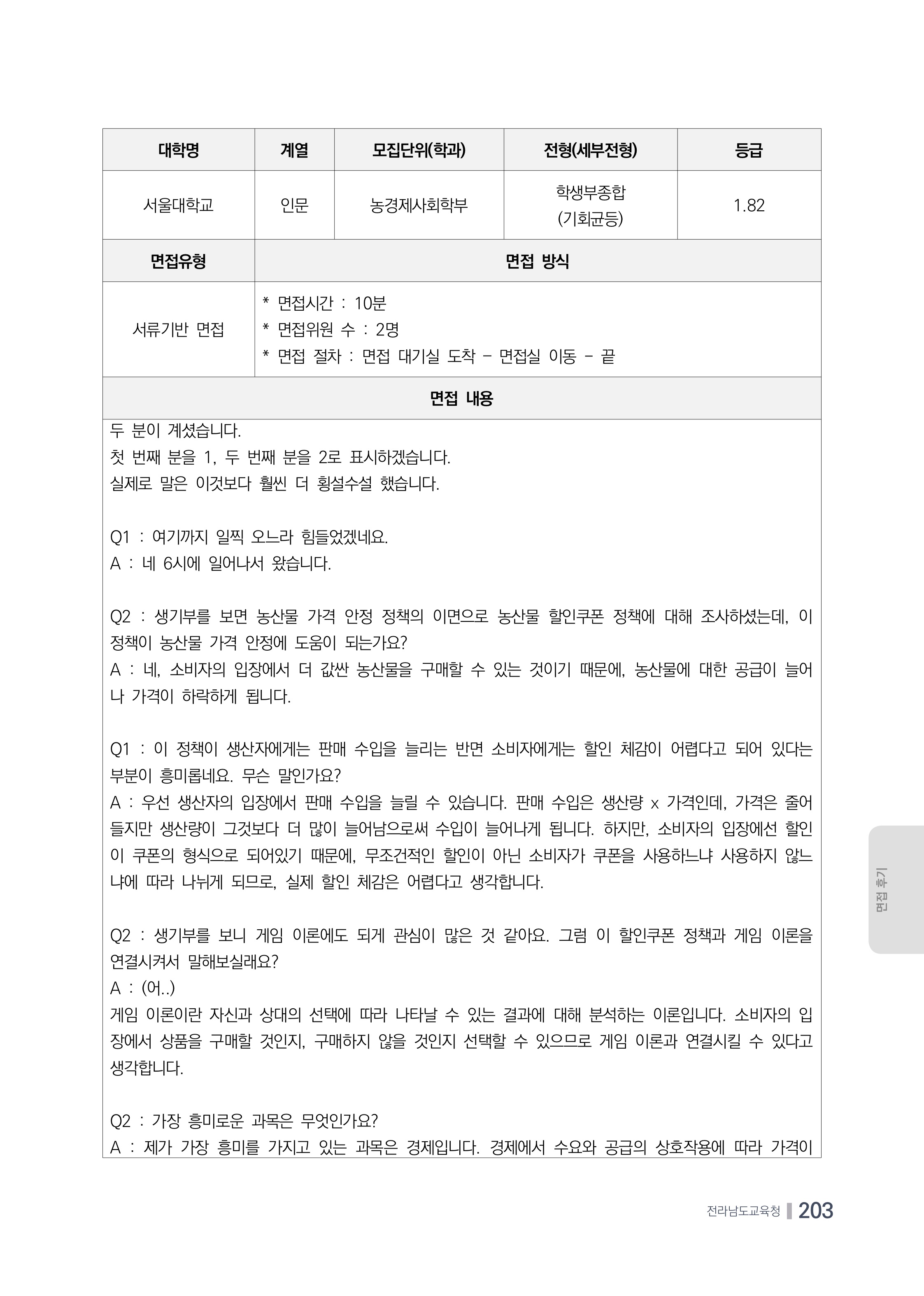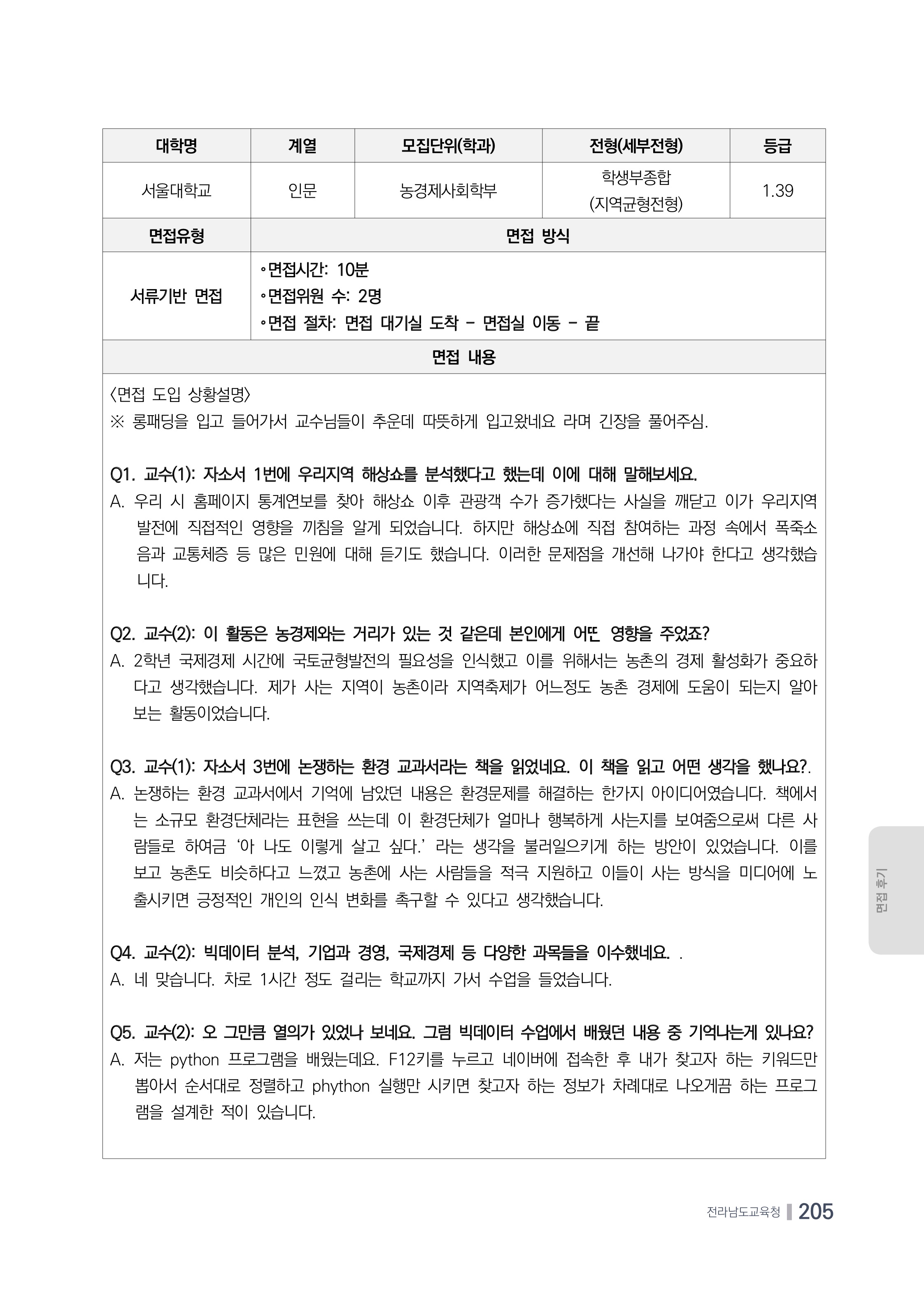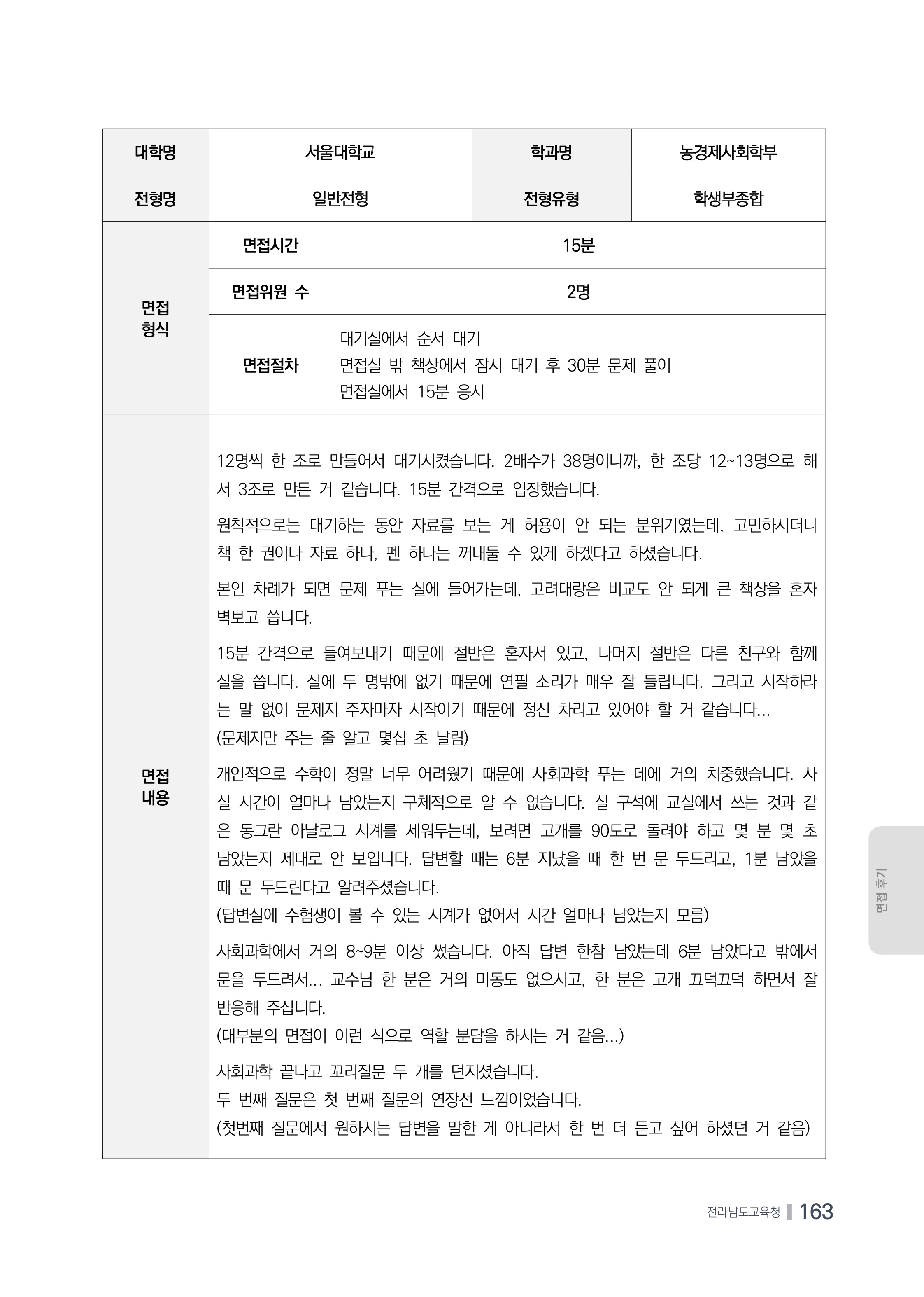 2023학년도 서울대학교 농업생명과학대학 면접 후기5 - 농경제사회학부