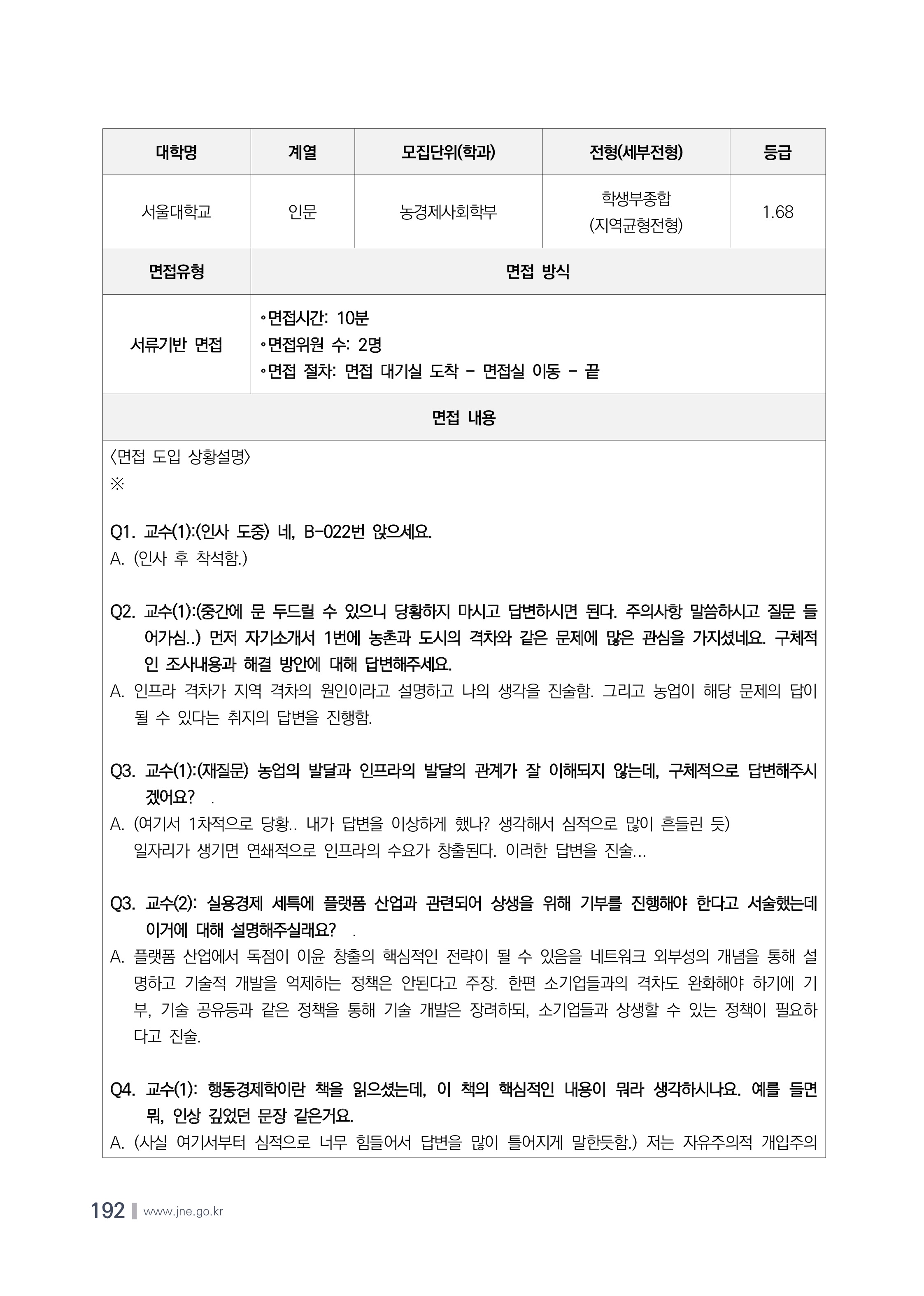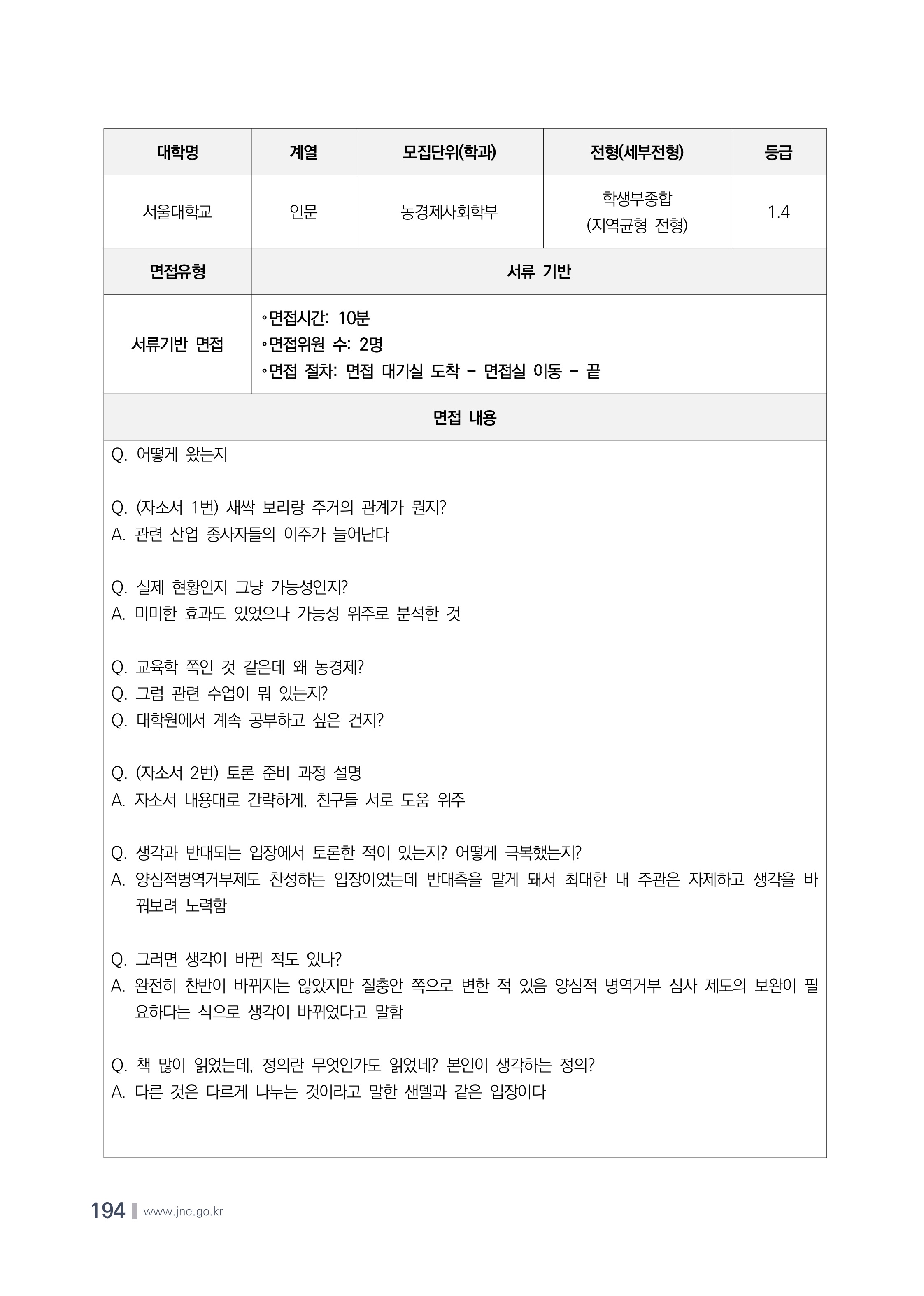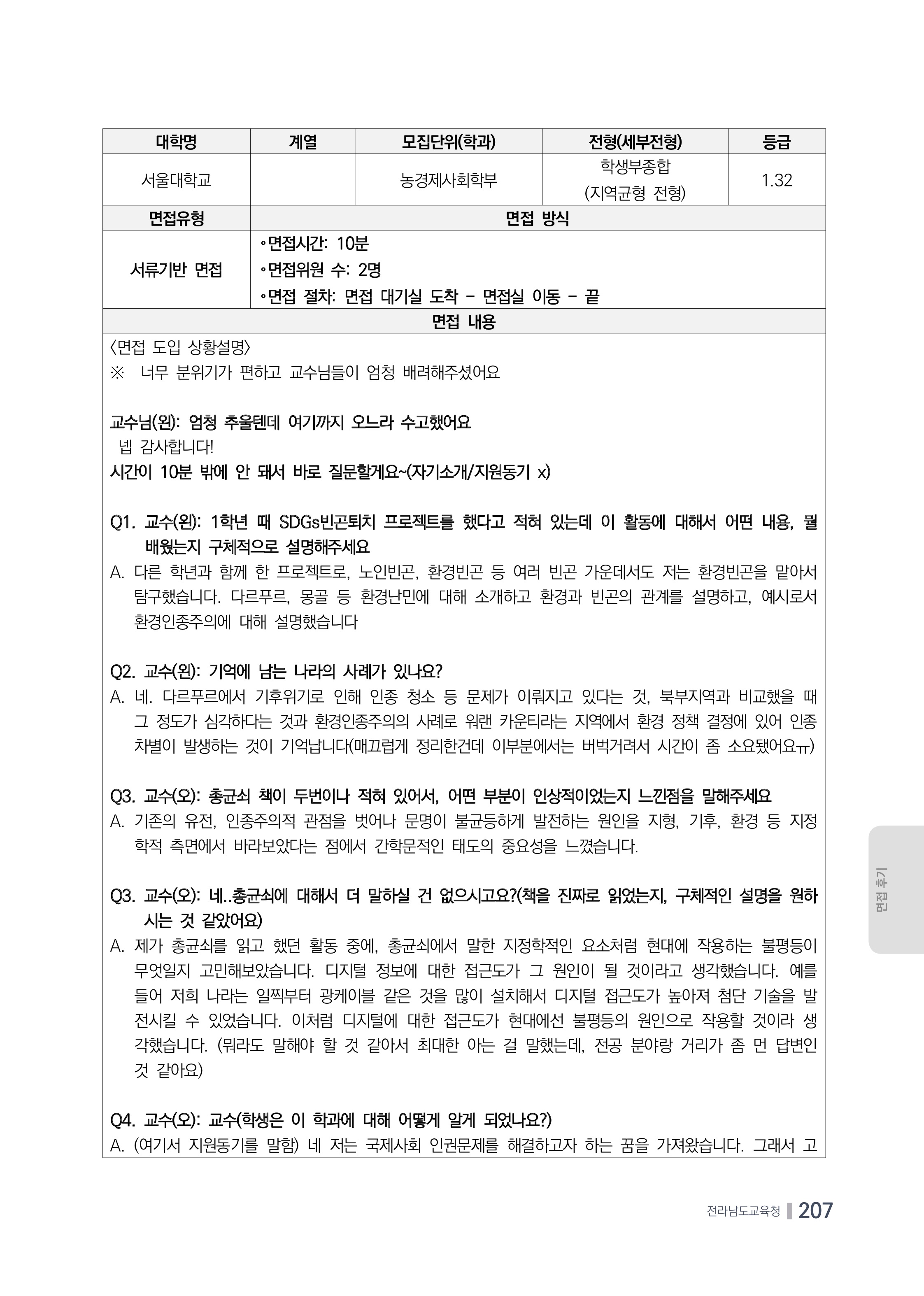 2023학년도 서울대학교 농업생명과학대학 면접 후기7 - 농경제사회학부