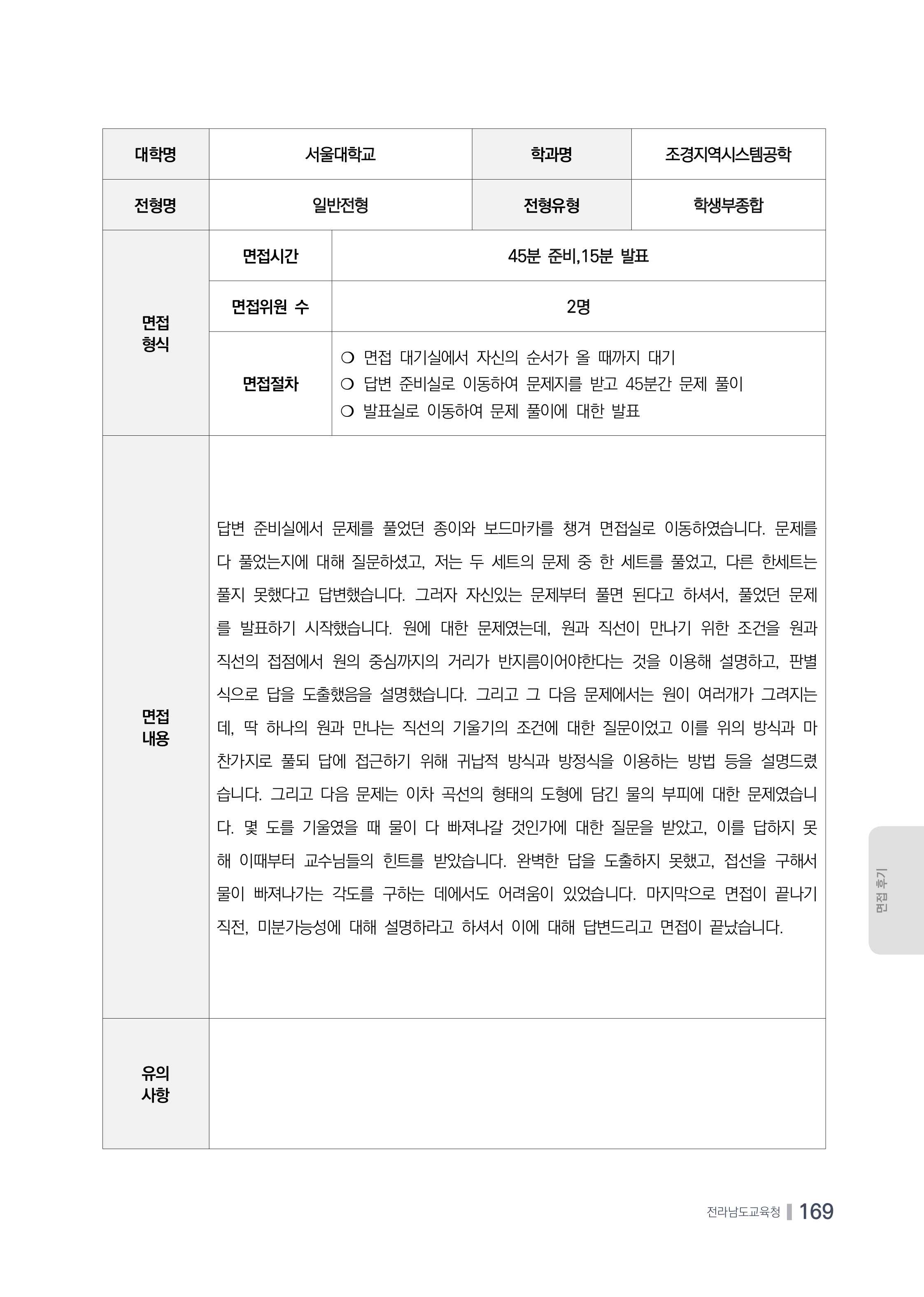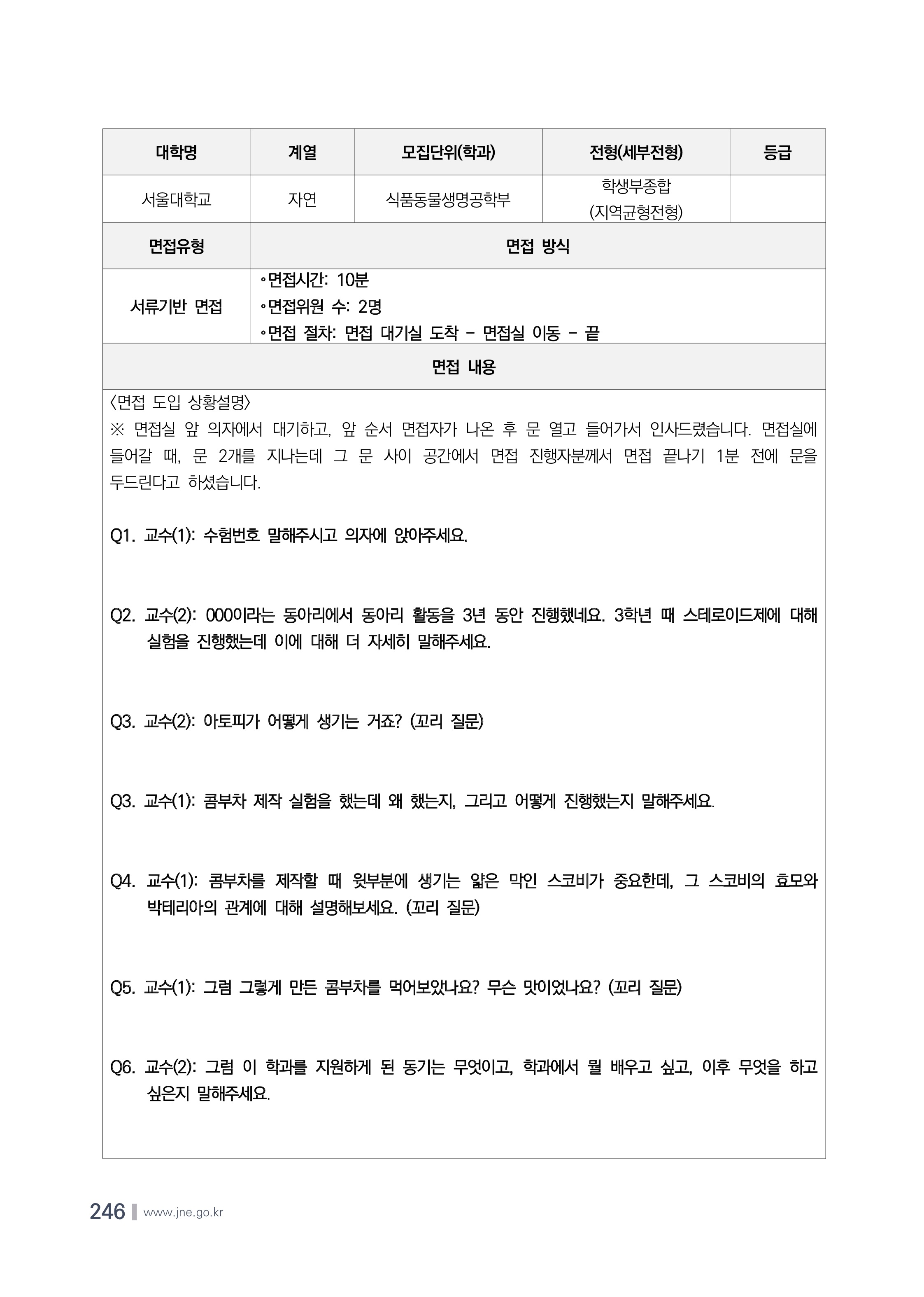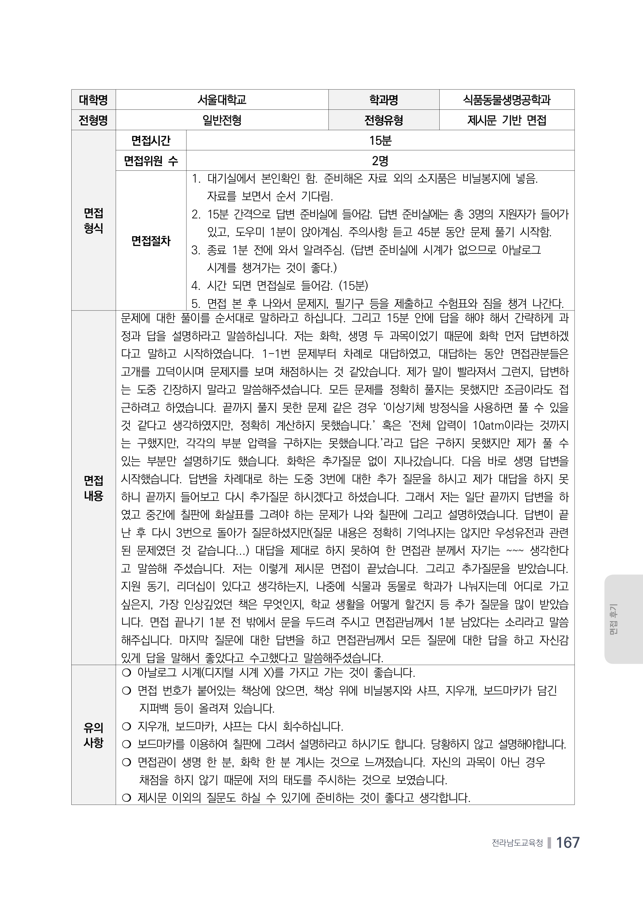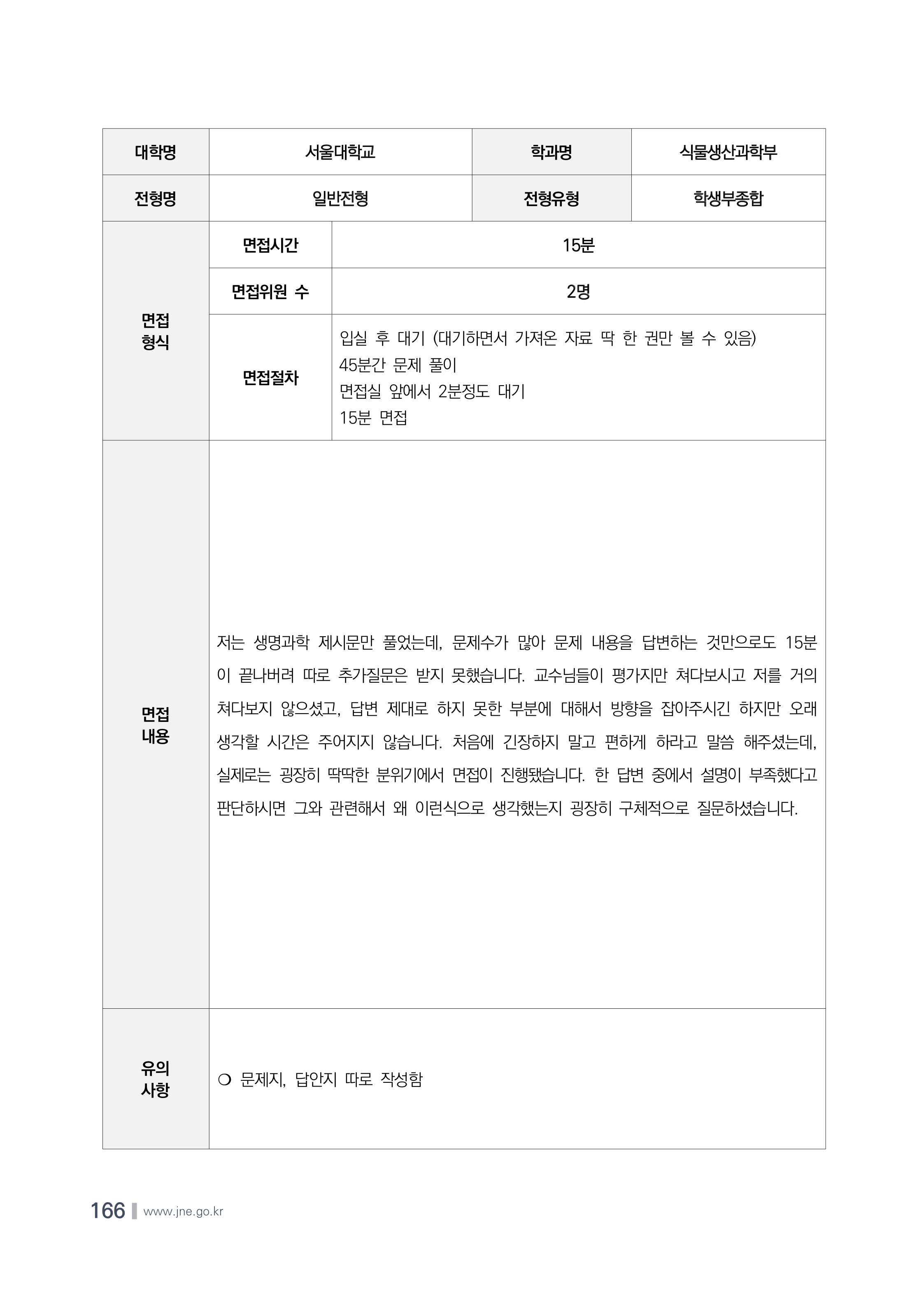 2023학년도 서울대학교 농업생명과학대학 면접 후기17 - 식품생산과학부