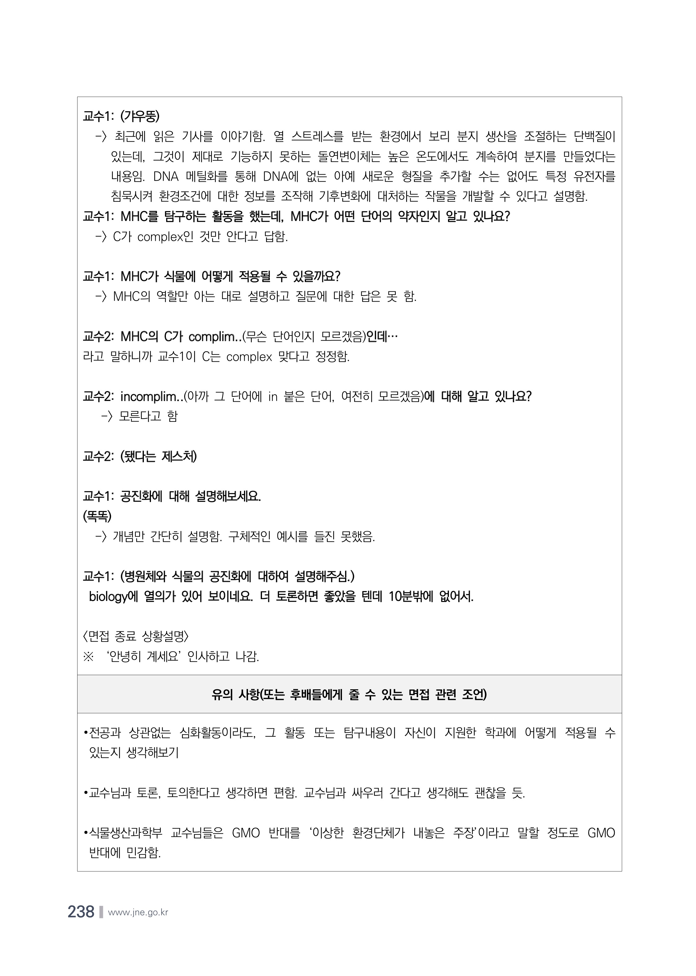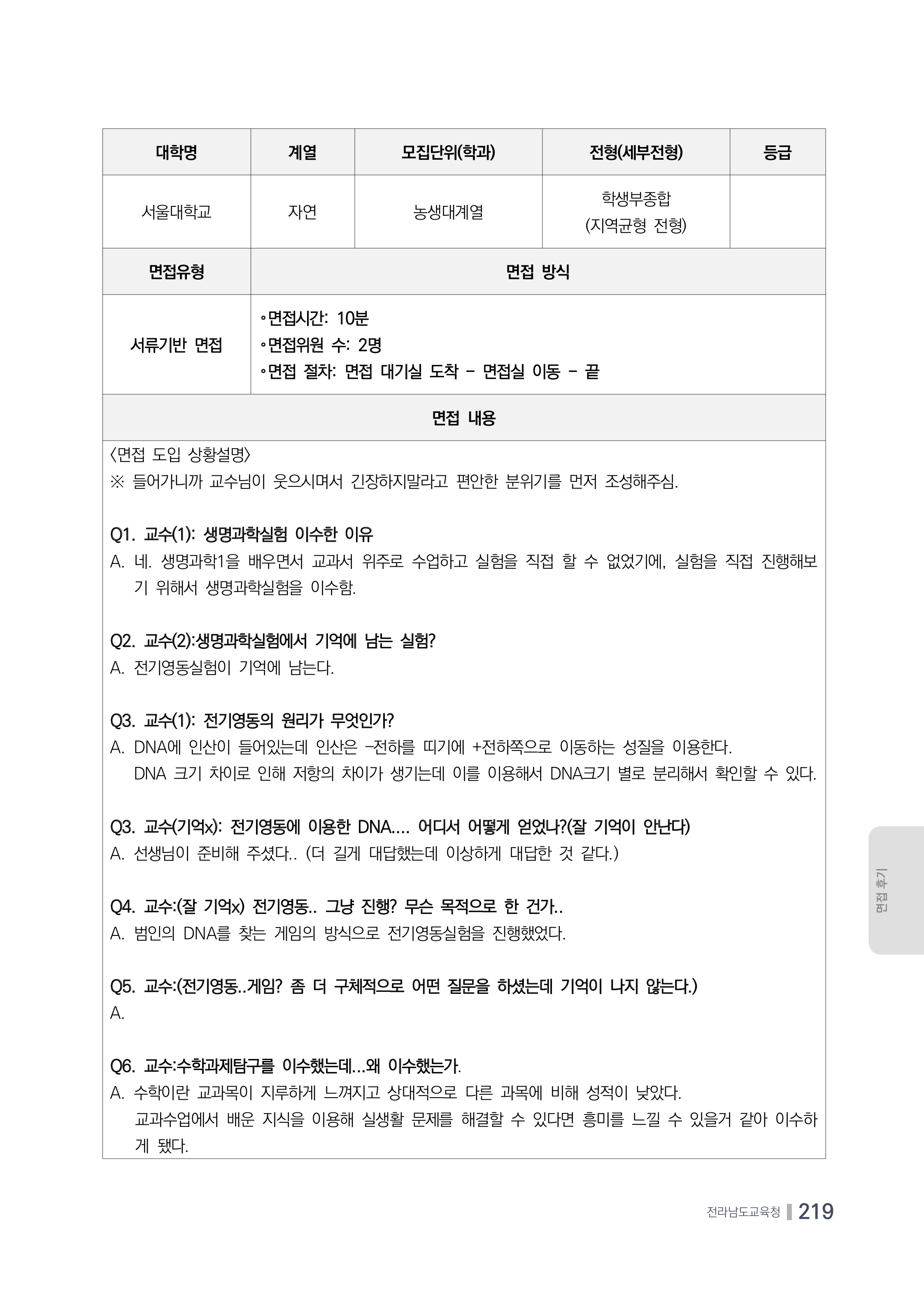 2023학년도 서울대학교 농업생명과학대학 면접 후기15 - 식품동물생명공학부