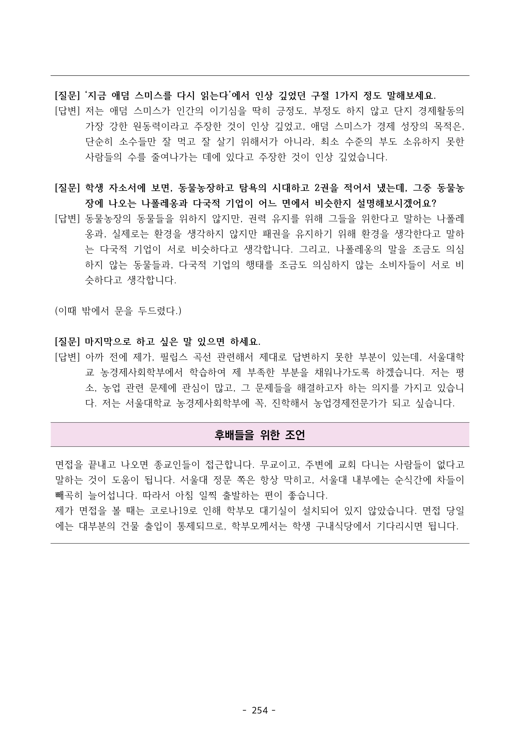 2023학년도 서울대학교 농업생명과학대학 면접 후기4 - 농경제사회학부