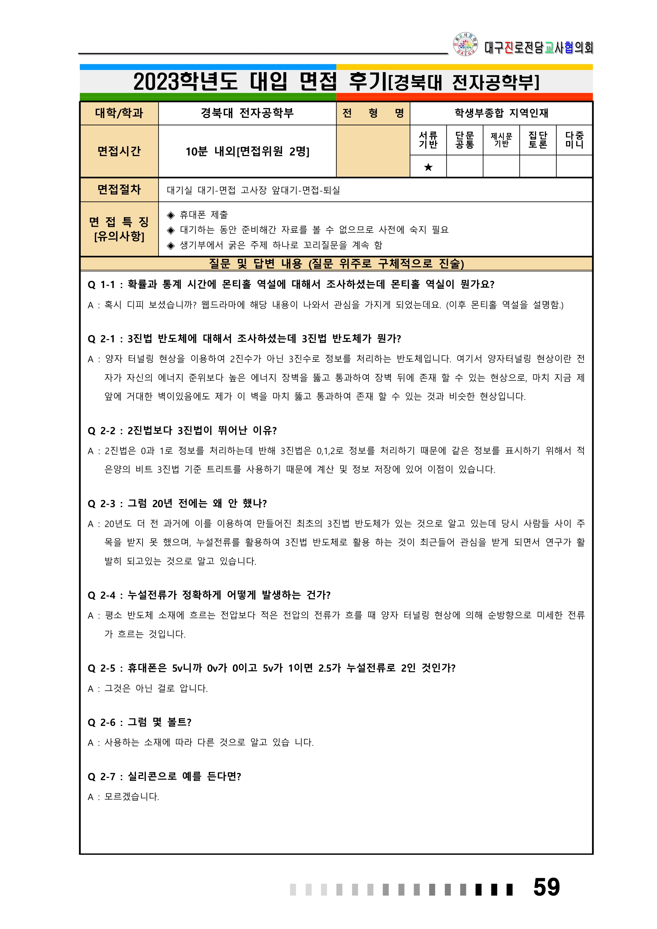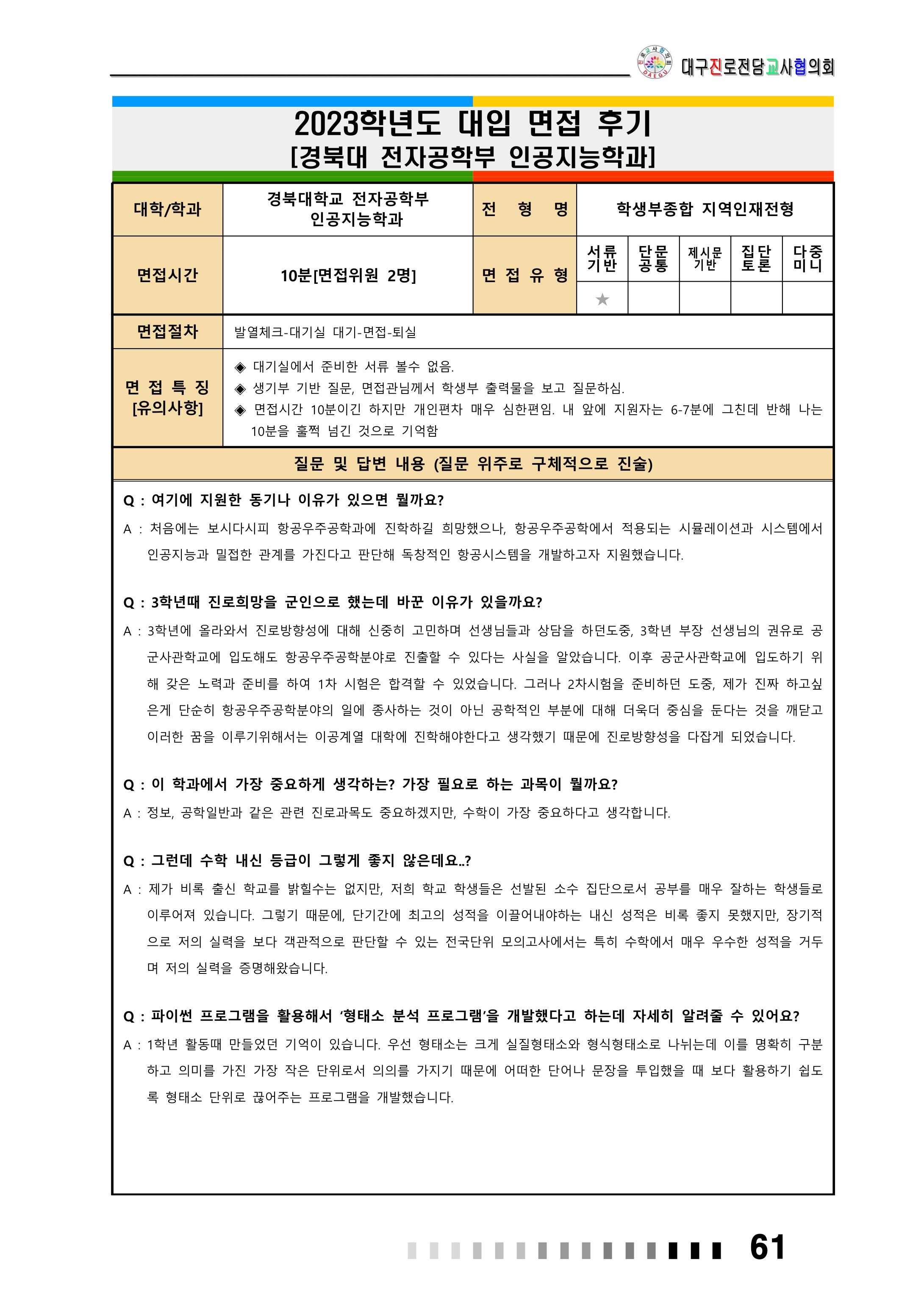 2023학년도 경북대학교 면접 후기32 - 전자공학부