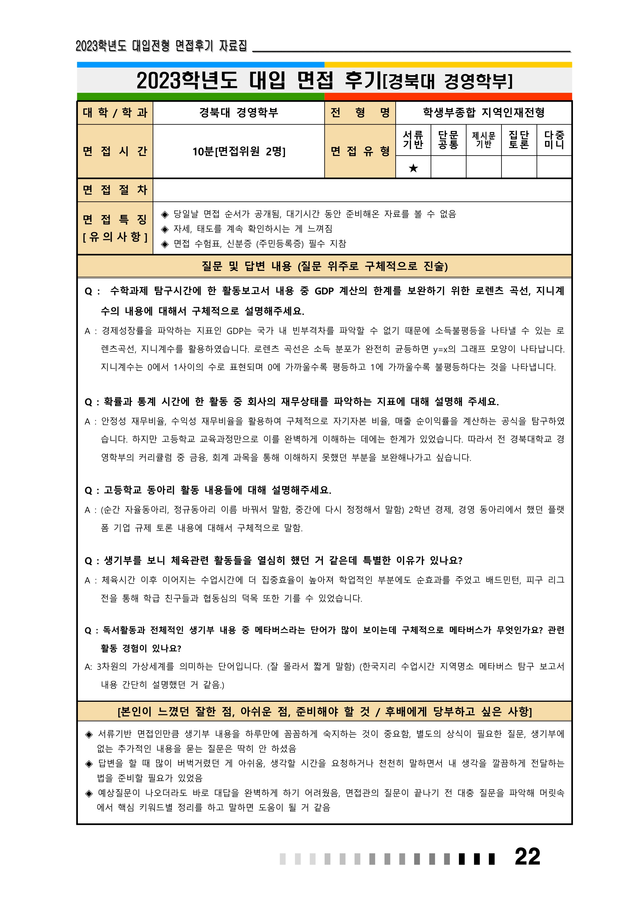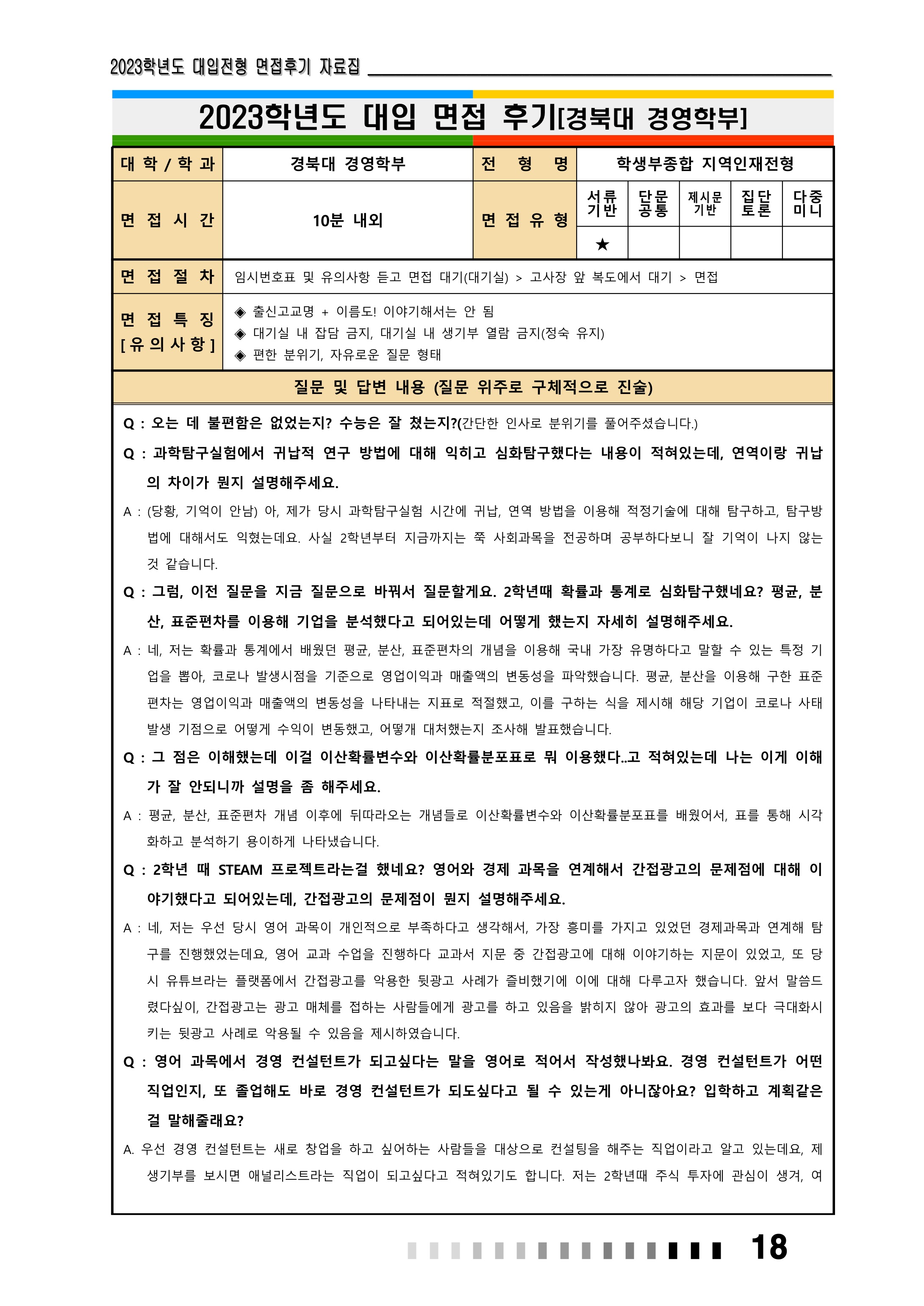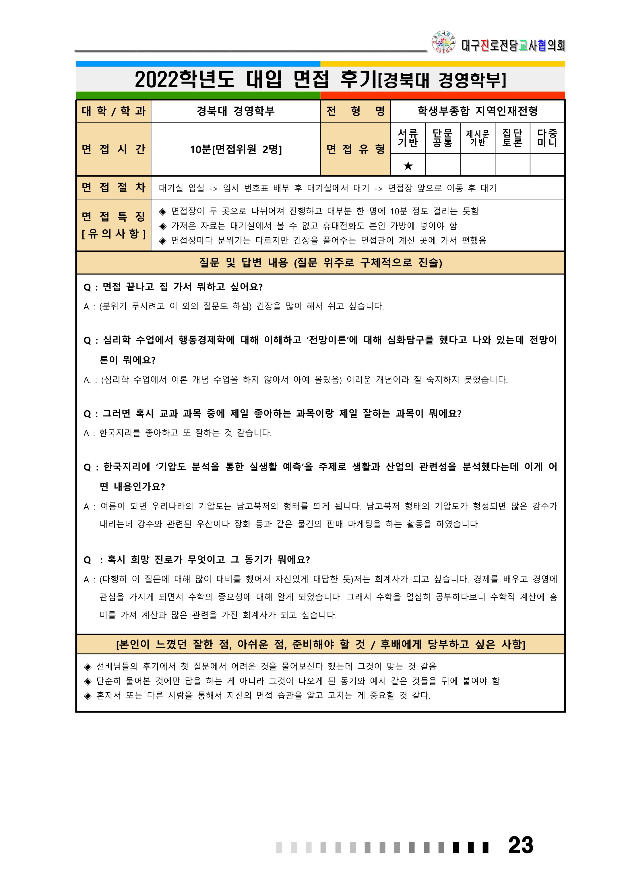 2023학년도 경북대학교 면접 후기3 - 경영학부