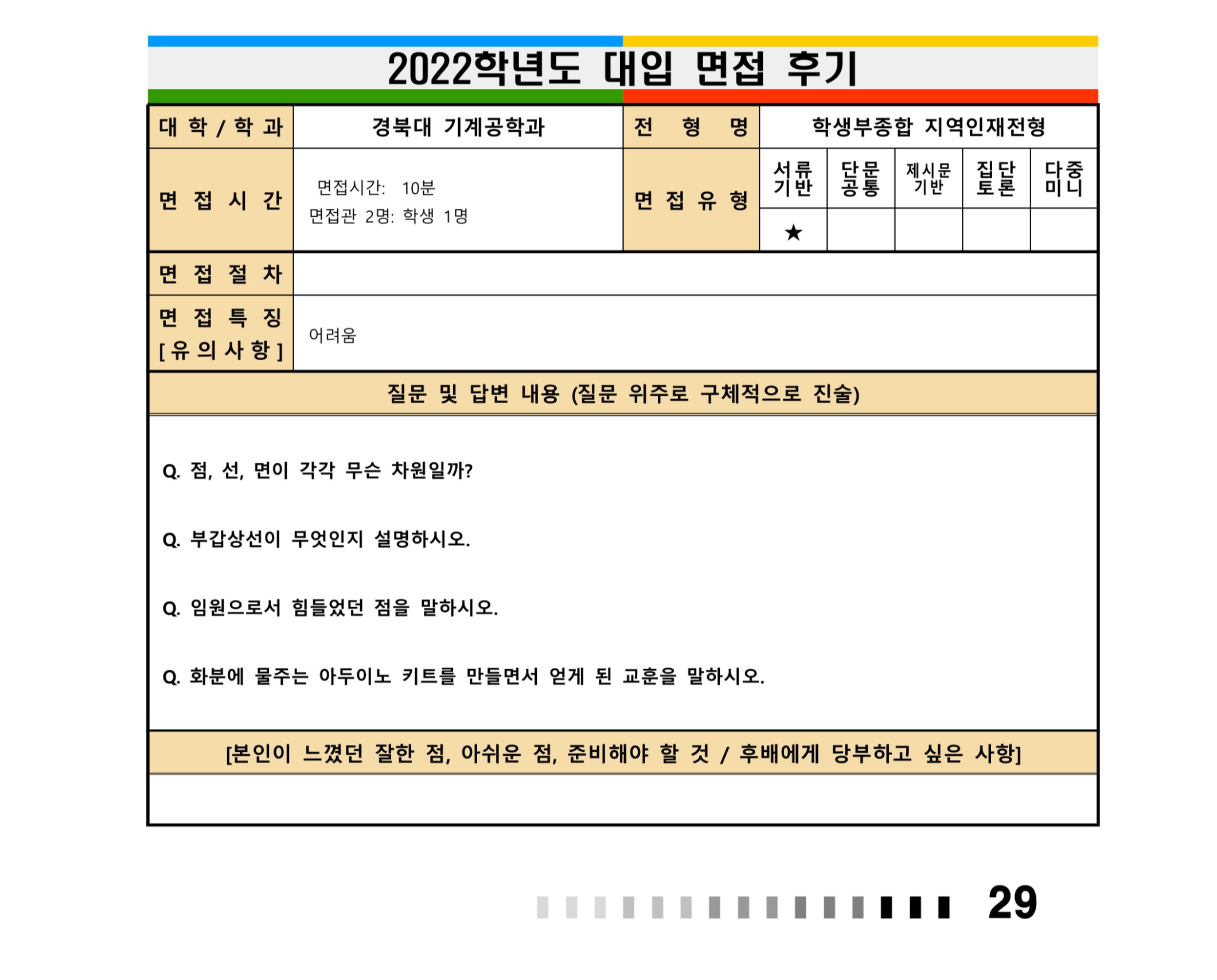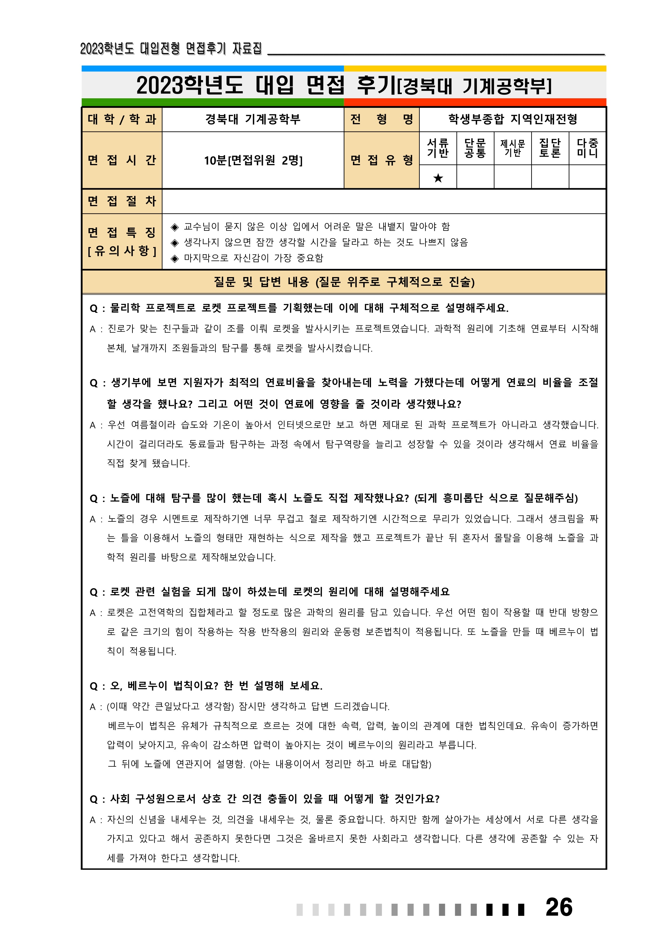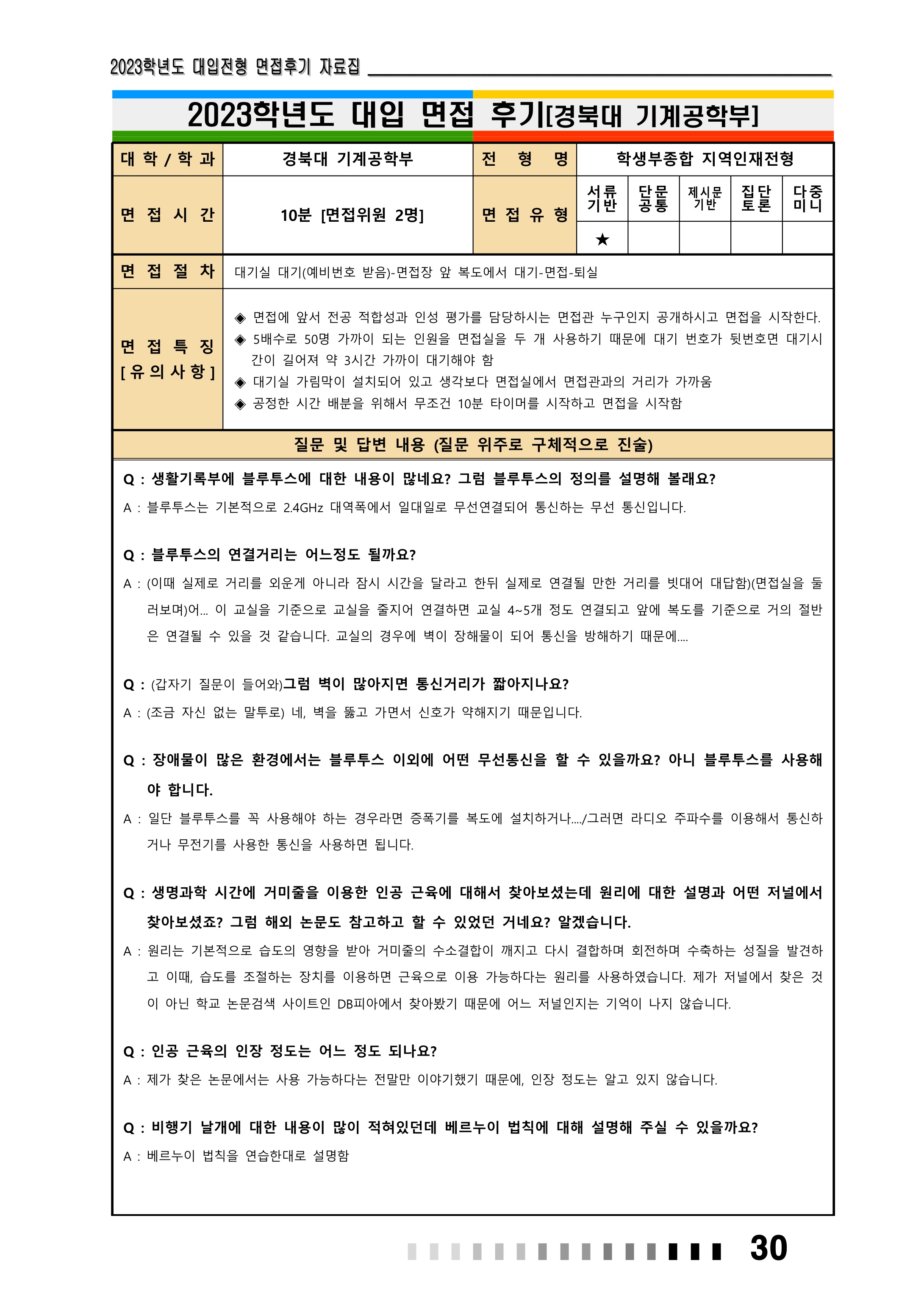 2023학년도 경북대학교 면접 후기9 - 기계공학부