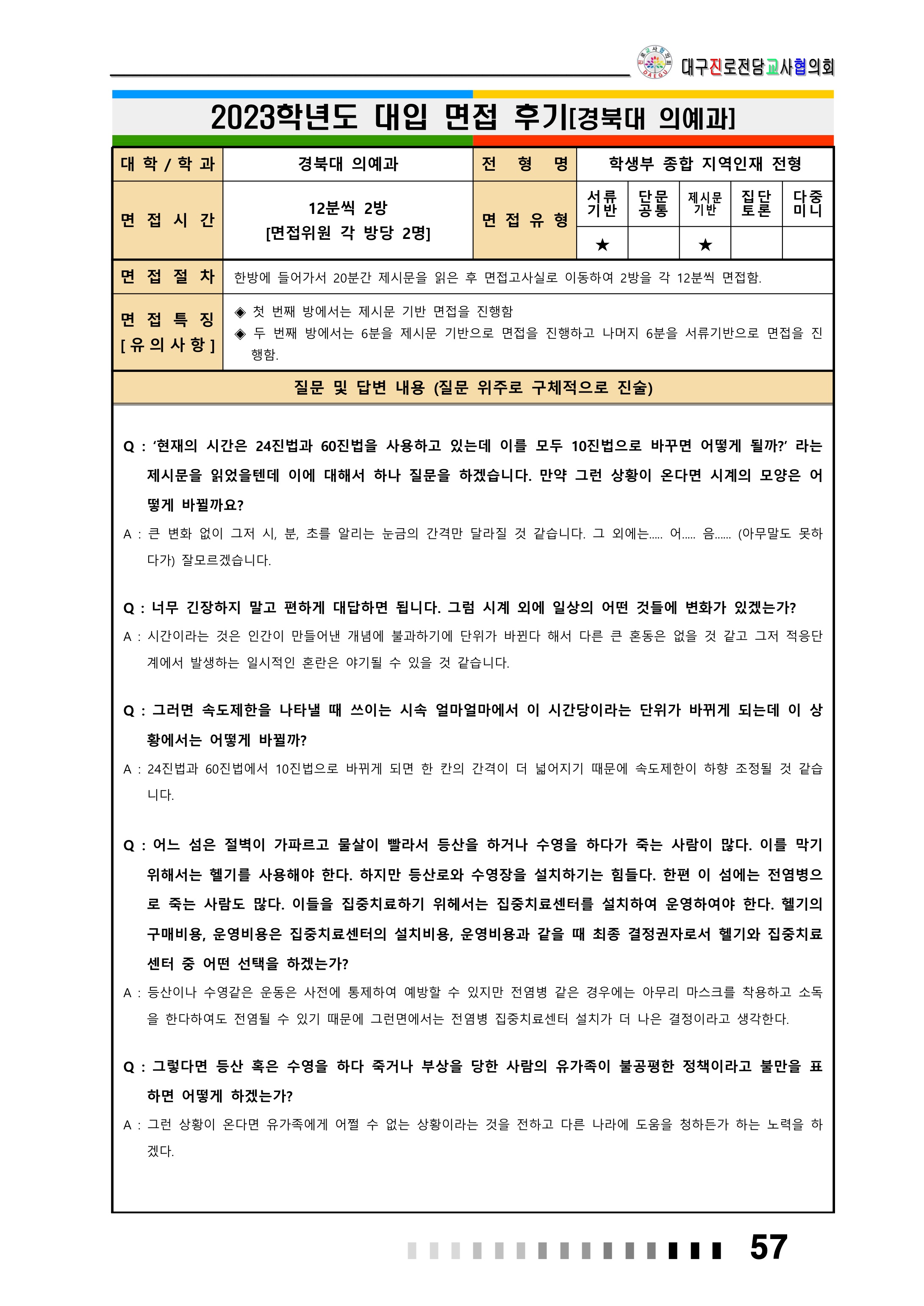 2023학년도 경북대학교 면접 후기29 - 의예과