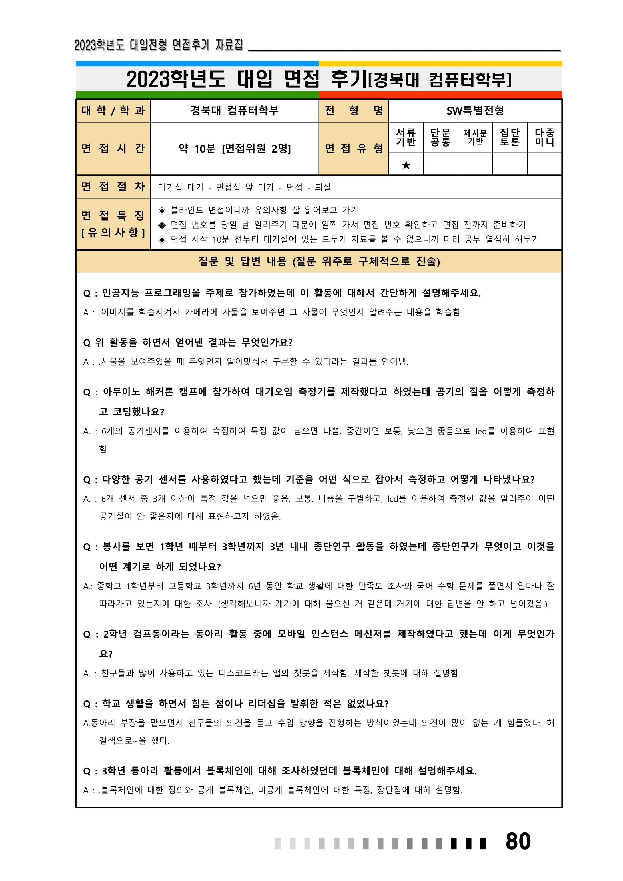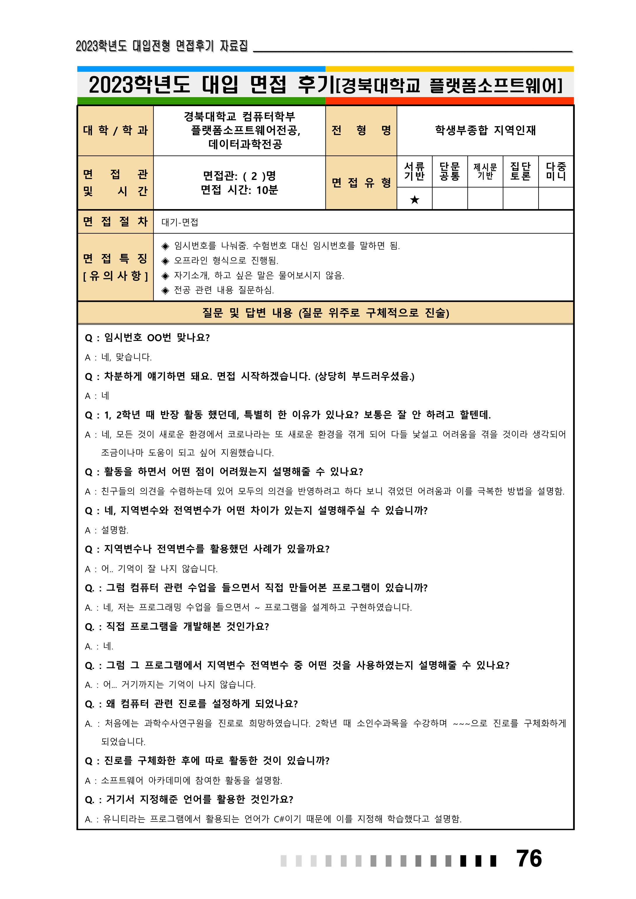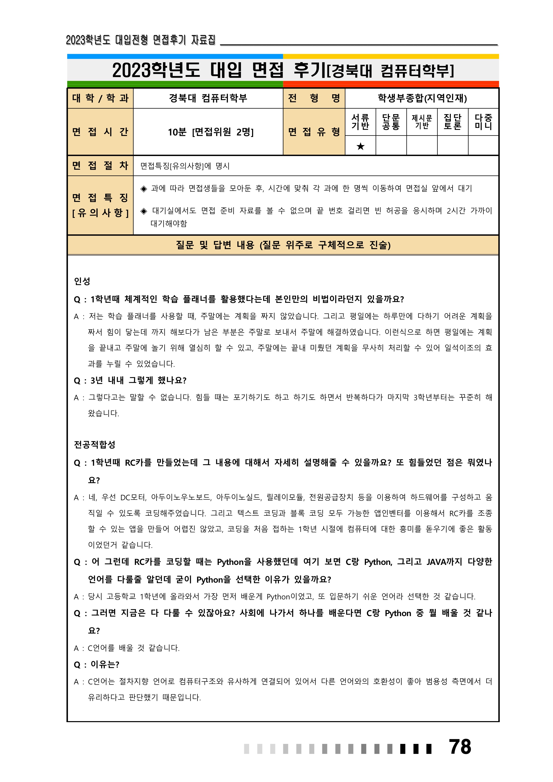 2023학년도 경북대학교 면접 후기38 - 컴퓨터학부