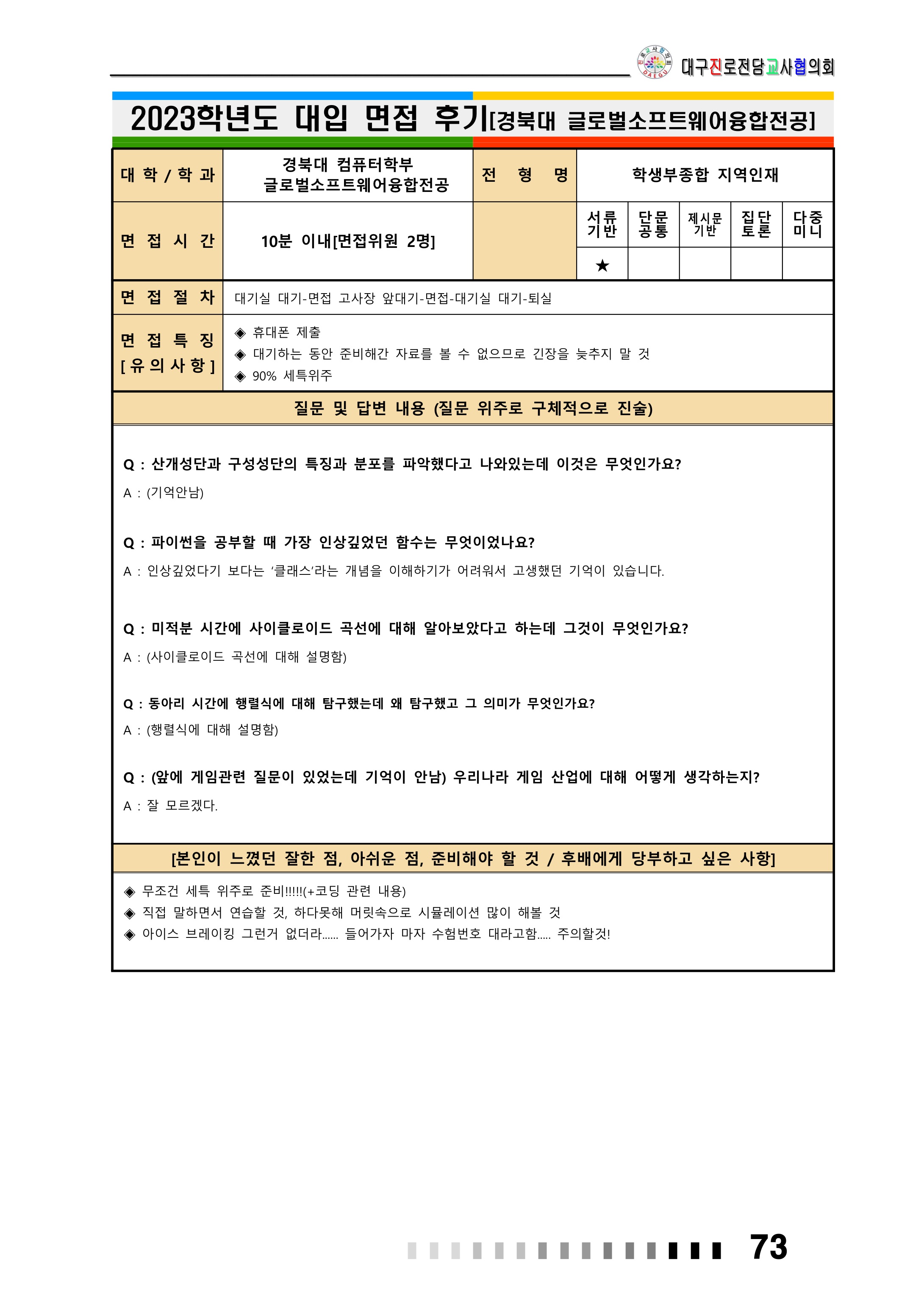 2023학년도 경북대학교 면접 후기40 - 컴퓨터학부