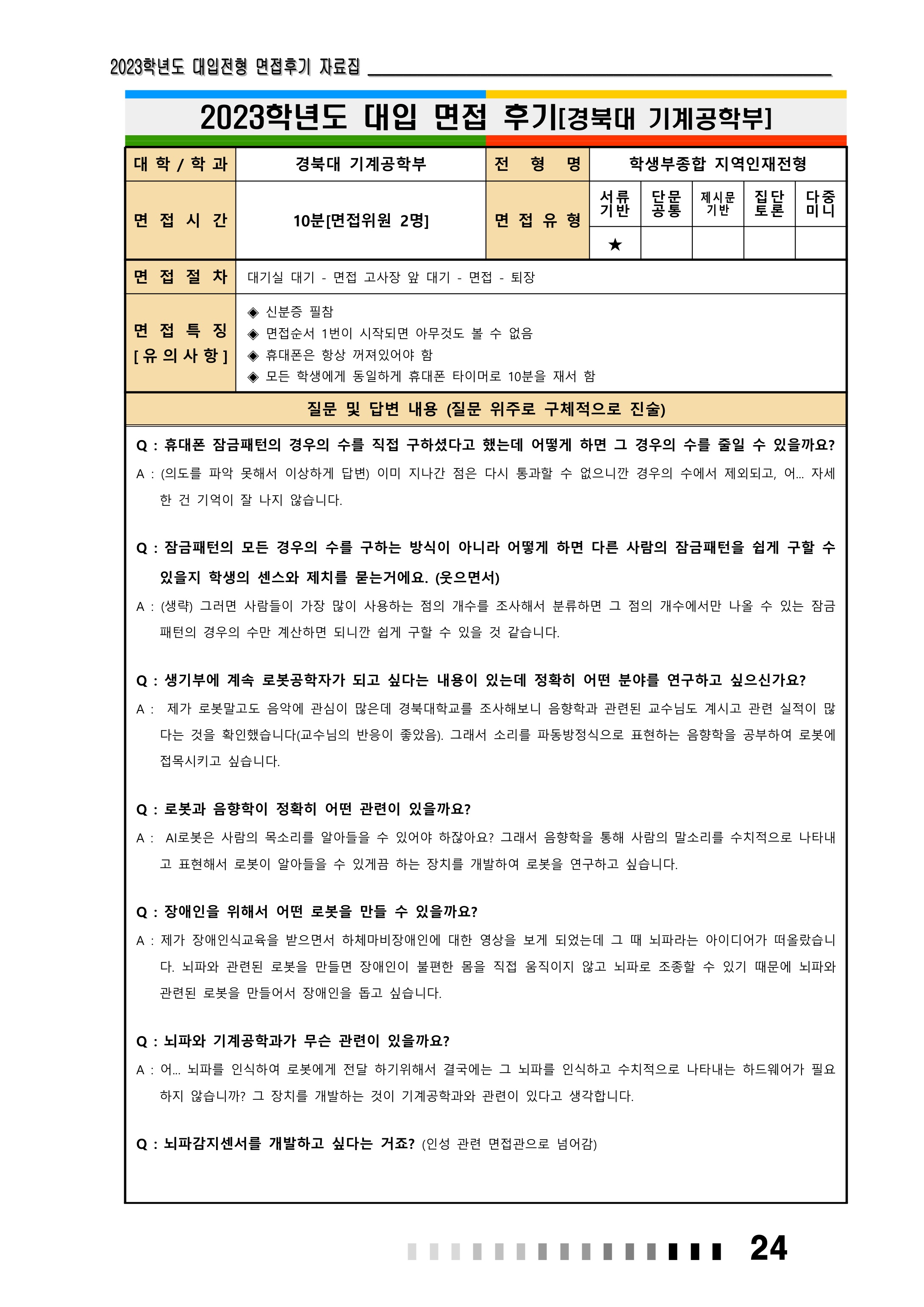 2023학년도 경북대학교 면접 후기8 - 기계공학부