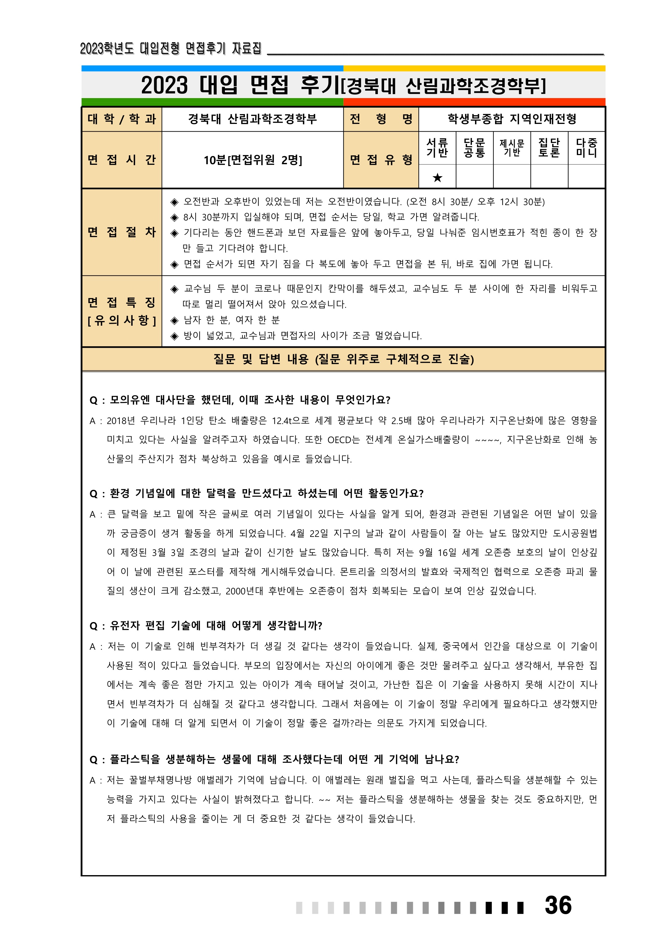 2023학년도 경북대학교 면접 후기19 - 산림과학조경학부