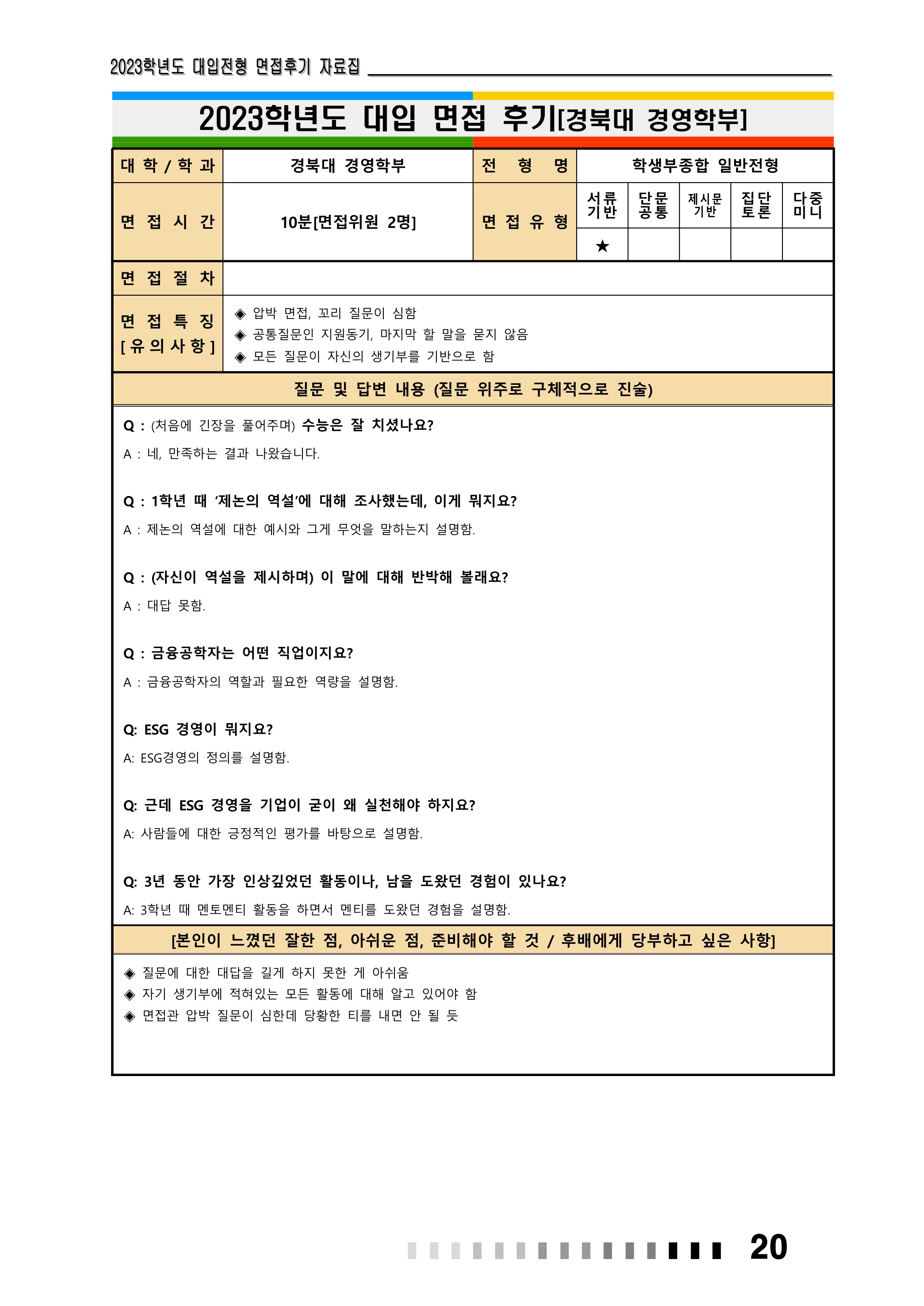 2023학년도 경북대학교 면접 후기7 - 경영학부 2023학년도 경북대학교 면접 후기8 - 기계공학부