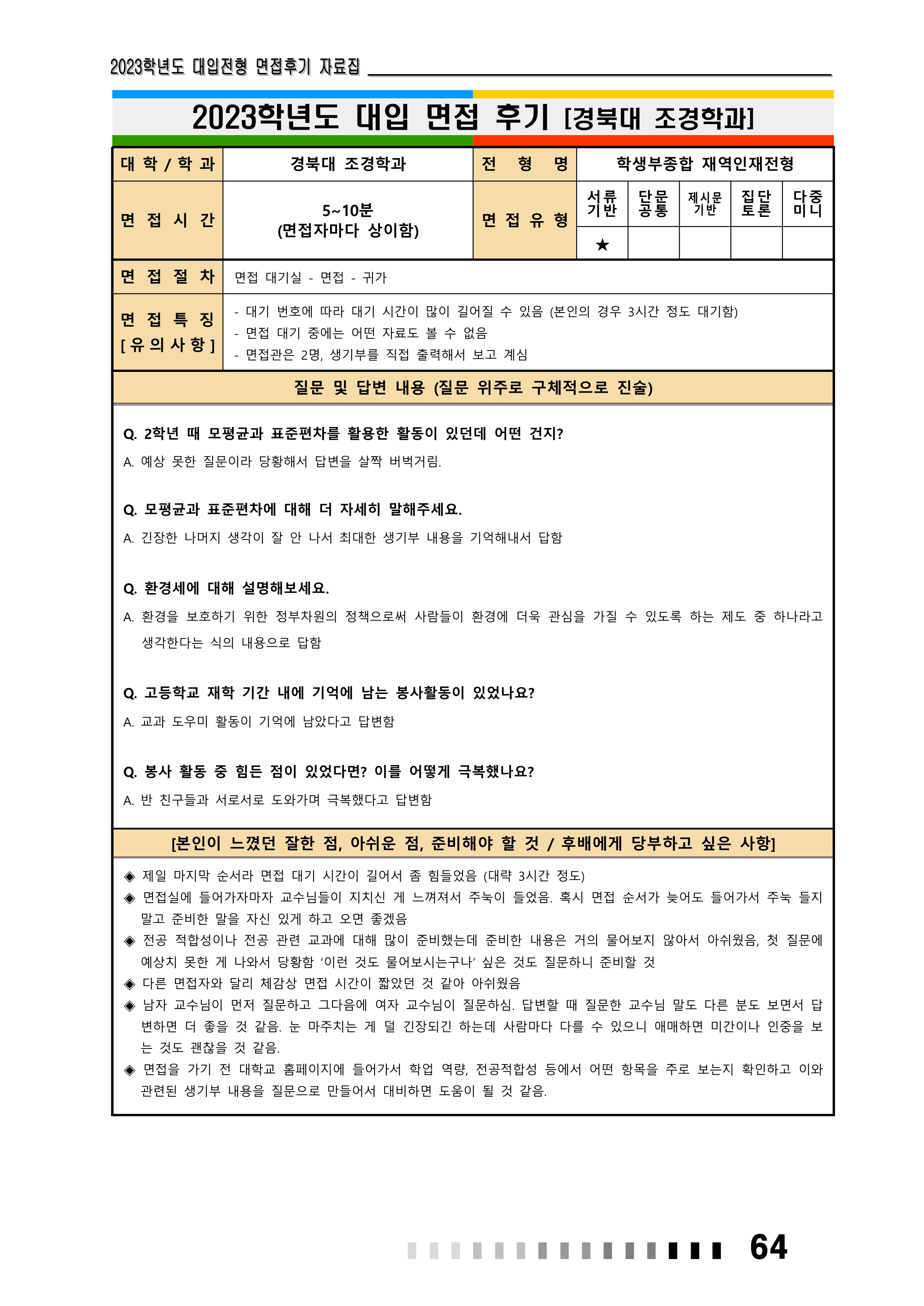 2023학년도 경북대학교 면접 후기33 - 조경학과 2023학년도 경북대학교 면접 후기34 - 지구시스템과학부