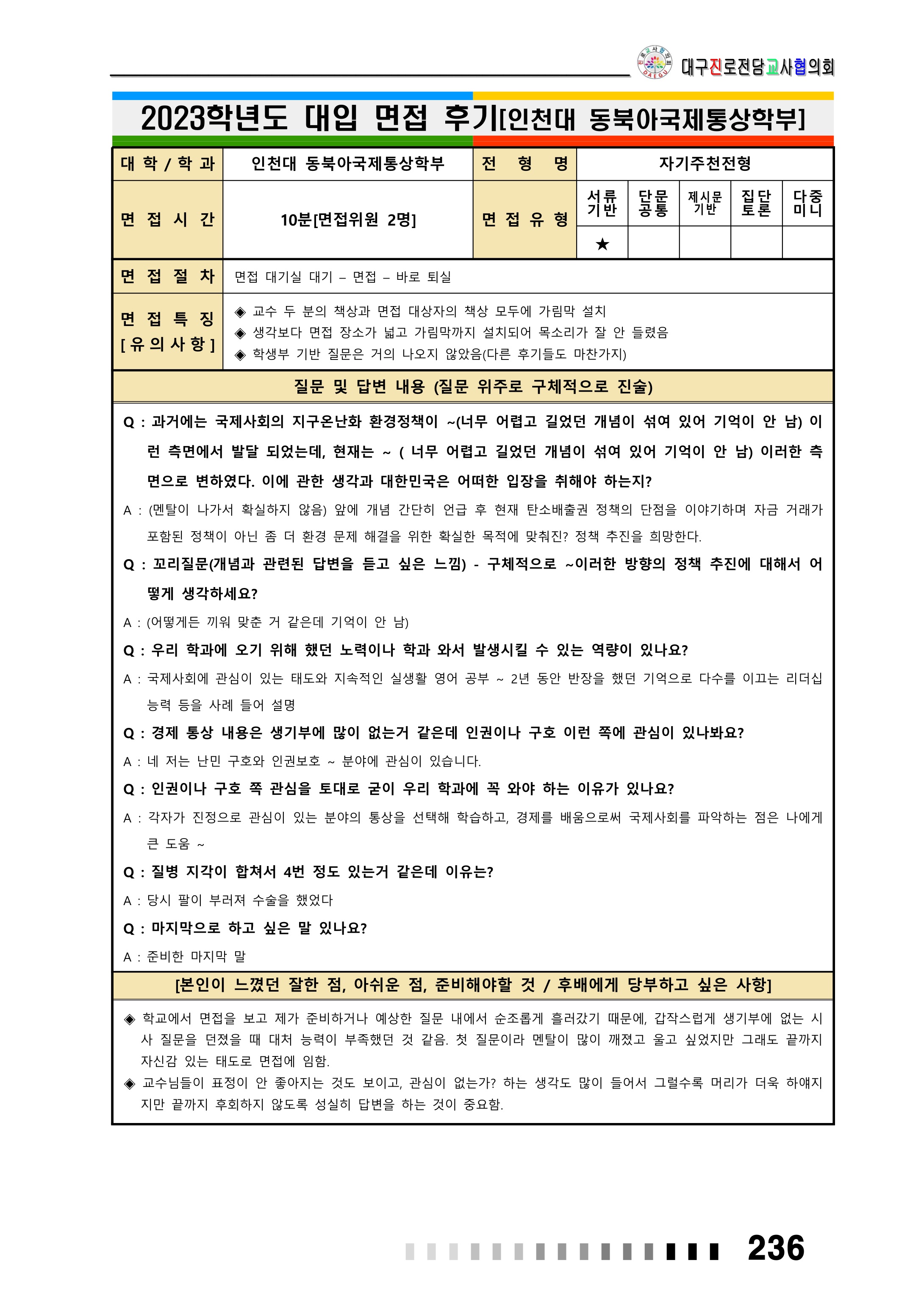 2023학년도 인천대학교 면접 후기2 - 도시건축학부 2023학년도 인천대학교 면접 후기3 - 동북아국제통상학부