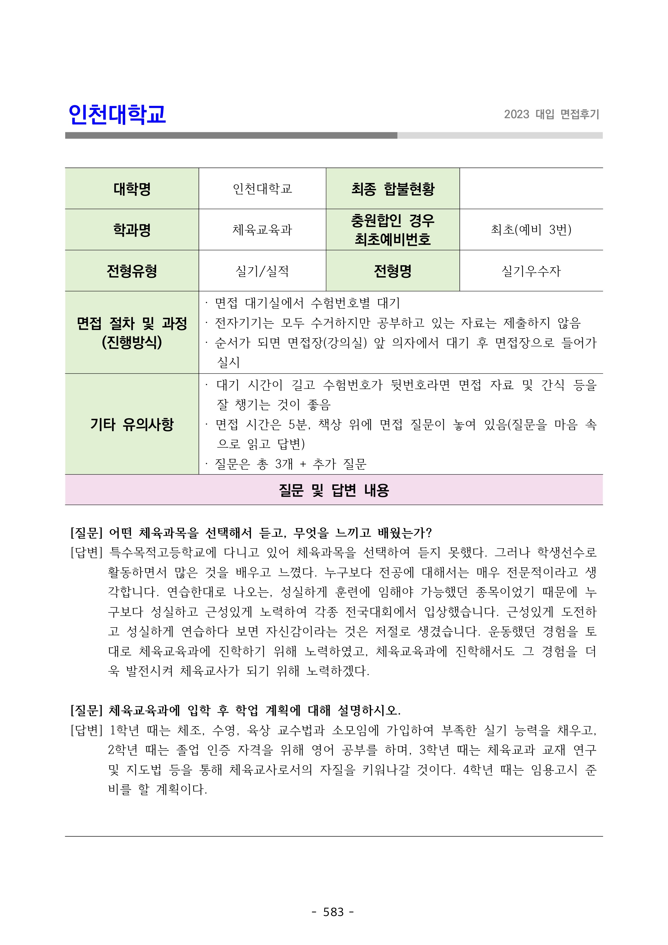 2023학년도 인천대학교 면접 후기7 - 체육교육과