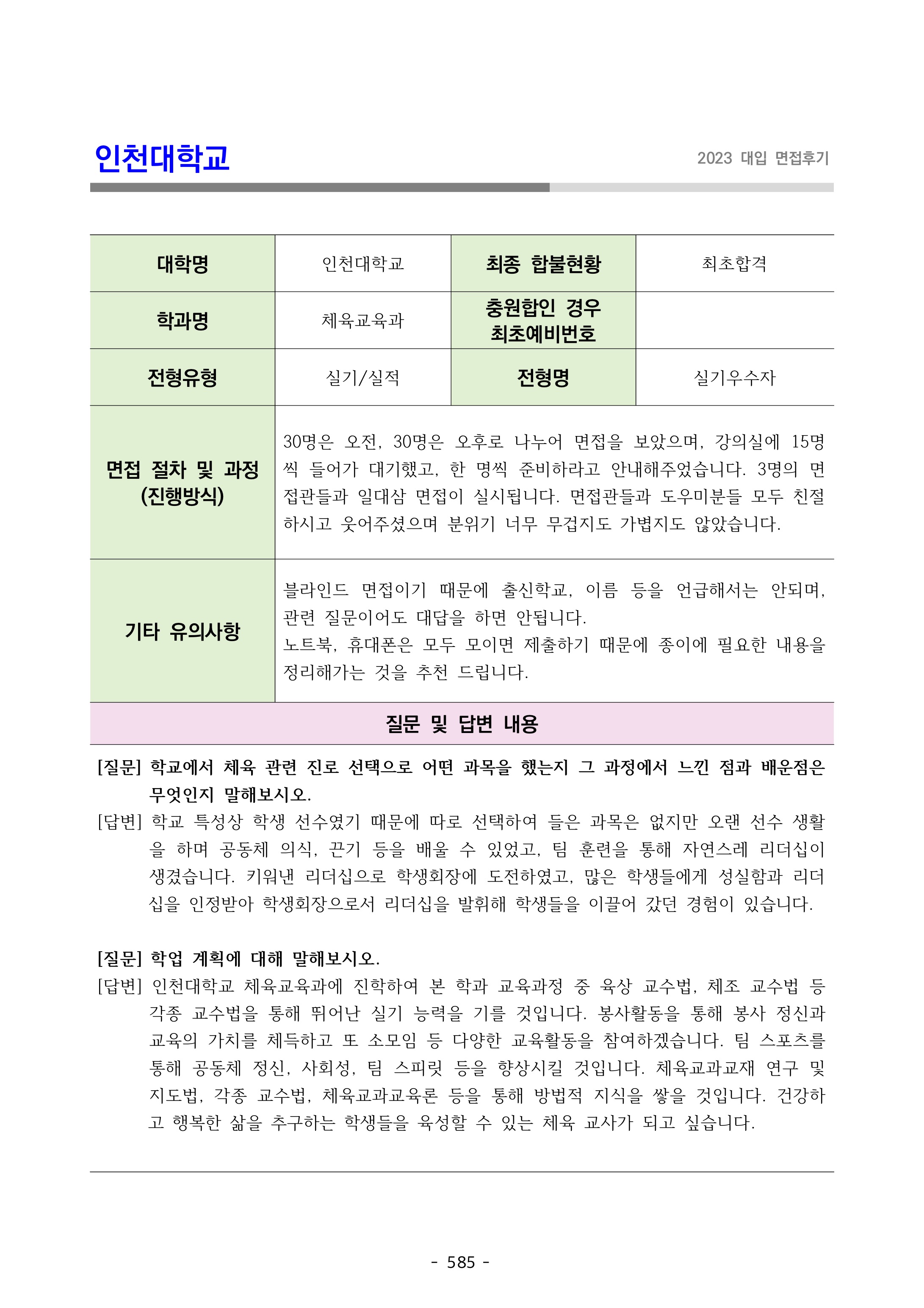 2023학년도 인천대학교 면접 후기8 - 체육교육과