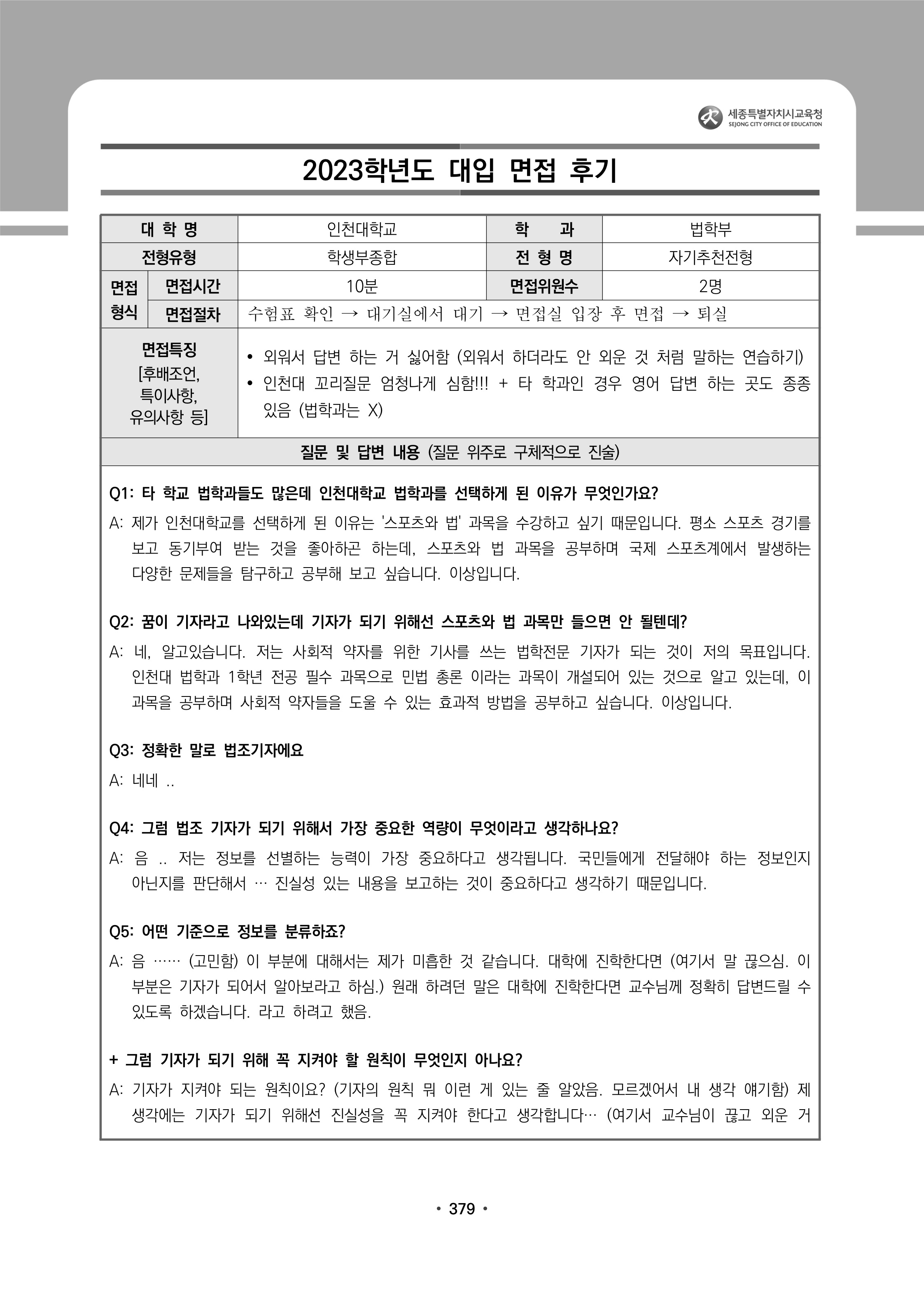 2023학년도 인천대학교 면접 후기4 - 법학부