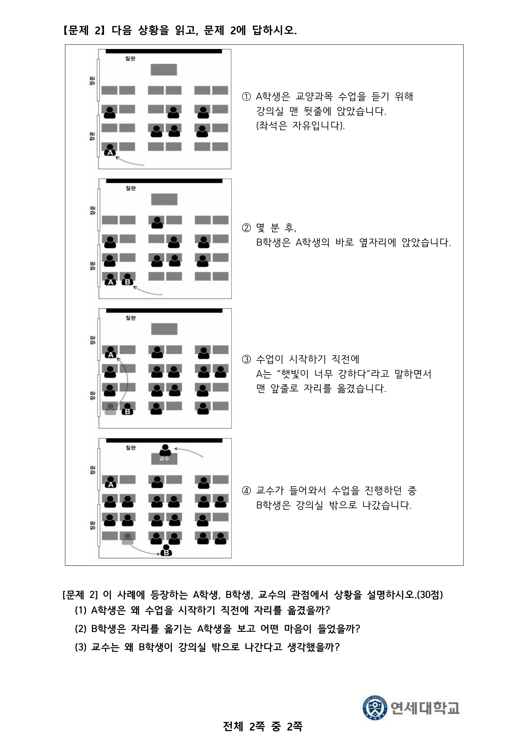 2023학년도 연세대학교 정시모집 의예과 면접구술시험 문제 Part 2 2023학년도 연세대학교 대학별 고사 기출문제