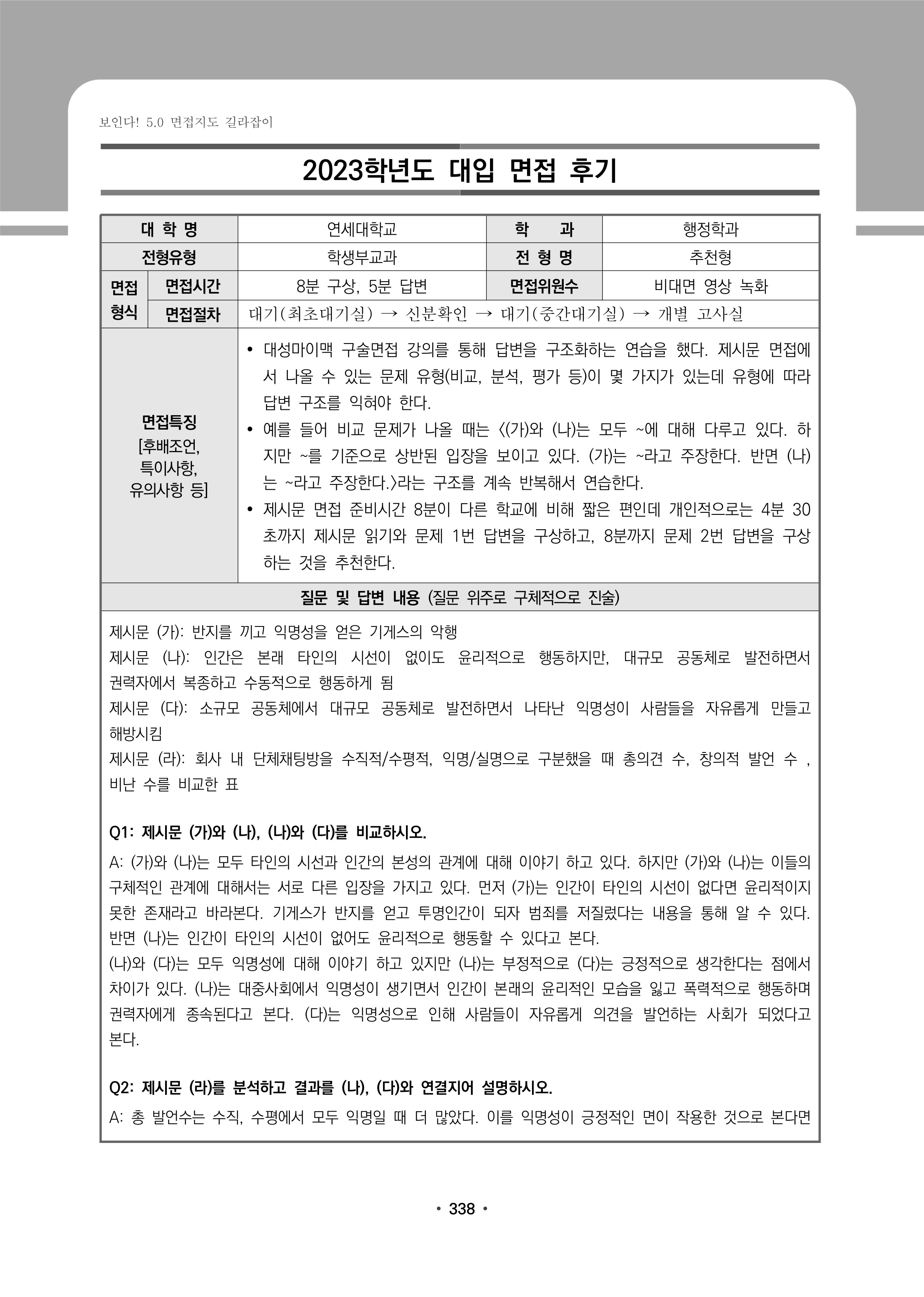 2023학년도 연세대학교 면접 후기18 - 행정학과